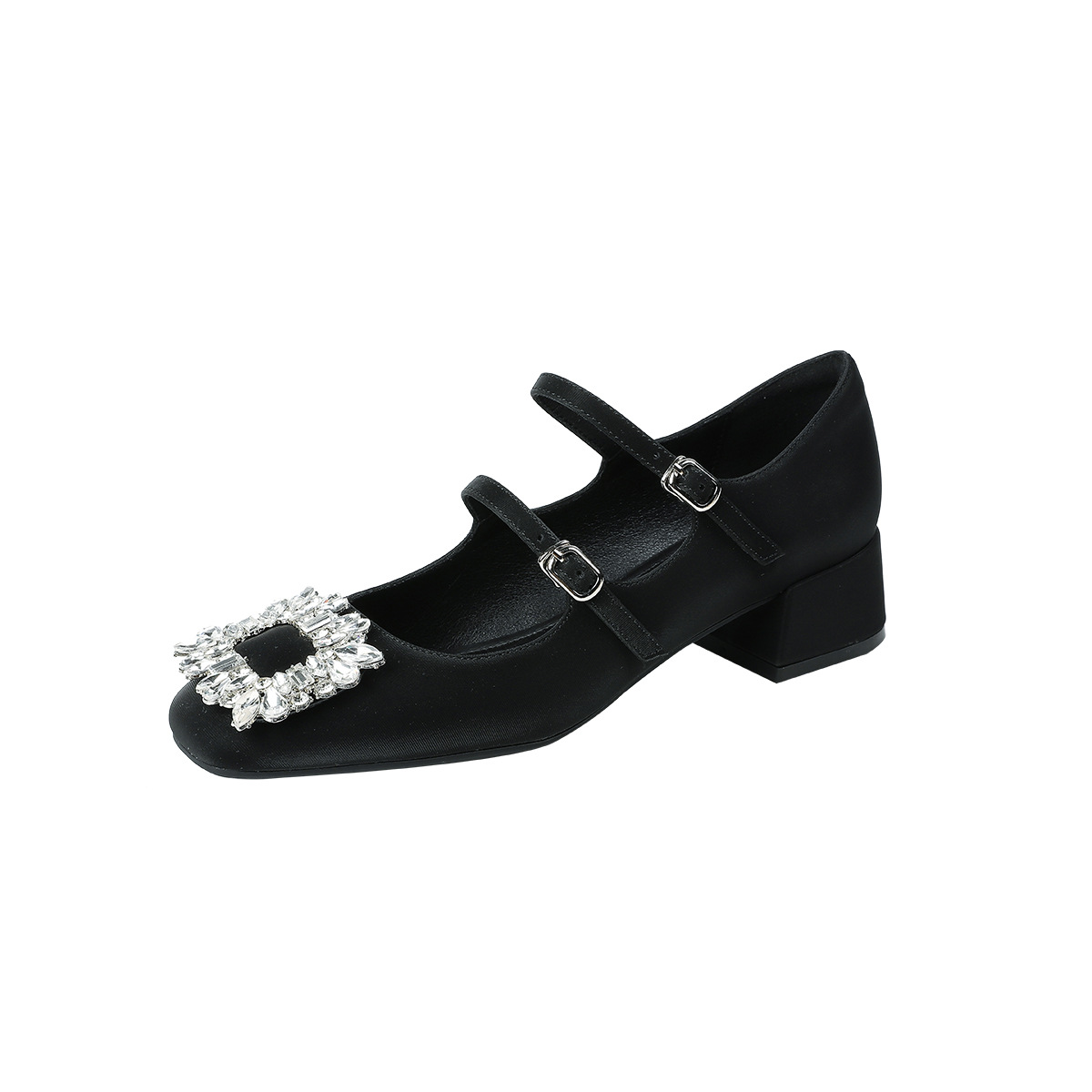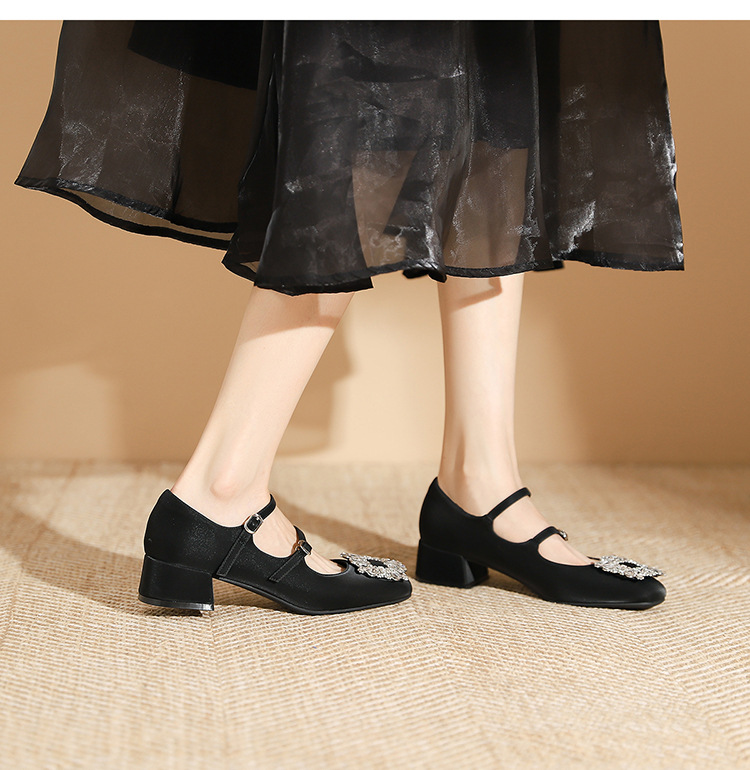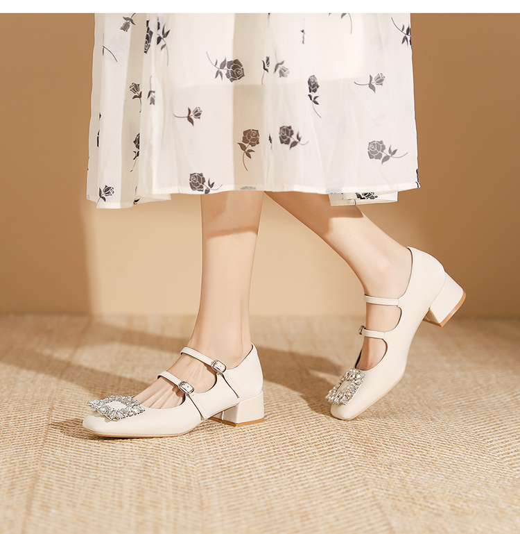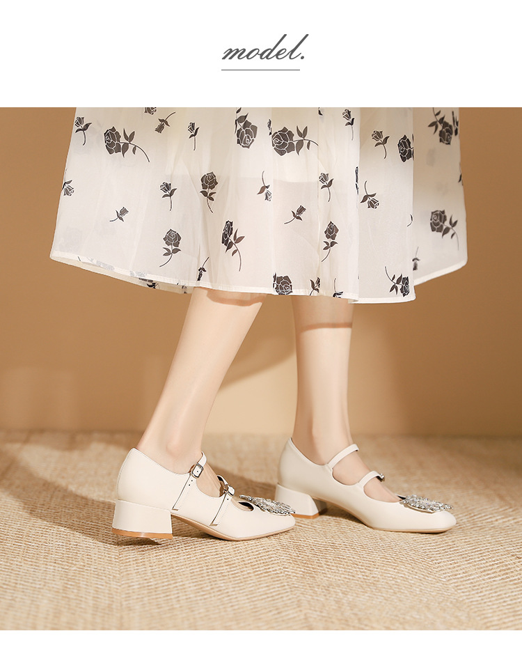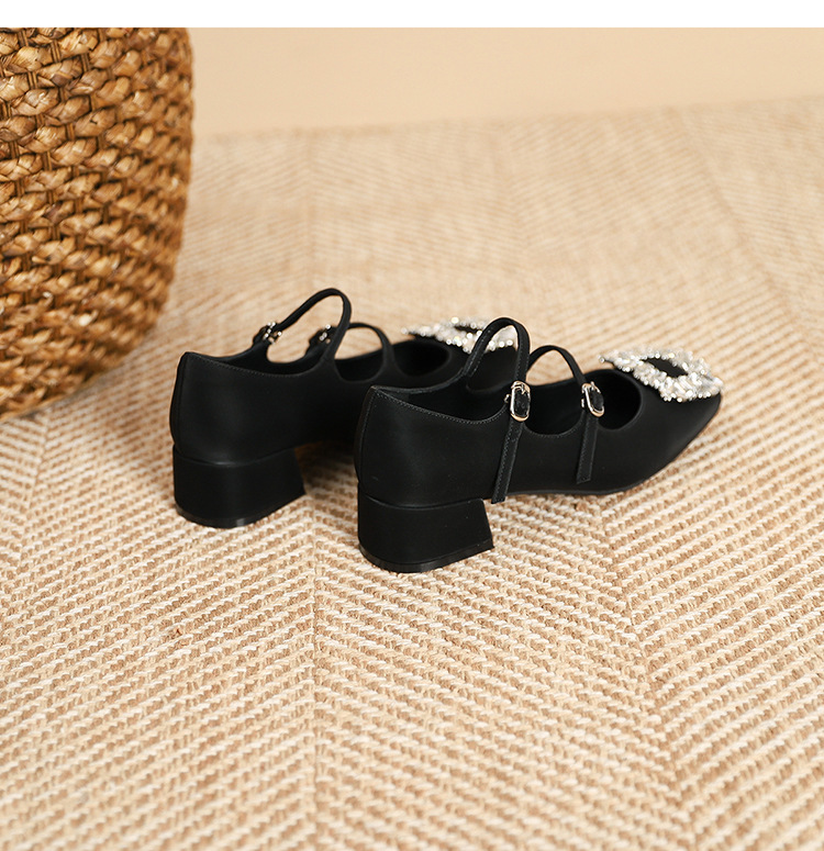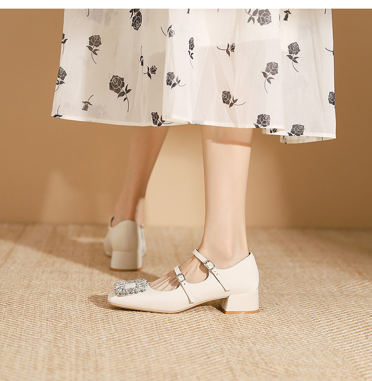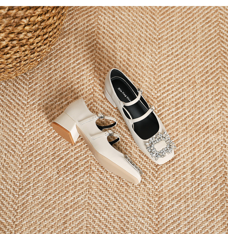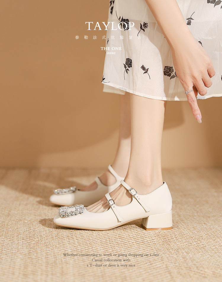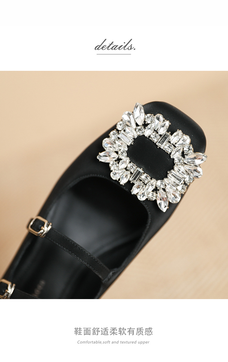 Đôi giày này có phần mũi vuông thanh lịch, được điểm xuyến những viên đá lấp lánh tạo nên nét thu hút riêng. Kiểu dáng giày Mary Jane cổ điển với quai ngang mảnh m và có khóa cài tiện lợi. Phần gót chân vừa phải giúp nâng đỡ bàn chân một cách thoải mái trong nhiều giờ liền. Cổ giàu ôm vừa vặn, tôn lên vẻ dịu dàng. Bạn có thể dễ dàng phối cùng váy hoặc quần để tạo nên những phong cách khác nhau. | Tên sản phẩm: Giày Cao Gót Nữ Gắn Đá Gót Vuông Quai Hậu - Giày Dép Nữ | Mã sản phẩm: L0333 - Giá: 870.000đ | Mã nhà sản xuất: HUDSH-G03Hình ảnh sản phẩm