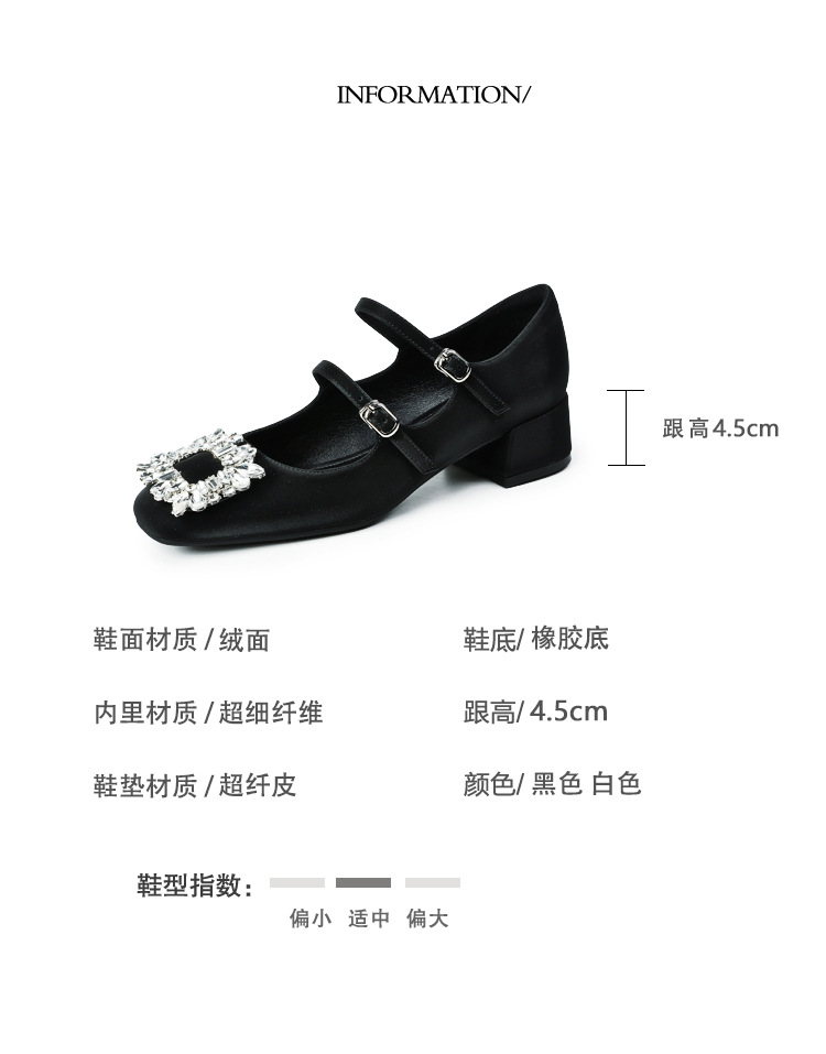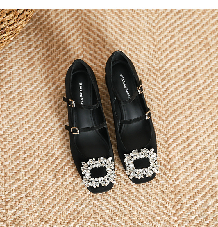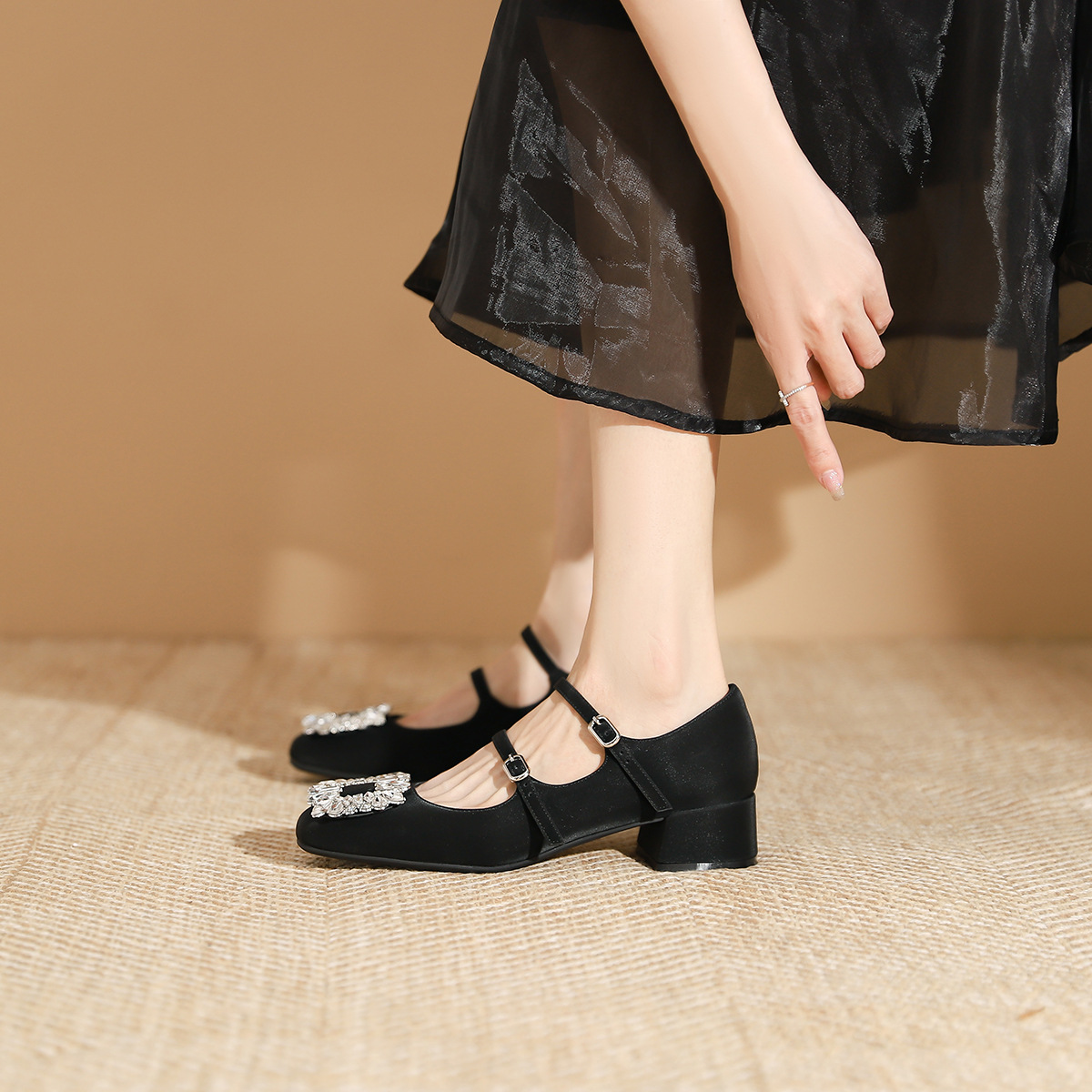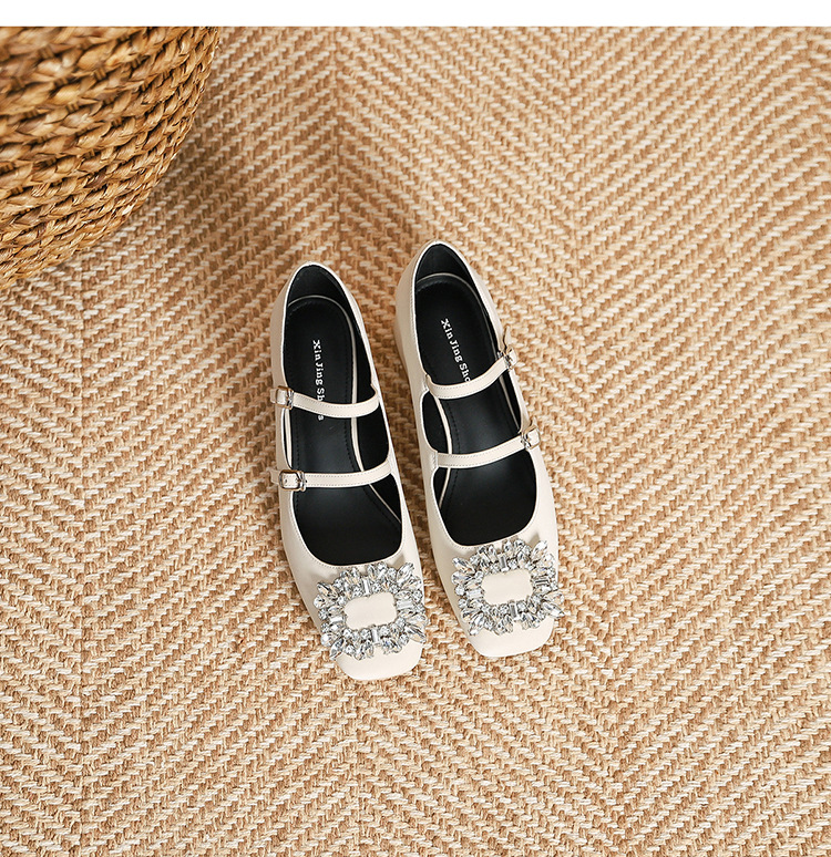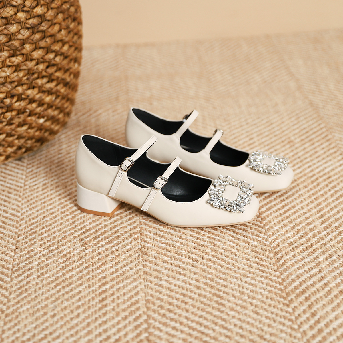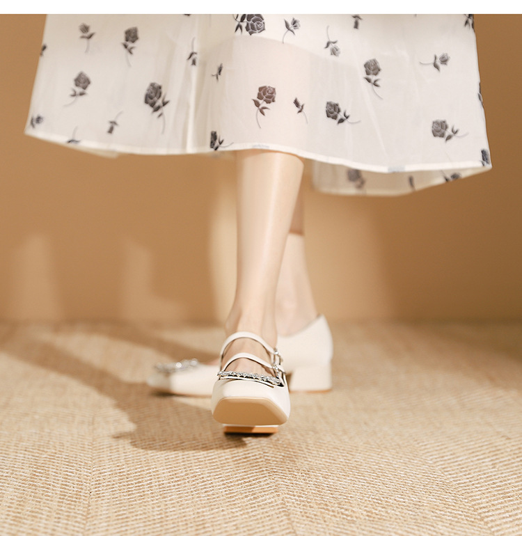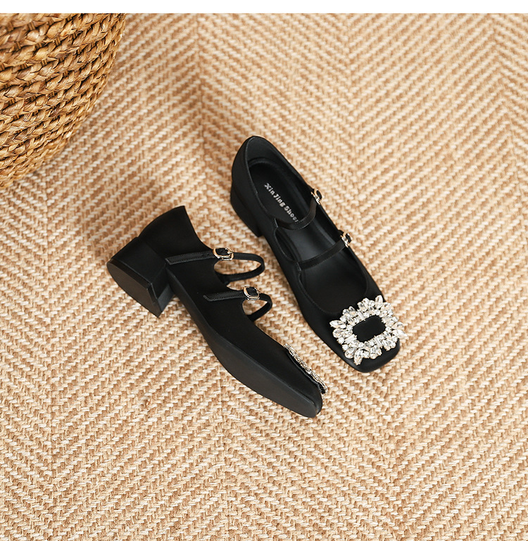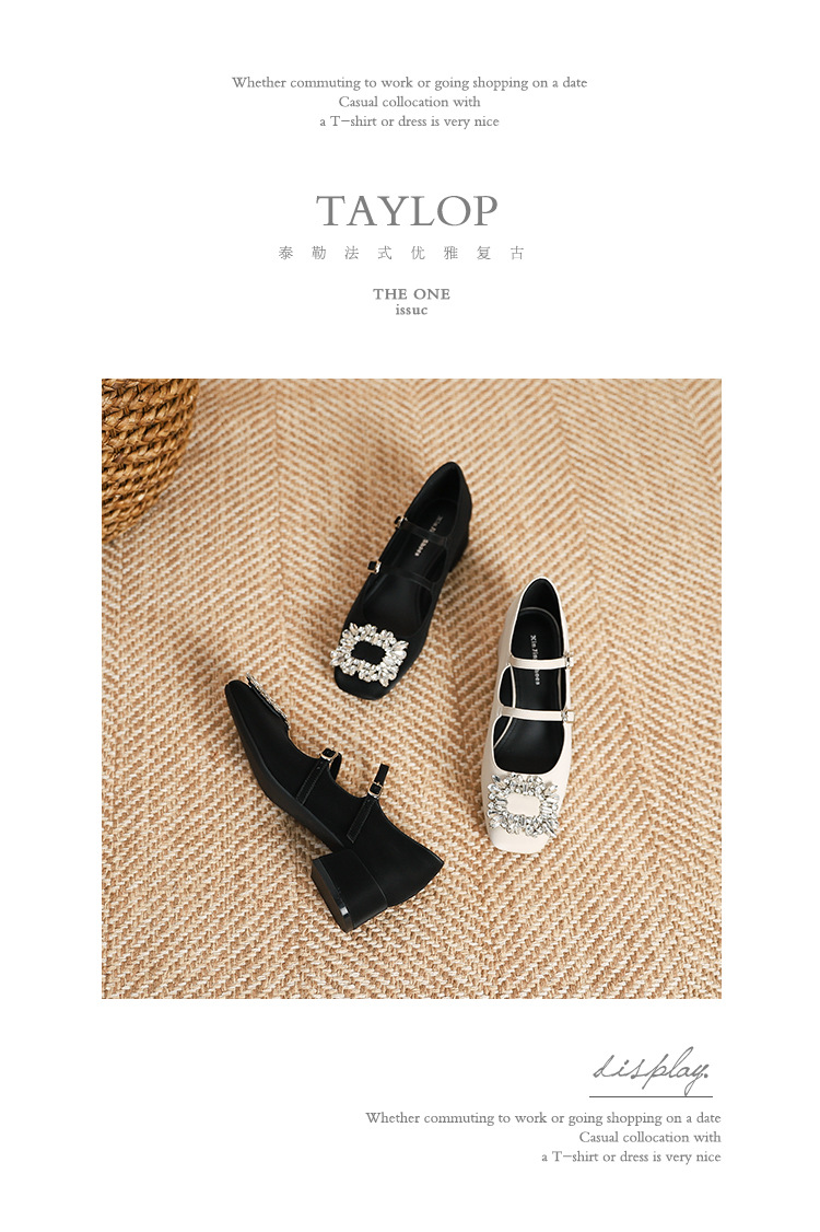Đôi giày này có phần mũi vuông thanh lịch, được điểm xuyến những viên đá lấp lánh tạo nên nét thu hút riêng. Kiểu dáng giày Mary Jane cổ điển với quai ngang mảnh m và có khóa cài tiện lợi. Phần gót chân vừa phải giúp nâng đỡ bàn chân một cách thoải mái trong nhiều giờ liền. Cổ giàu ôm vừa vặn, tôn lên vẻ dịu dàng. Bạn có thể dễ dàng phối cùng váy hoặc quần để tạo nên những phong cách khác nhau. | Tên sản phẩm: Giày Cao Gót Nữ Gắn Đá Gót Vuông Quai Hậu - Giày Dép Nữ | Mã sản phẩm: L0333 - Giá: 870.000đ | Mã nhà sản xuất: HUDSH-G03Hình ảnh sản phẩm