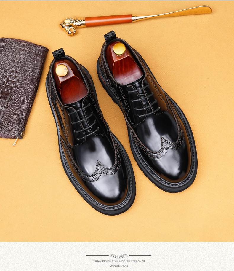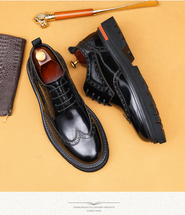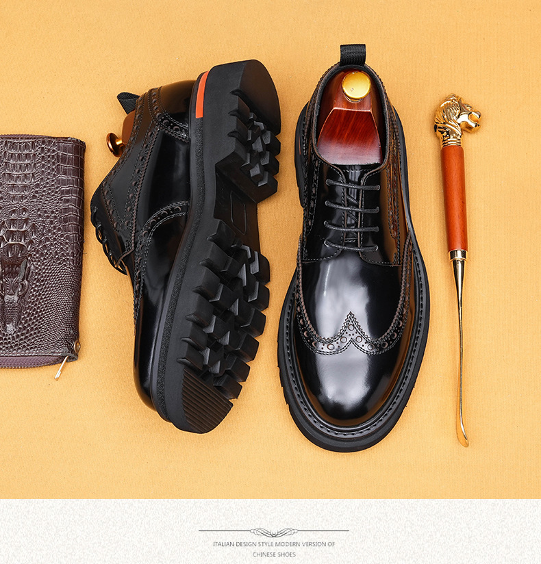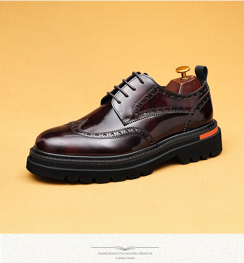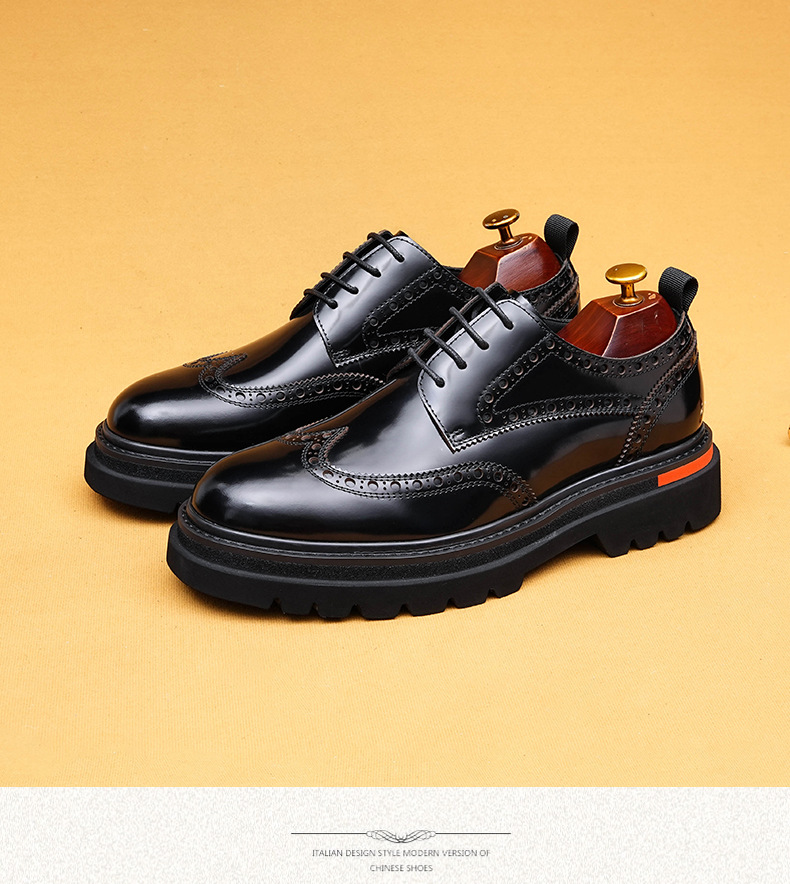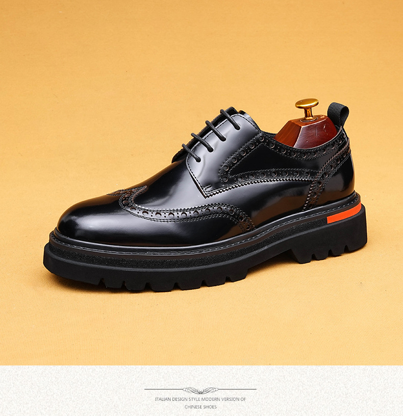 Giày da bóng kiểu dáng nam phù hợp cho công sở và dạo phố. Sản phẩm có phần đế dày, tạo dáng đứng và thoải mái. Mặt giày được điểm xuyến những họa tiết khắc chìm tinh xảo, mang phong cách cổ điển. Bạn có thể dùng khăn mềm lau sạch bụi và giữ giày luôn sáng bóng. Đôi giày kết hợp hài hòa giữa vẻ lịch sự nhẹ nhàng và nét phóng khoáng trẻ trung. | Tên sản phẩm: Giày Da Nam Họa Tiết Hoa Đế Cao - Giày Dép Nam | Mã sản phẩm: L0334 - Giá: 2.650.000đ | Mã nhà sản xuất: SHERAW-G06Hình ảnh sản phẩm