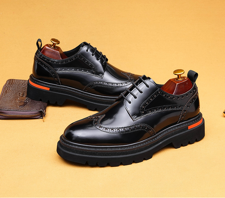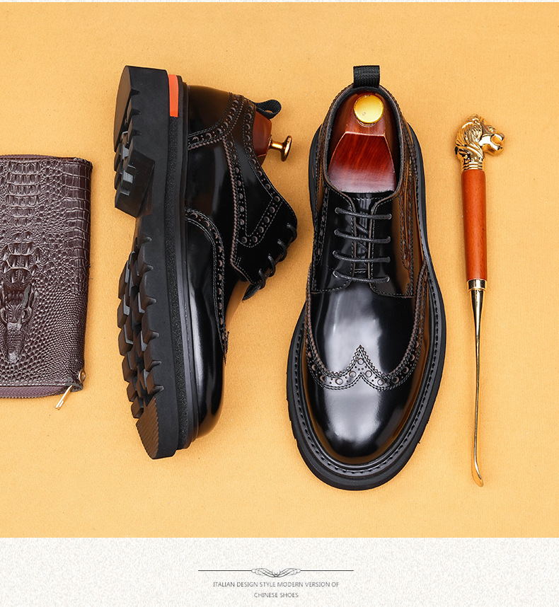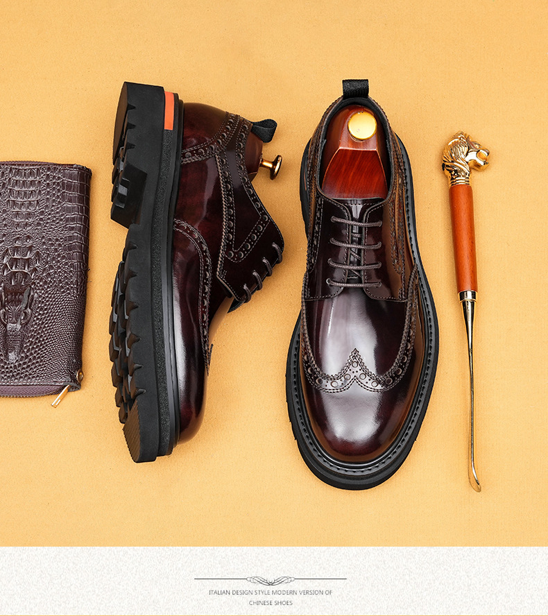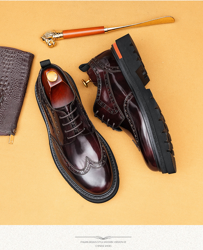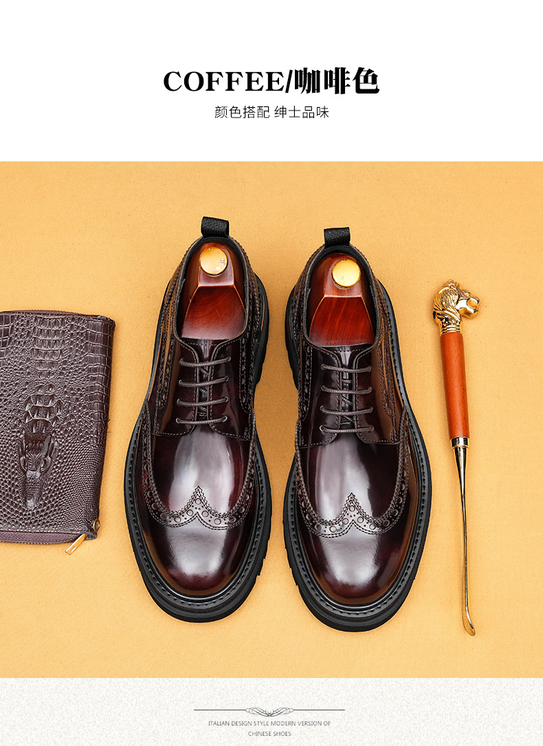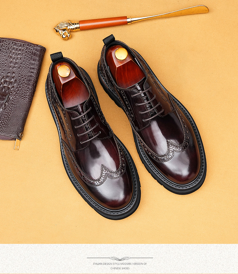 Giày da bóng kiểu dáng nam phù hợp cho công sở và dạo phố. Sản phẩm có phần đế dày, tạo dáng đứng và thoải mái. Mặt giày được điểm xuyến những họa tiết khắc chìm tinh xảo, mang phong cách cổ điển. Bạn có thể dùng khăn mềm lau sạch bụi và giữ giày luôn sáng bóng. Đôi giày kết hợp hài hòa giữa vẻ lịch sự nhẹ nhàng và nét phóng khoáng trẻ trung. | Tên sản phẩm: Giày Da Nam Họa Tiết Hoa Đế Cao - Giày Dép Nam | Mã sản phẩm: L0334 - Giá: 2.650.000đ | Mã nhà sản xuất: SHERAW-G06Hình ảnh sản phẩm