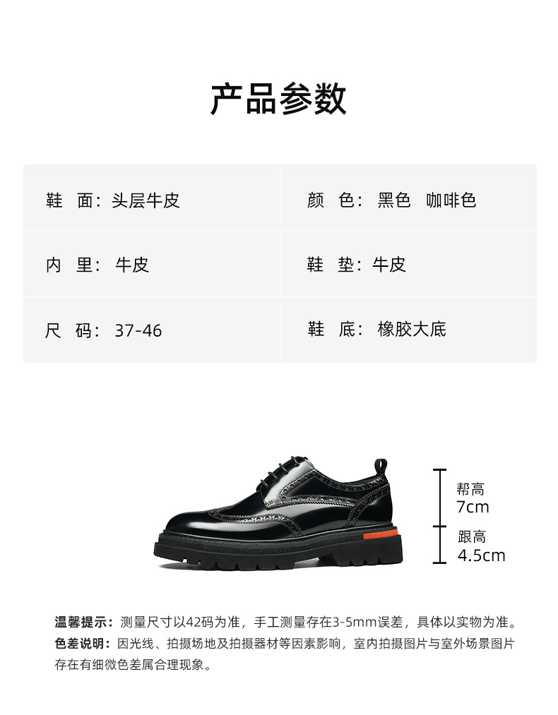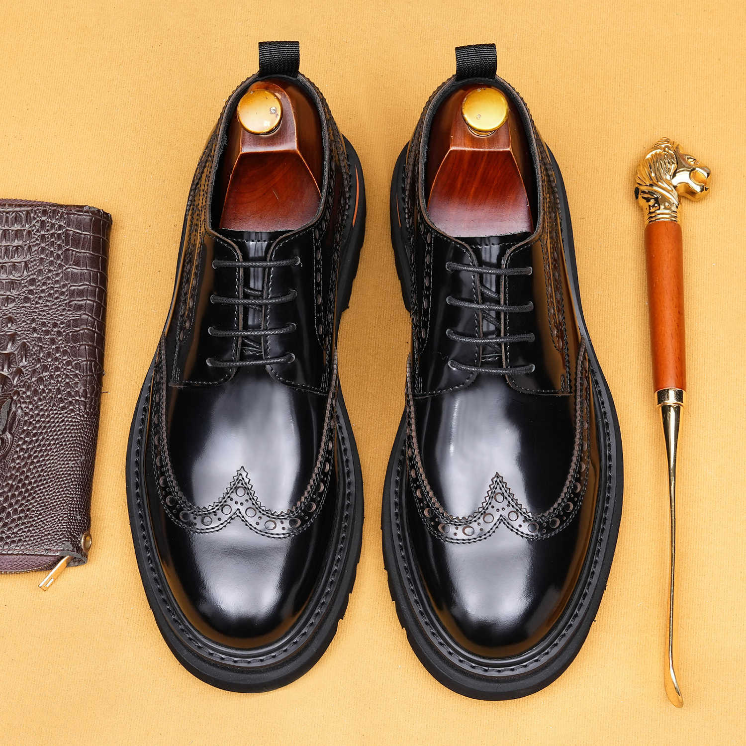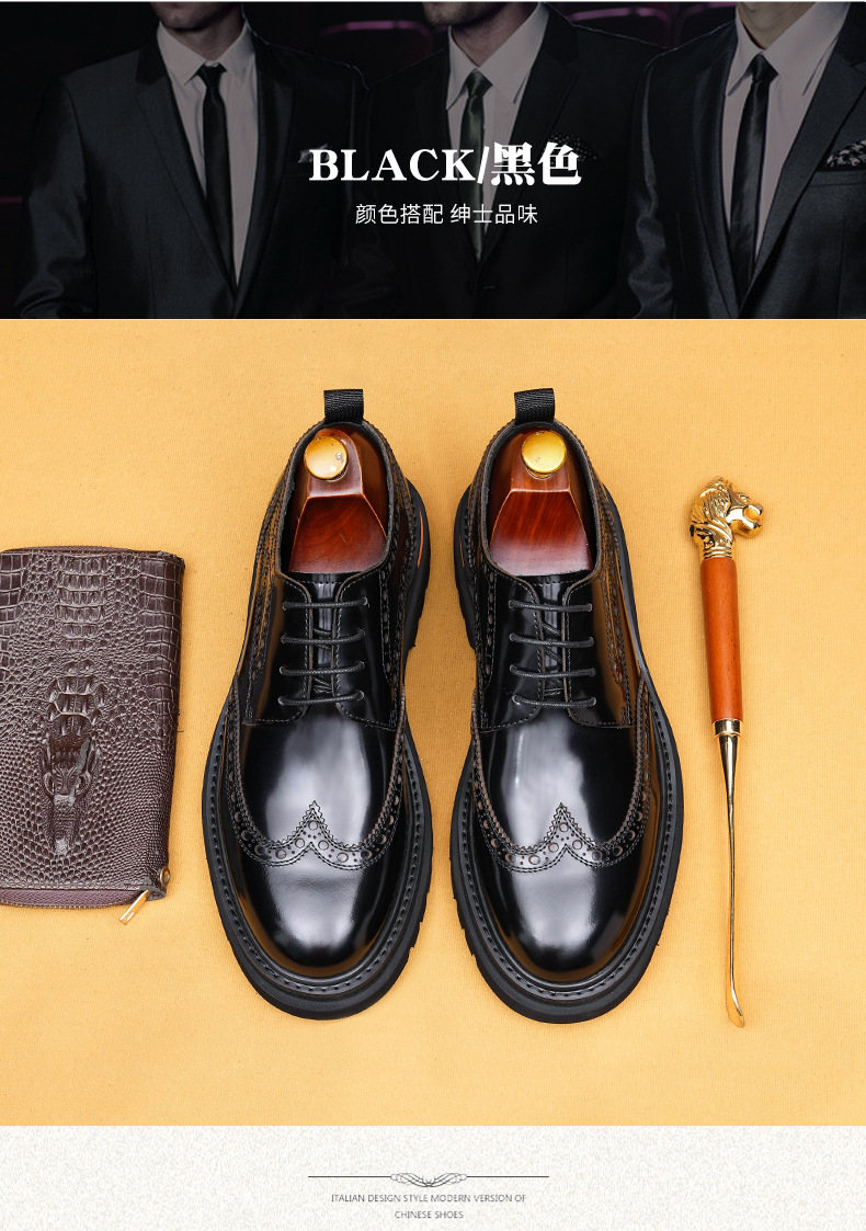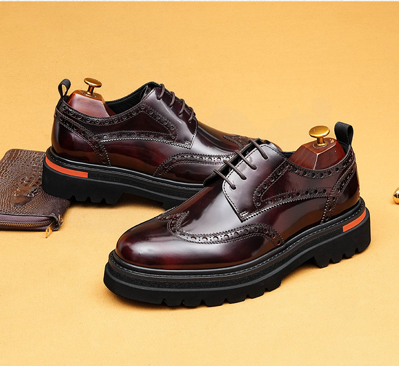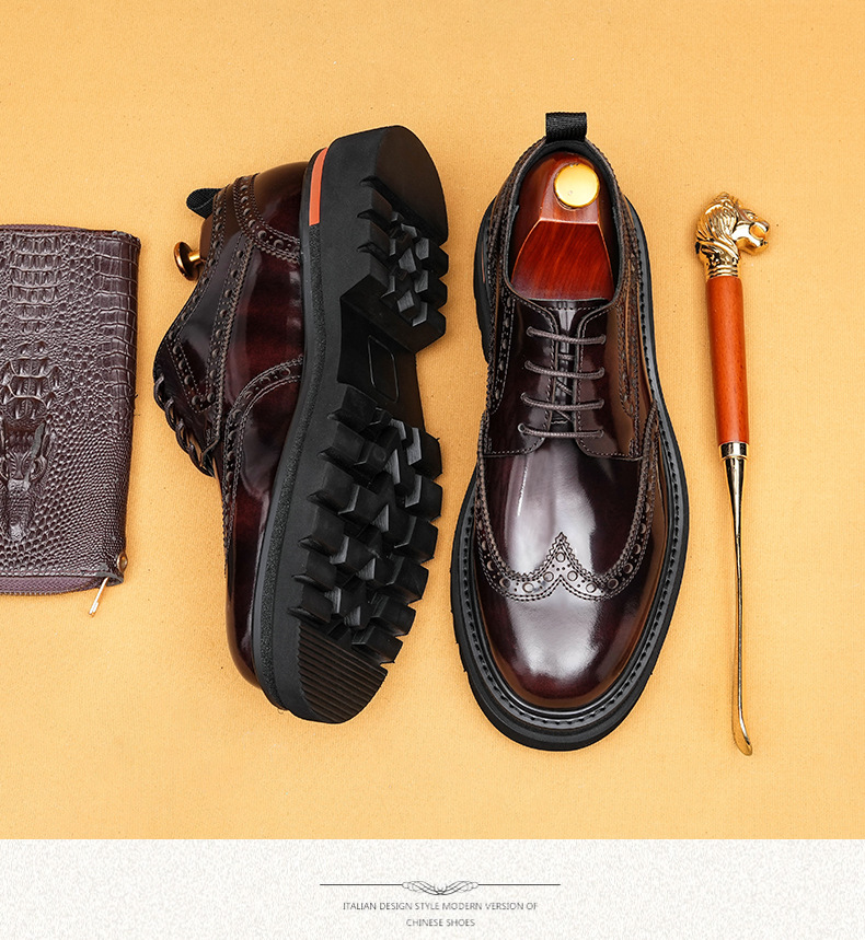Giày da bóng kiểu dáng nam phù hợp cho công sở và dạo phố. Sản phẩm có phần đế dày, tạo dáng đứng và thoải mái. Mặt giày được điểm xuyến những họa tiết khắc chìm tinh xảo, mang phong cách cổ điển. Bạn có thể dùng khăn mềm lau sạch bụi và giữ giày luôn sáng bóng. Đôi giày kết hợp hài hòa giữa vẻ lịch sự nhẹ nhàng và nét phóng khoáng trẻ trung. | Tên sản phẩm: Giày Da Nam Họa Tiết Hoa Đế Cao - Giày Dép Nam | Mã sản phẩm: L0334 - Giá: 2.650.000đ | Mã nhà sản xuất: SHERAW-G06Hình ảnh sản phẩm
