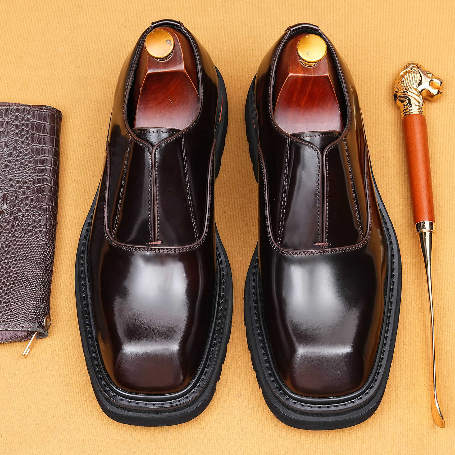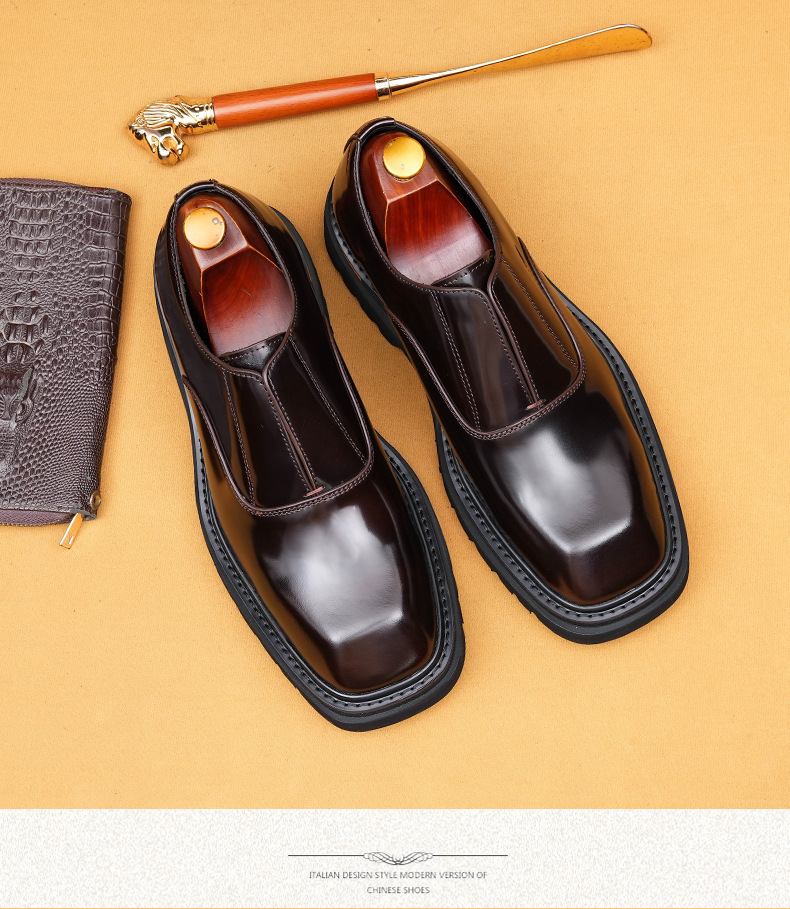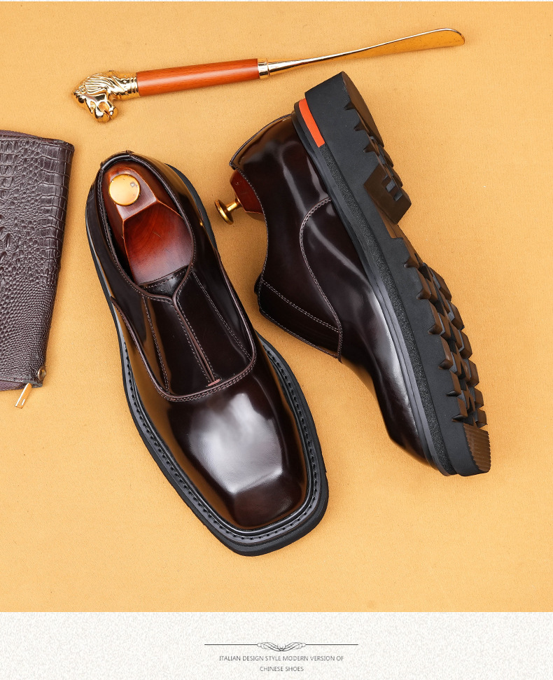 Giày da nam kiểu dáng mới, mặt trên bóng đẹp, phù hợp cho công sở và dùng hằng ngày. Sản phẩm làm từ chất liệu da thật, mũi giày vuông vức, đế dày vừa phải mang lại cảm giác thoải mái. Kiểu giày lười thiết kế tiện lợi, giúp người mang dễ dàng xỏ chân vào và tháo ra. Có thể phối hợp cùng nhiều loại trang phục khác nhau để tạo vẻ lịch sự hoặc phong cách cá nhân. | Tên sản phẩm: Giày Da Nam Chất Liệu Da Bò Đế Cao - Giày Dép Nam | Mã sản phẩm: L0335 - Giá: 2.650.000đ | Mã nhà sản xuất: SHERAW-G06Hình ảnh sản phẩm