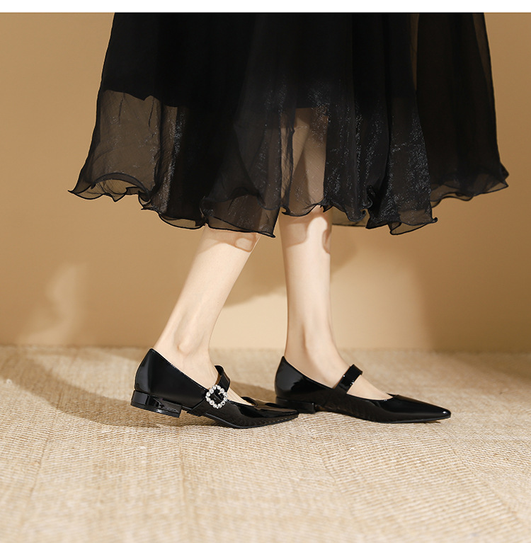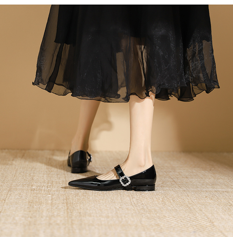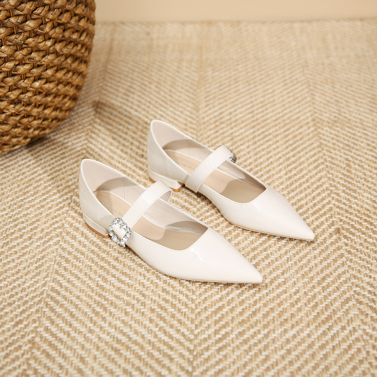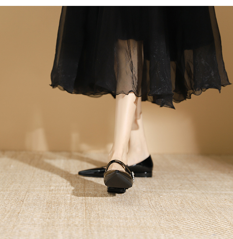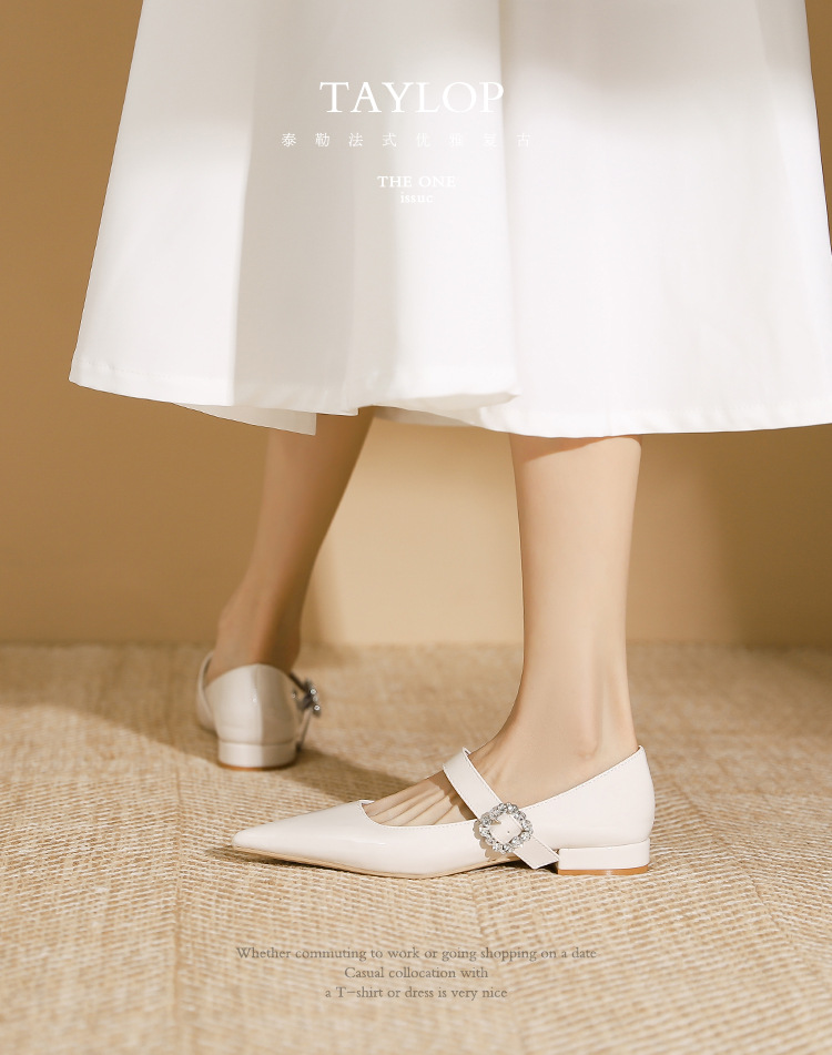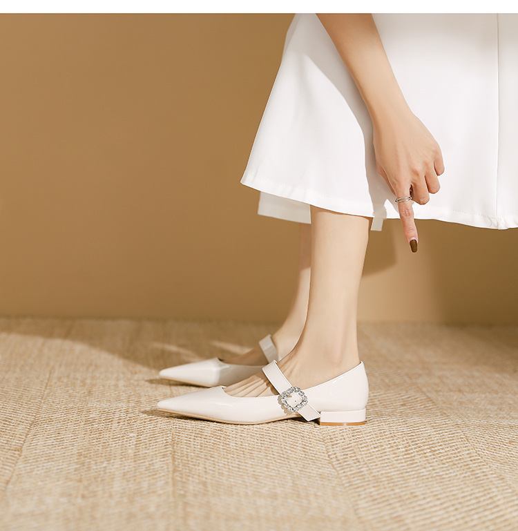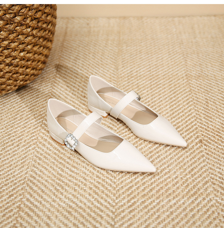 Đôi giày nữ này có mũi nhọn thanh lịch, điểm nhấn là chiếc nơ đá sáng lấp lánh tạo nên vẻ đẹp nữ tính. Kiểu dáng cổ thấp, phần gót thấp vừa phải giúp nâng đỡ bàn chân một cách thoải mái cho cả ngày dài. Chất liệu nhẹ nhàng, mềm mại ôm chân nhưng vẫn tạo cảm giác thông thoáng. Bạn có thể dễ dàng phối cùng nhiều trang phục như quần âu, váy liền để đi làm, đi chơi hay dự tiệc. | Tên sản phẩm: Giày Bệt Nữ Gắn Đá Mũi Nhọn - Giày Dép Nữ | Mã sản phẩm: L0337 - Giá: 720.000đ | Mã nhà sản xuất: HUDSH-G02Hình ảnh sản phẩm