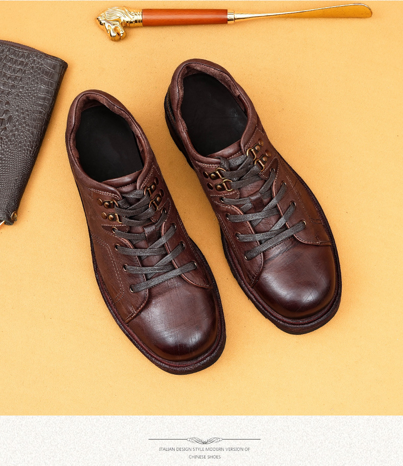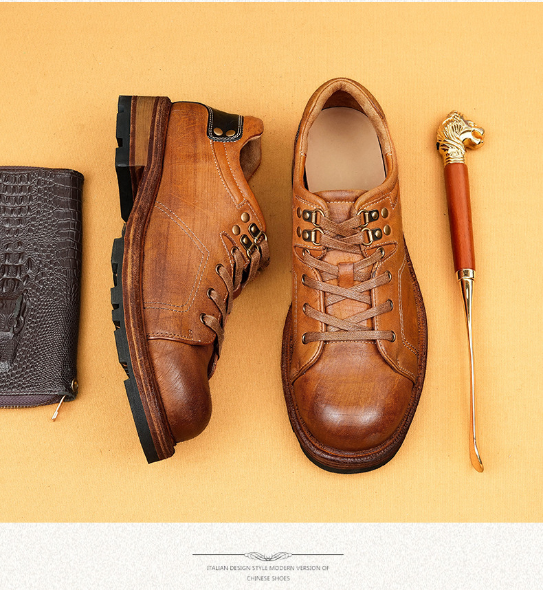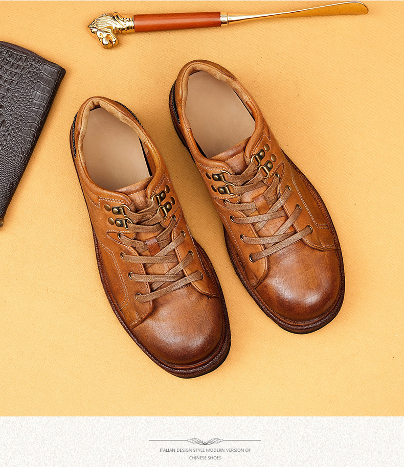 Giày nam kết hợp giữa dáng thể thao năng động và phong cách cổ điển. Sản phẩm được làm từ chất liệu da thật, bề mặt có đường vân mờ được mài thủ công tạo vẻ đẹp trầm ấm. Đế giày được ráp theo phương pháp truyền thống, đảm bảo độ bền và êm ái khi di chuyển. Kiểu dáng phù hợp cho cả công sở và những dịp giao lưu thường ngày. Bạn có thể dùng để phối cùng quần âu hoặc quần jeans đều hợp thời trang. | Tên sản phẩm: Giày Da Nam Chất Liệu Da Bò Phục Cổ Cổ Điển - Giày Dép Nam | Mã sản phẩm: L0347 - Giá: 4.160.000đ | Mã nhà sản xuất: SHERAW-G06Hình ảnh sản phẩm