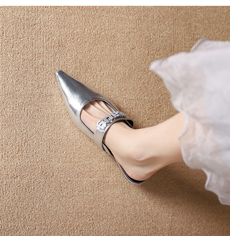 Đôi giày này có phần mũi nhọn thanh lịch, được điểm xuyết bằng các hạt đá lấp lánh và những ký tự thời trang tinh tế. Phong cách thiết kế Pháp hiện đại với dây đ ngang mảnh m ở mu bàn chân và phần gót sau được khoét nhẹ. Đế thấp vừa phải giúp nâng đỡ bàn chân một cách thoải mái trong nhiều giờ. Bạn có thể dễ dàng phối hợp với nhiều loại trang phục khác nhau để tạo nên những vẻ ngoài ưa nhìn cho các dịp gặp gỡ hằng ngày. | Tên sản phẩm: Giày Cao Gót Nữ Gắn Đá Mũi Nhọn - Giày Dép Nữ | Mã sản phẩm: L0389 - Giá: 810.000đ | Mã nhà sản xuất: HUDSH-G03Hình ảnh sản phẩm