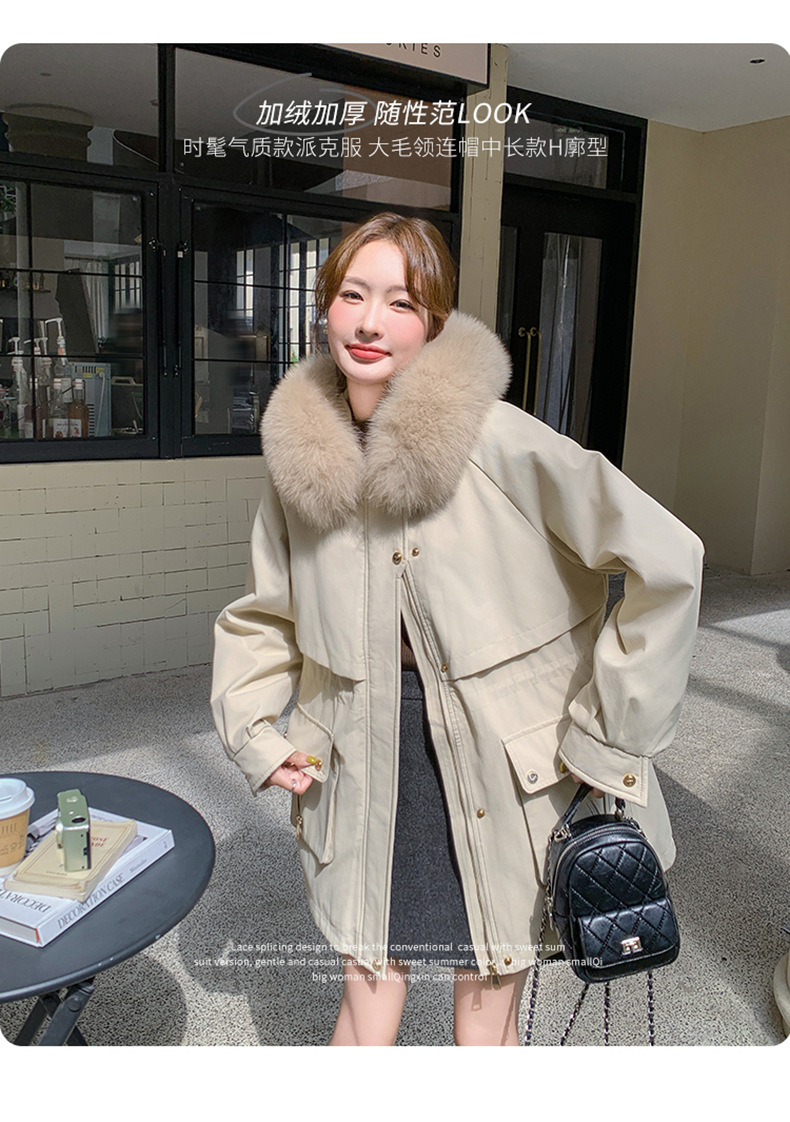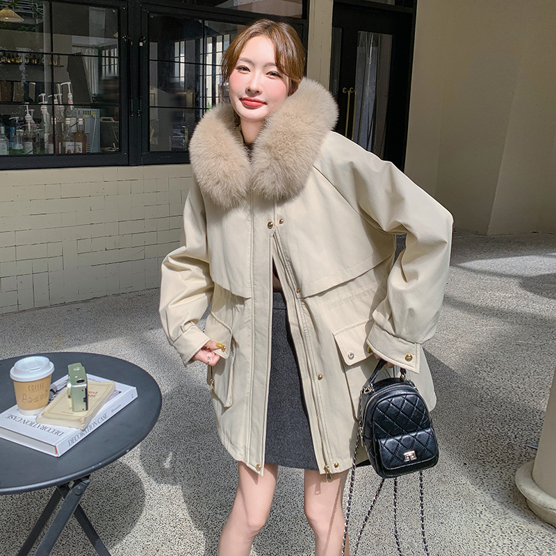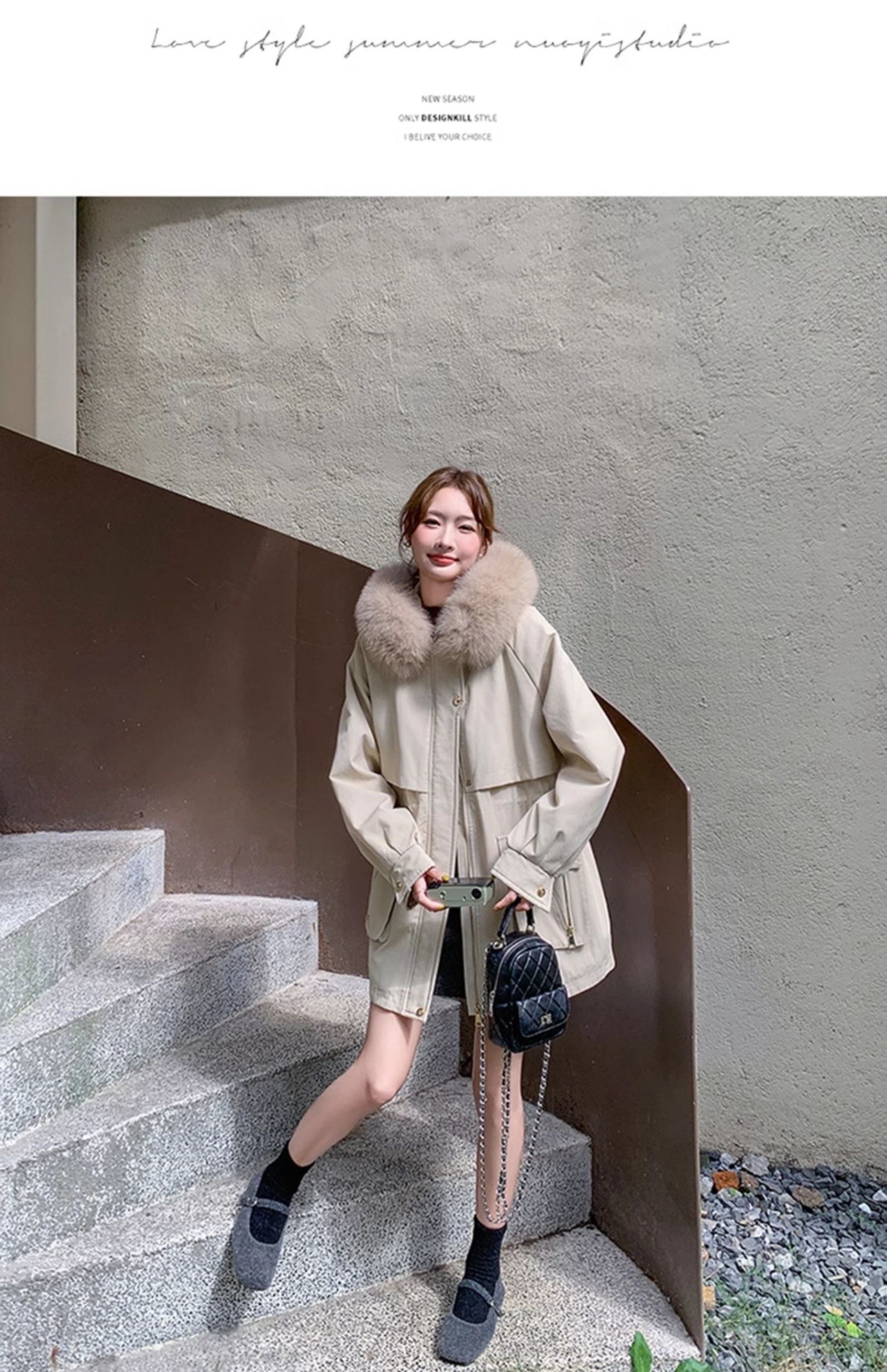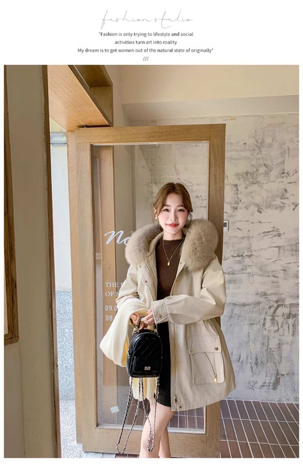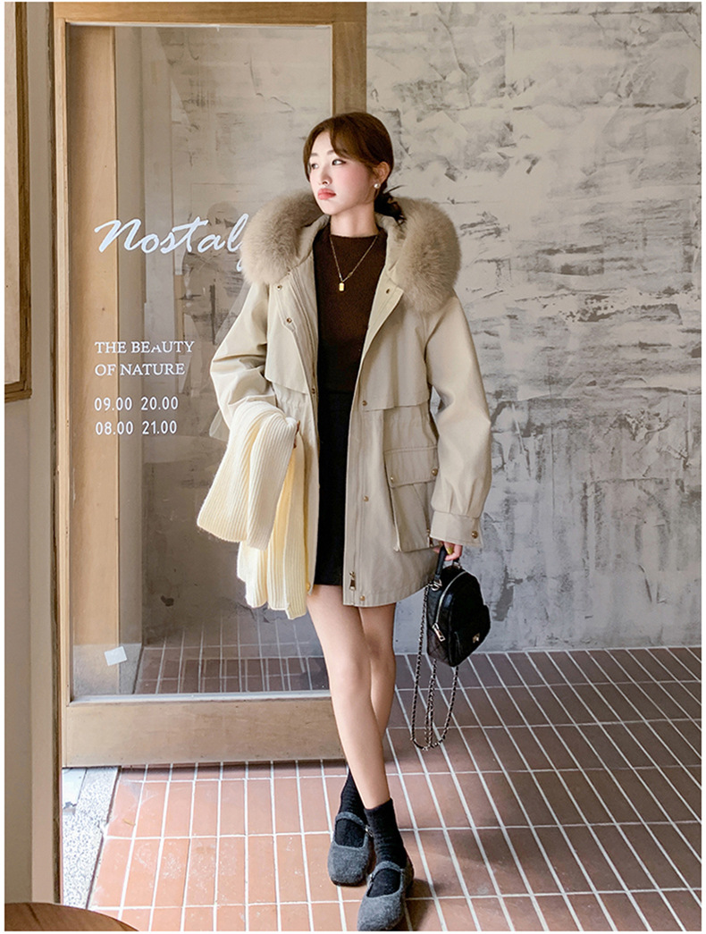 Áo khoác nữ dáng dài phong cách Hàn, điểm nhấn là cổ áo được làm từ lớp lông mềm mại và dày dặn. Bên trong áo có lớp lót bằng vải bông ấm áp, giúp giữ nhiệt tốt trong những ngày gió lạnh. Kiểu dáng phối hợp giữa áo khoác và áo len tạo nên vẻ ngoài năng động, thoải mái. Mặc kèm với quần jeans và giày thể thao để tạo phong cách hằng ngày. | Tên sản phẩm: Áo Khoác Nữ Dày Ấm Hàng Mùa Xuân Thu Đông - Thời Trang Nữ | Mã sản phẩm: L0404 - Giá: 2.480.000đ | Mã nhà sản xuất: HADA-G05Hình ảnh sản phẩm