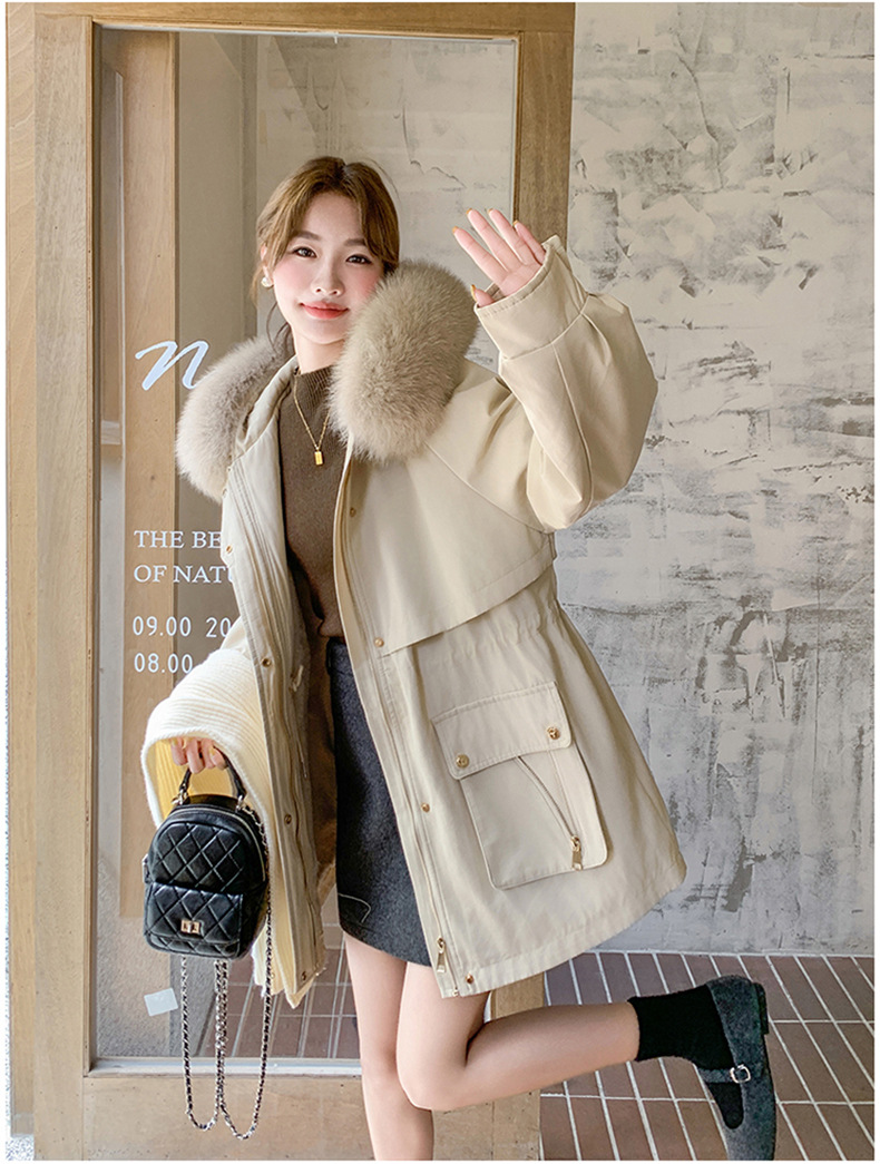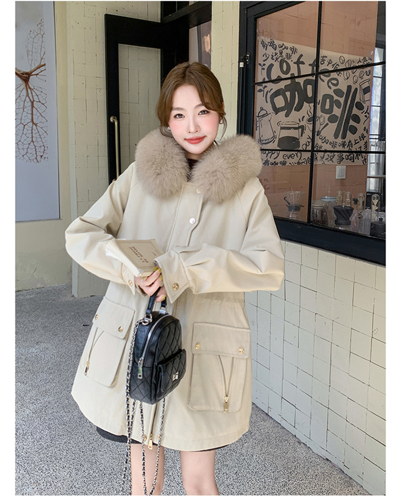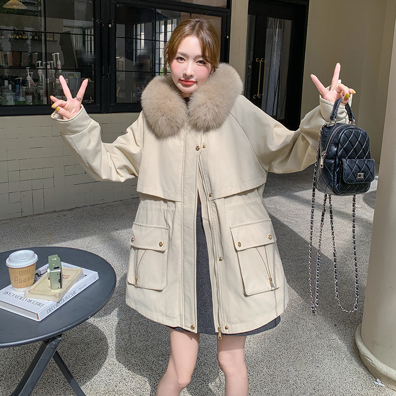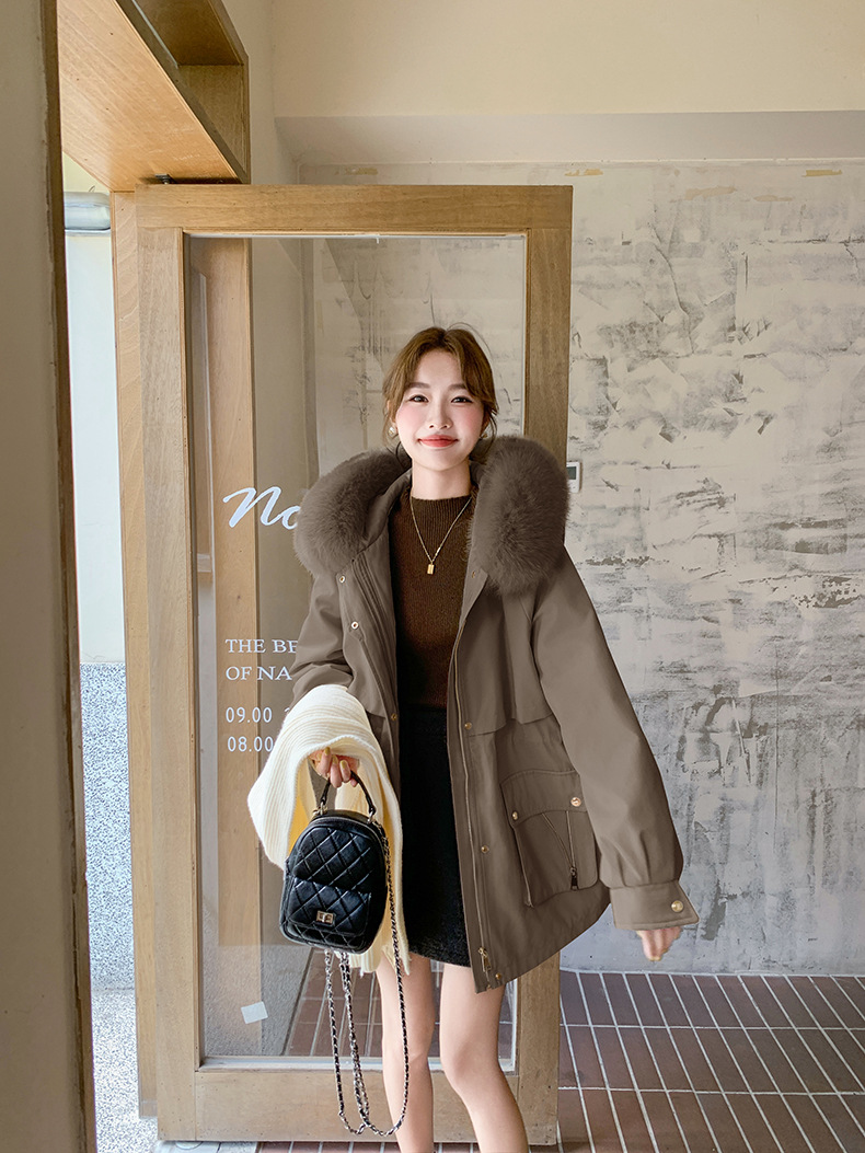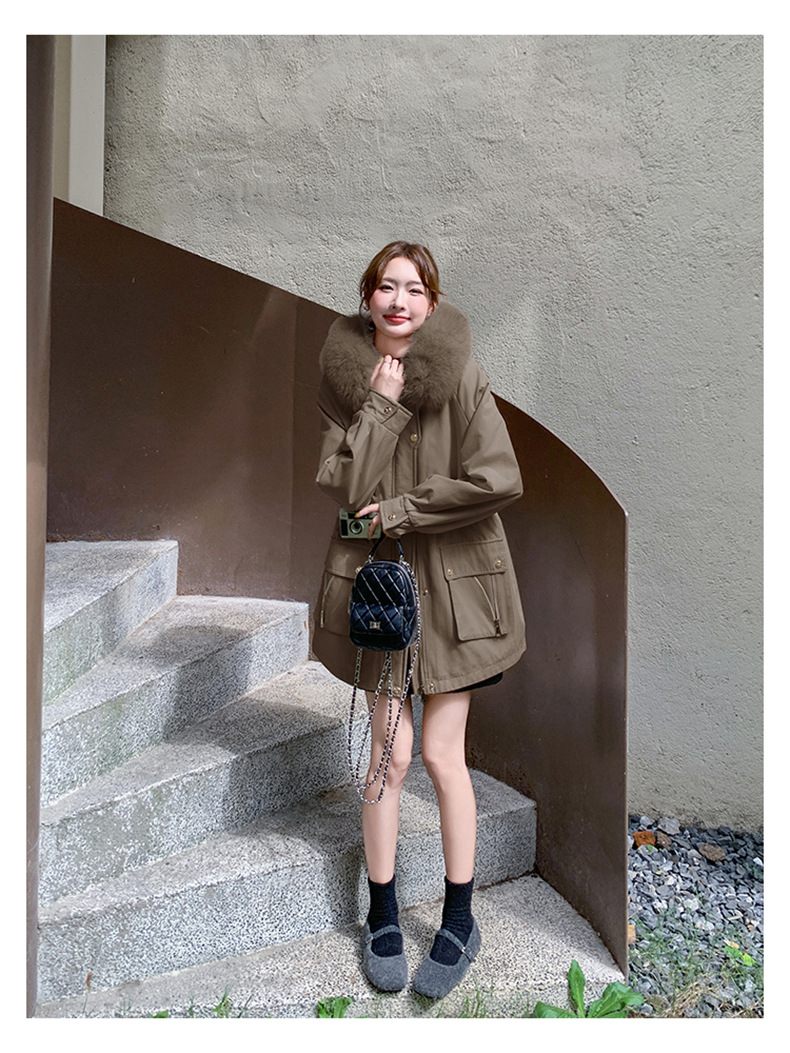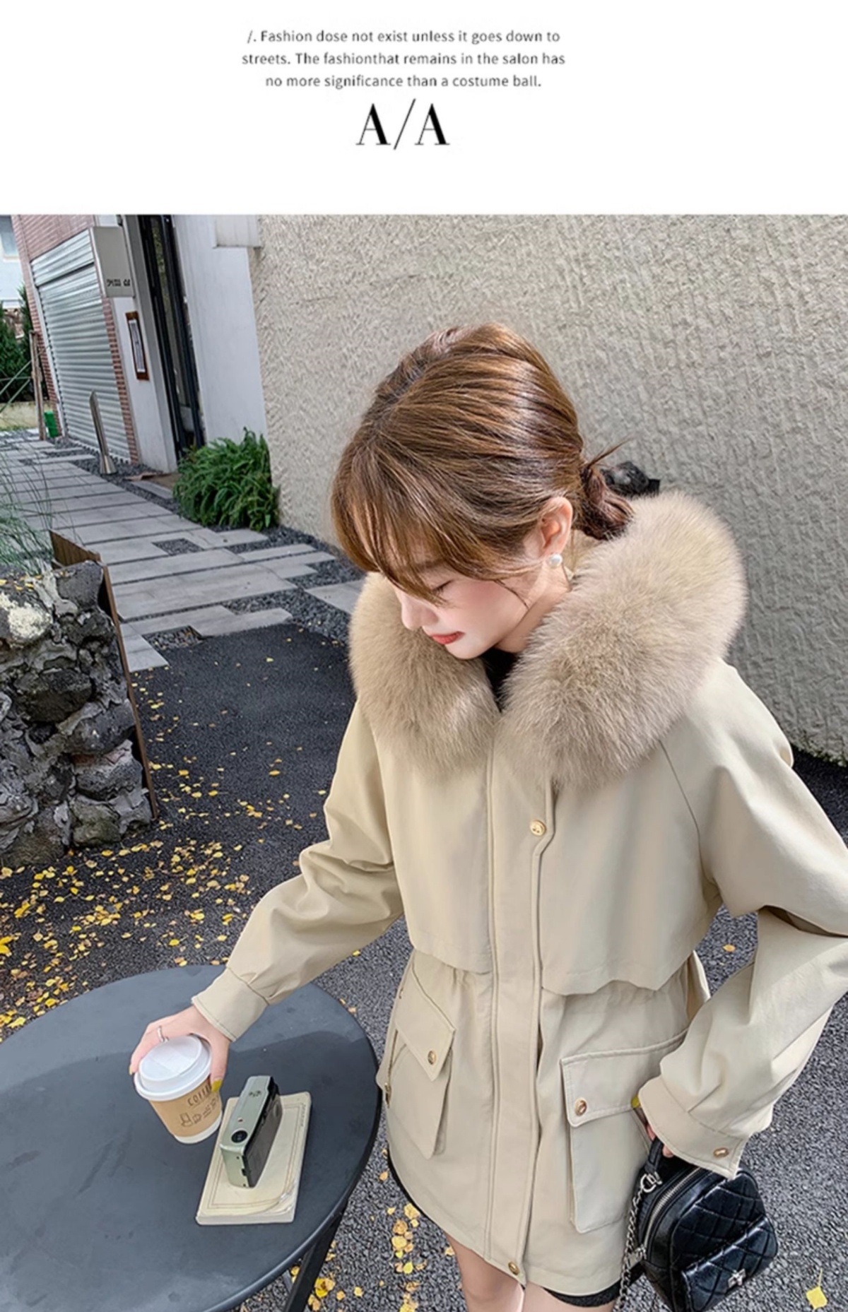 Áo khoác nữ dáng dài phong cách Hàn, điểm nhấn là cổ áo được làm từ lớp lông mềm mại và dày dặn. Bên trong áo có lớp lót bằng vải bông ấm áp, giúp giữ nhiệt tốt trong những ngày gió lạnh. Kiểu dáng phối hợp giữa áo khoác và áo len tạo nên vẻ ngoài năng động, thoải mái. Mặc kèm với quần jeans và giày thể thao để tạo phong cách hằng ngày. | Tên sản phẩm: Áo Khoác Nữ Dày Ấm Hàng Mùa Xuân Thu Đông - Thời Trang Nữ | Mã sản phẩm: L0404 - Giá: 2.480.000đ | Mã nhà sản xuất: HADA-G05Hình ảnh sản phẩm