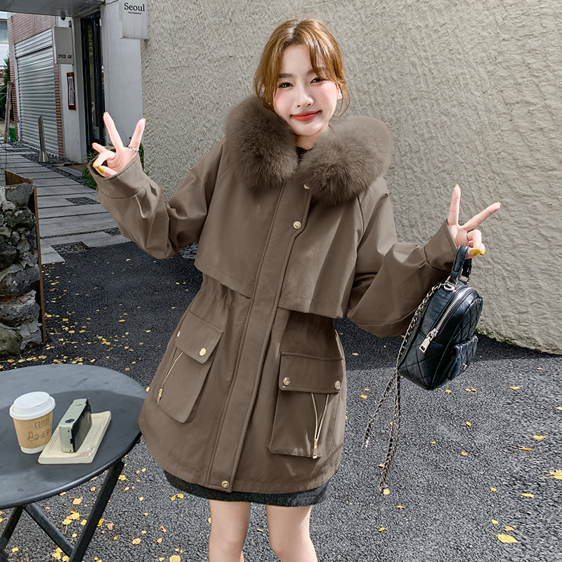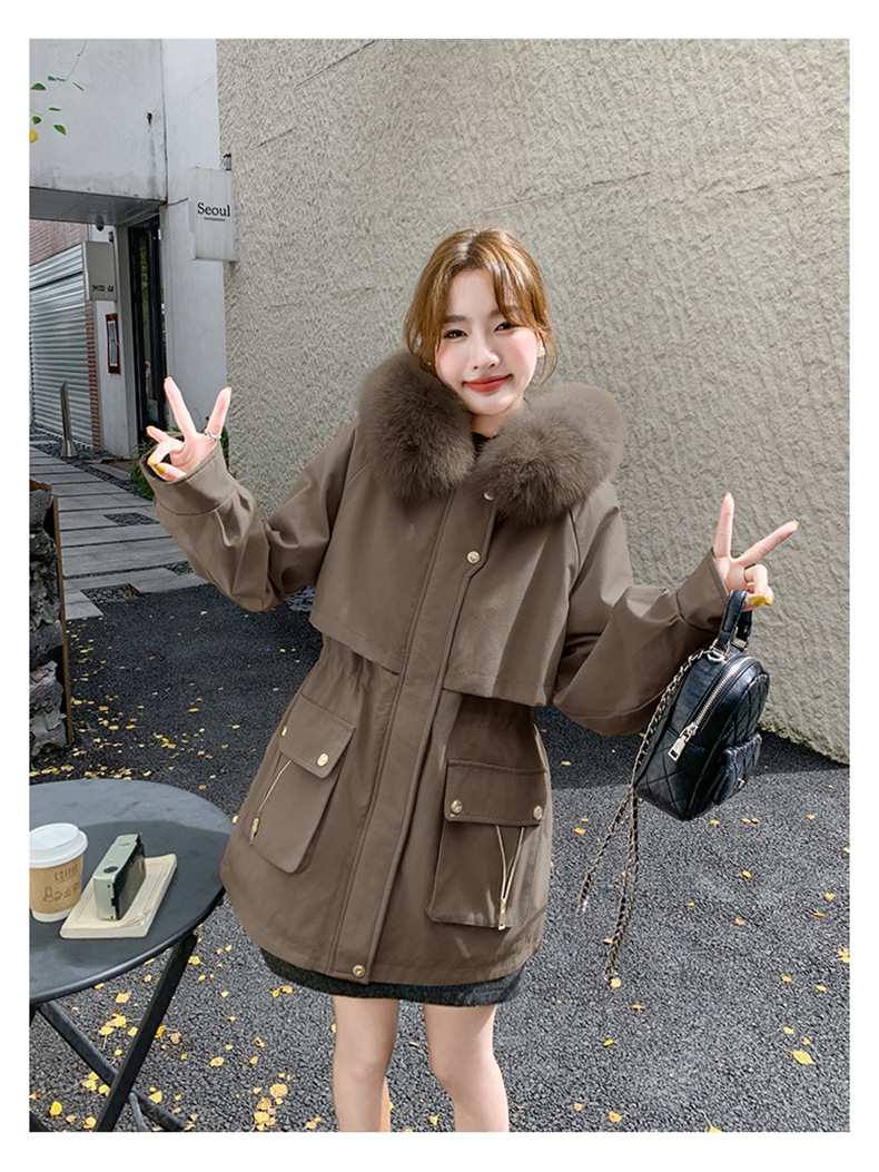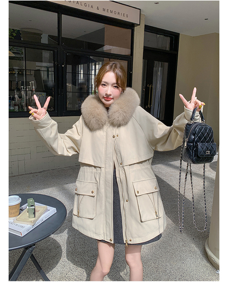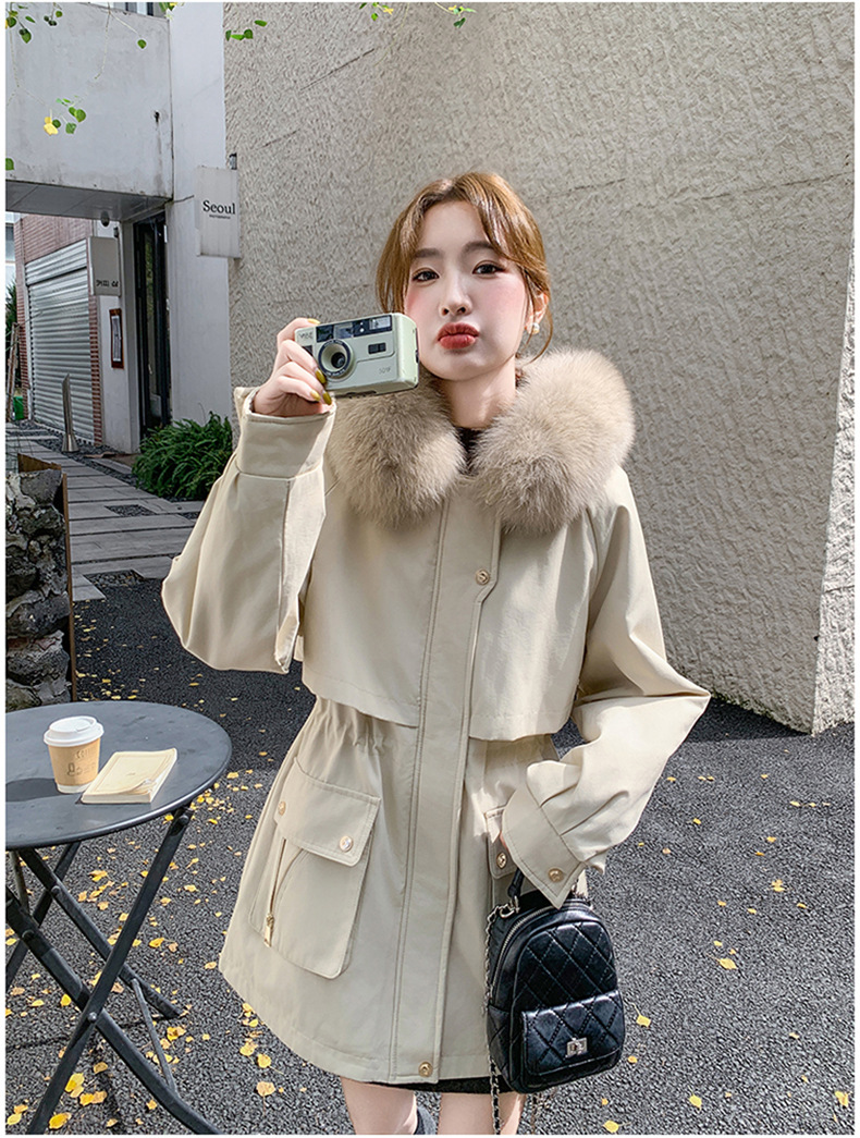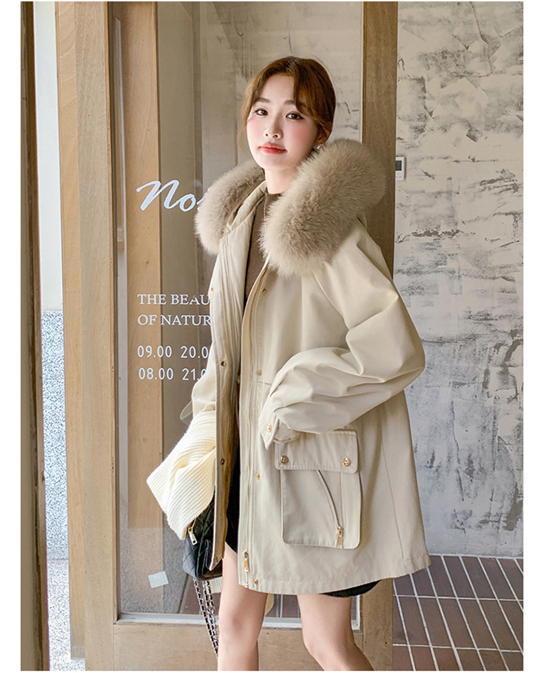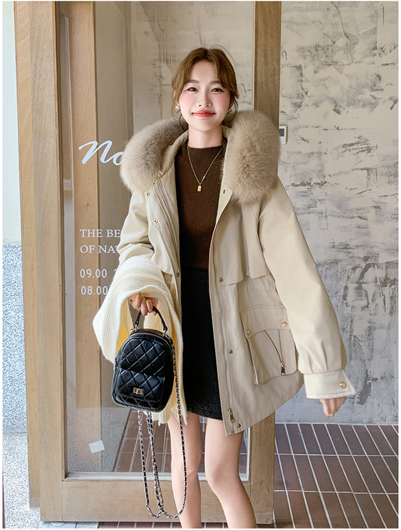 Áo khoác nữ dáng dài phong cách Hàn, điểm nhấn là cổ áo được làm từ lớp lông mềm mại và dày dặn. Bên trong áo có lớp lót bằng vải bông ấm áp, giúp giữ nhiệt tốt trong những ngày gió lạnh. Kiểu dáng phối hợp giữa áo khoác và áo len tạo nên vẻ ngoài năng động, thoải mái. Mặc kèm với quần jeans và giày thể thao để tạo phong cách hằng ngày. | Tên sản phẩm: Áo Khoác Nữ Dày Ấm Hàng Mùa Xuân Thu Đông - Thời Trang Nữ | Mã sản phẩm: L0404 - Giá: 2.480.000đ | Mã nhà sản xuất: HADA-G05Hình ảnh sản phẩm