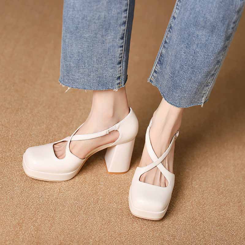 Giày sandal nữ thiết kế dáng La Mã với phần qu chéo mũi bọc tinh tế. Form giày ôm chân nhờ hệ thống dây buộc dọc thân, tạo cảm giác thoải mái khi mang. Kiểu dáng cổ điển kết hợp đế thô vững chãi và mũi vuông hiện đại, phù hợp cho những ngày hè. Có thể phối hợp cùng nhiều loại trang phục như quần shorts, váy liền hay quần jeans để tạo điểm nhấn. | Tên sản phẩm: Giày Cao Gót Nữ Gót Vuông Hàng Mùa Hè - Giày Dép Nữ | Mã sản phẩm: L0442 - Giá: 830.000đ | Mã nhà sản xuất: HUDSH-G03Hình ảnh sản phẩm