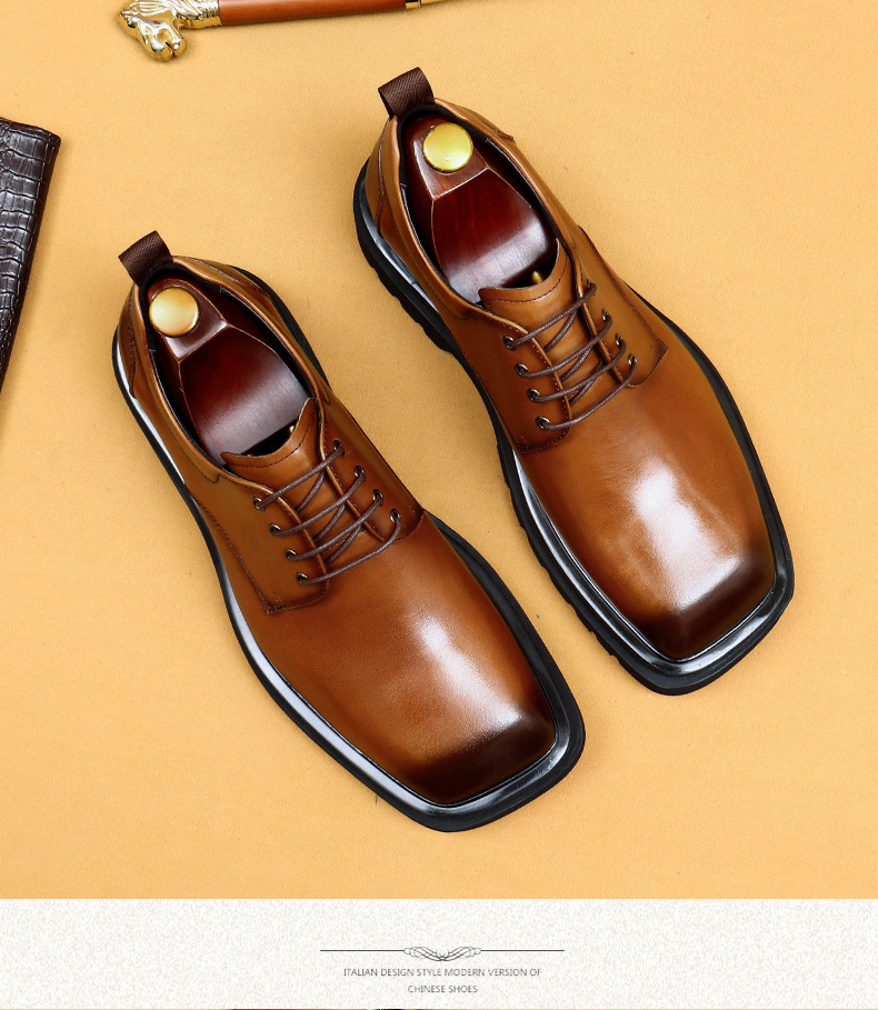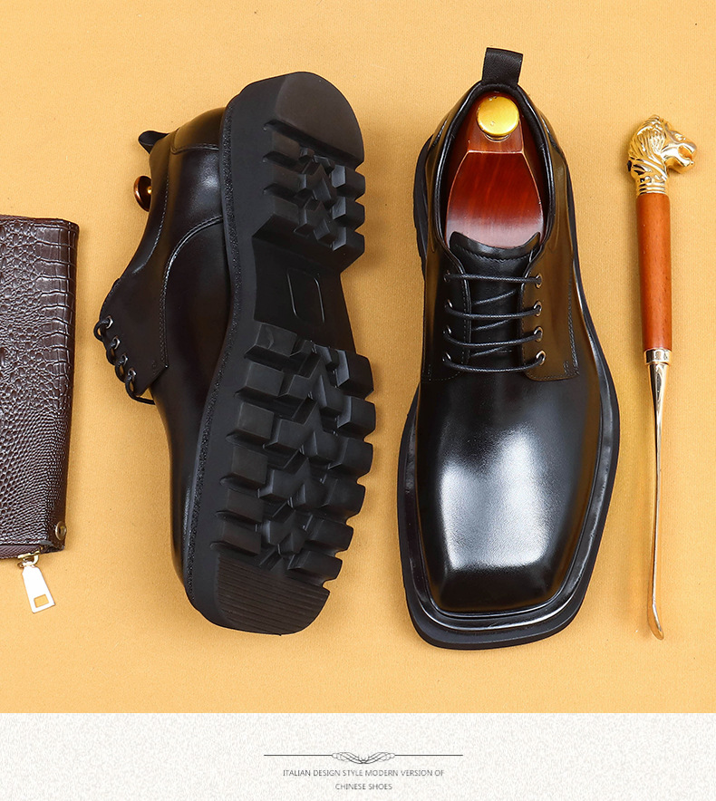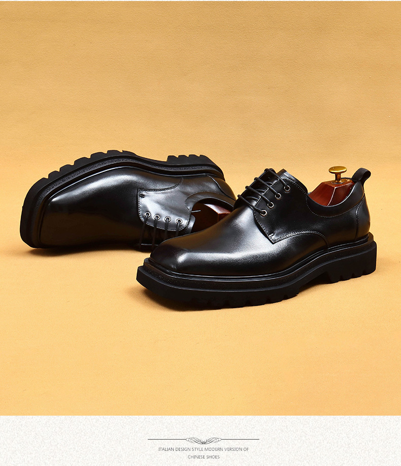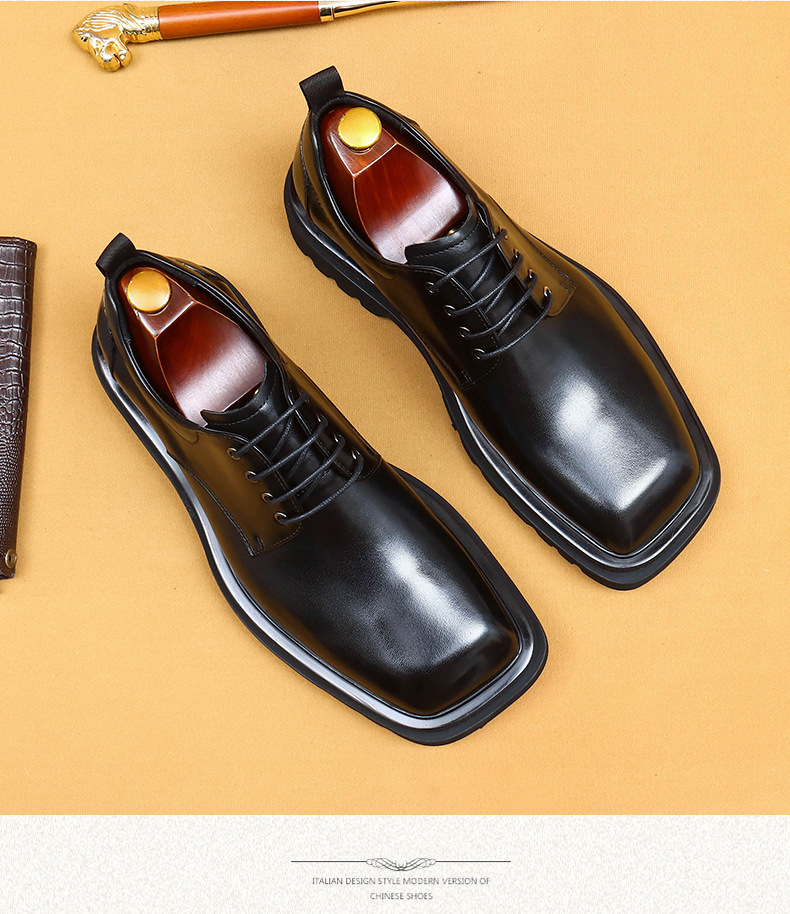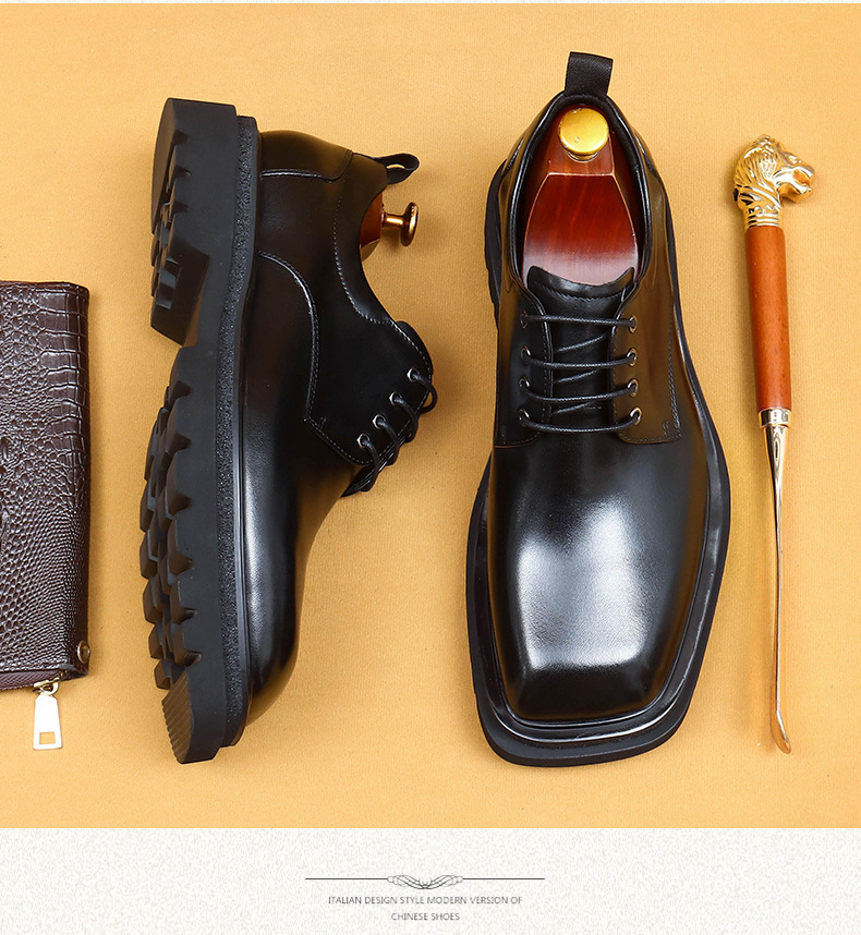 Giày da thật dành cho nam, kiểu dáng mũi vuông và đế dày tạo nên phong cách mạnh mẽ. Sản phẩm phù hợp khi mặc cùng trang phục công sở hoặc dạo phố. Chất liệu da mềm ôm chân nhưng vẫn đảm bảo độ thoải mái khi sử dụng lâu dài. Chỉ cần vệ sinh nhẹ bằng khăn mềm và bảo quản nơi khô ráo là giày luôn bền đẹp. | Tên sản phẩm: Giày Da Nam Chất Liệu Da Bò Tăng Chiều Cao Đế Cao - Giày Dép Nam | Mã sản phẩm: L0451 - Giá: 2.450.000đ | Mã nhà sản xuất: SHERAW-G05Hình ảnh sản phẩm