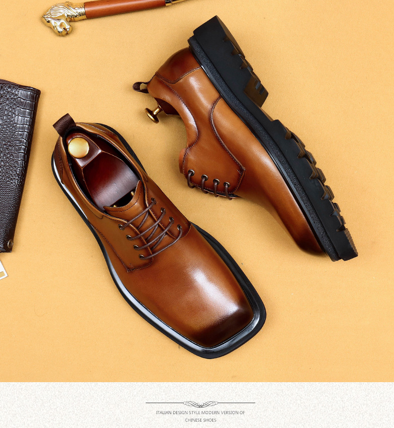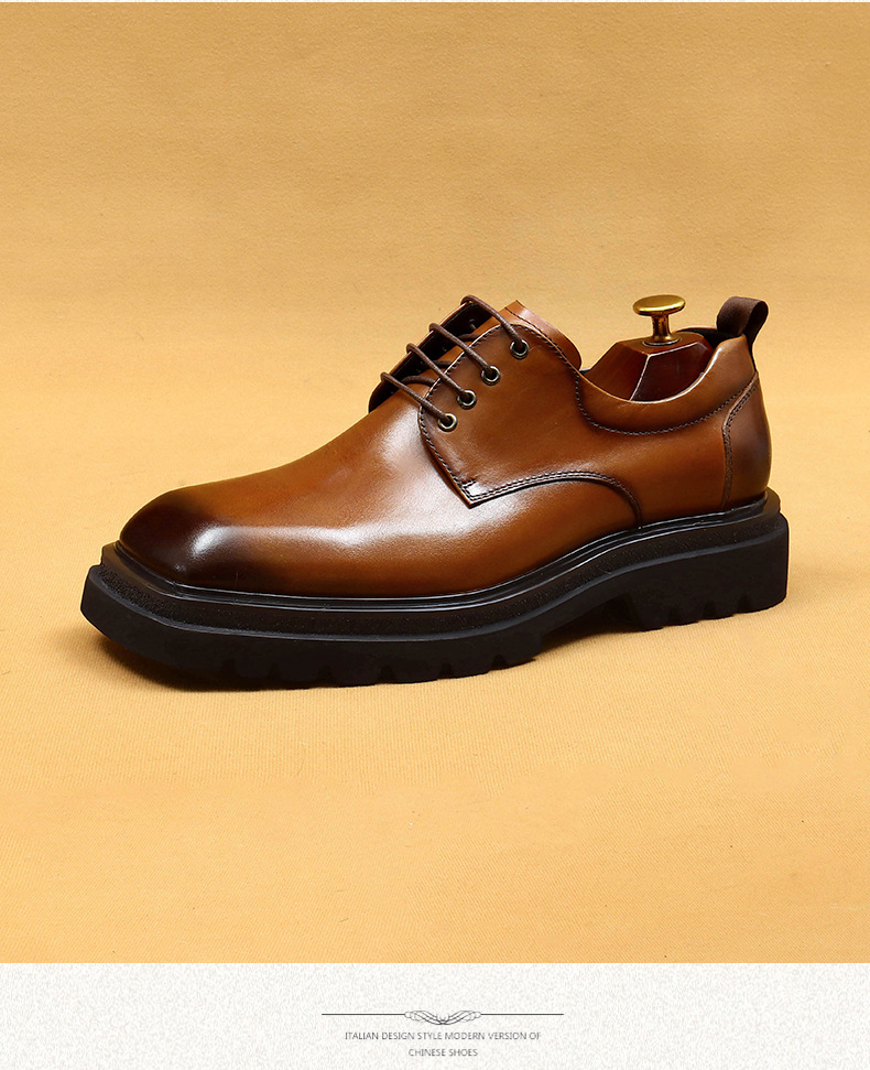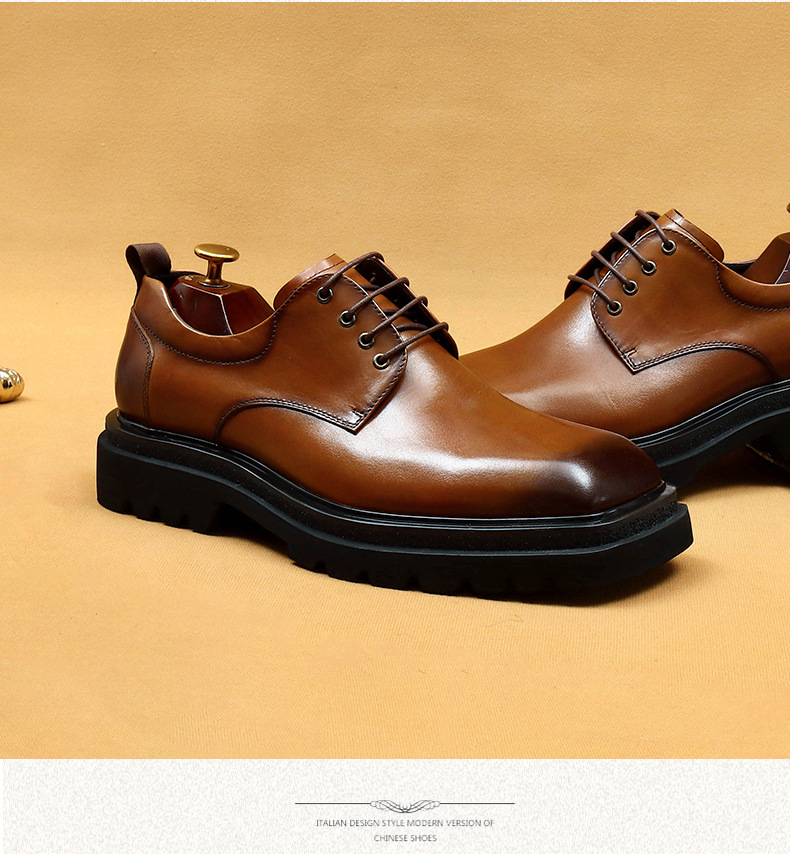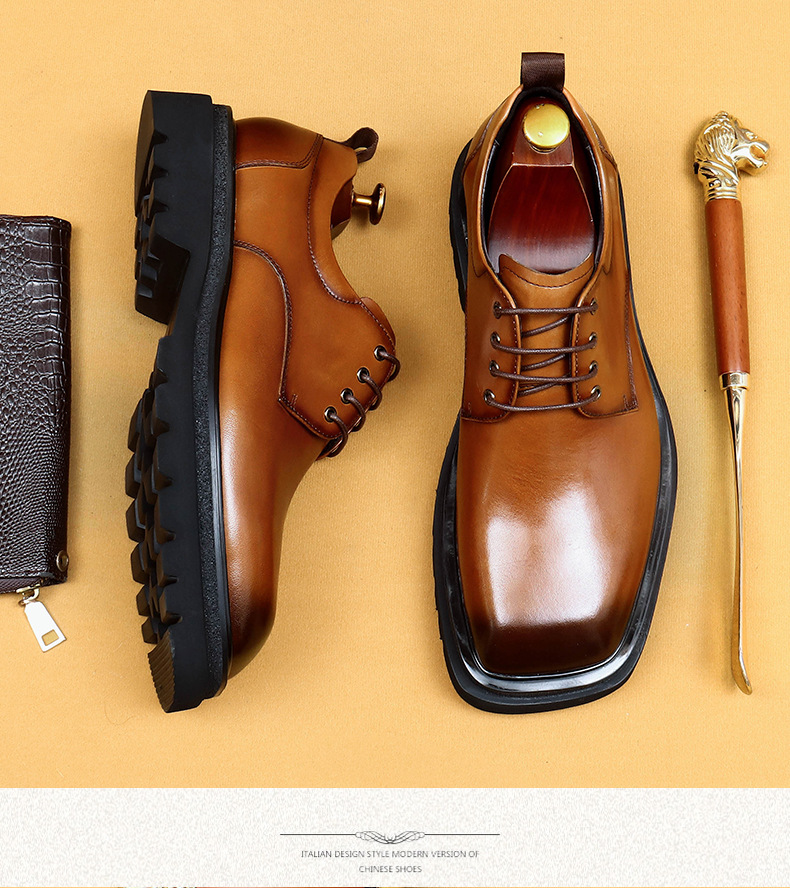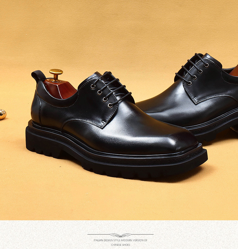 Giày da thật dành cho nam, kiểu dáng mũi vuông và đế dày tạo nên phong cách mạnh mẽ. Sản phẩm phù hợp khi mặc cùng trang phục công sở hoặc dạo phố. Chất liệu da mềm ôm chân nhưng vẫn đảm bảo độ thoải mái khi sử dụng lâu dài. Chỉ cần vệ sinh nhẹ bằng khăn mềm và bảo quản nơi khô ráo là giày luôn bền đẹp. | Tên sản phẩm: Giày Da Nam Chất Liệu Da Bò Tăng Chiều Cao Đế Cao - Giày Dép Nam | Mã sản phẩm: L0451 - Giá: 2.450.000đ | Mã nhà sản xuất: SHERAW-G05Hình ảnh sản phẩm