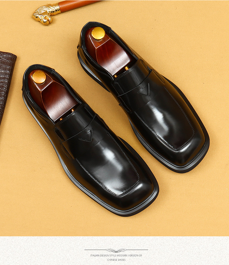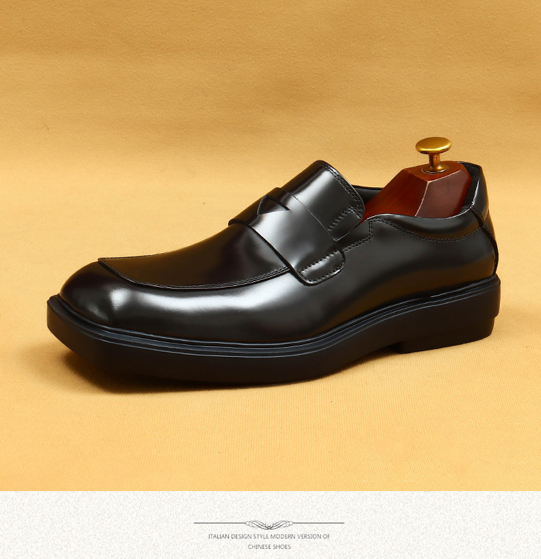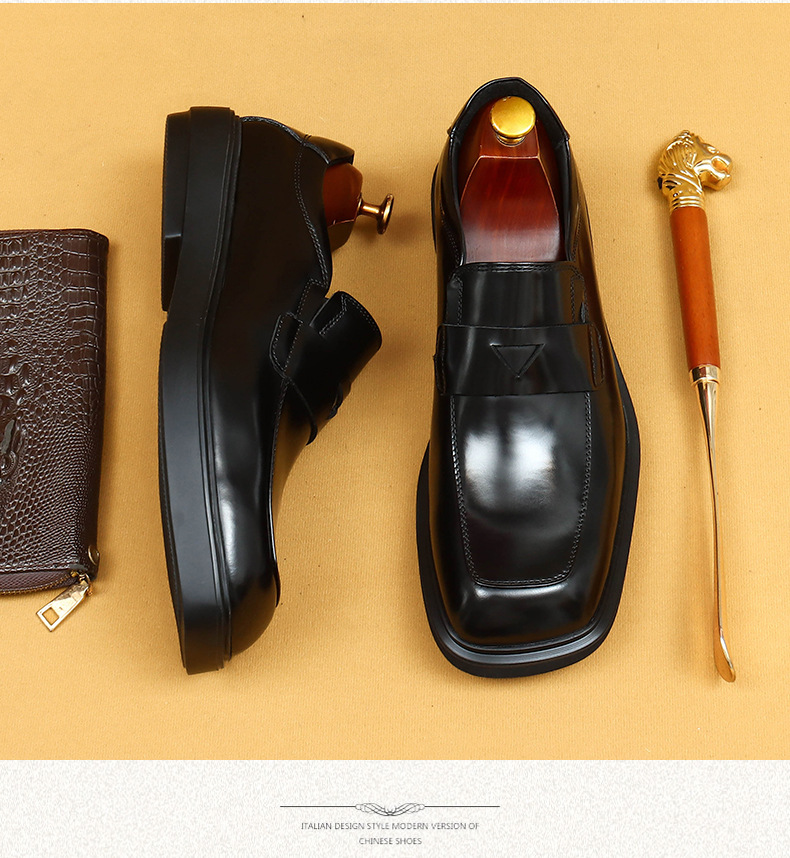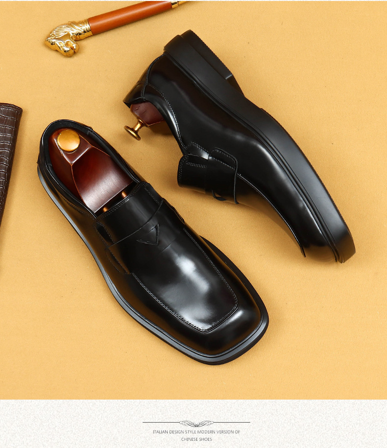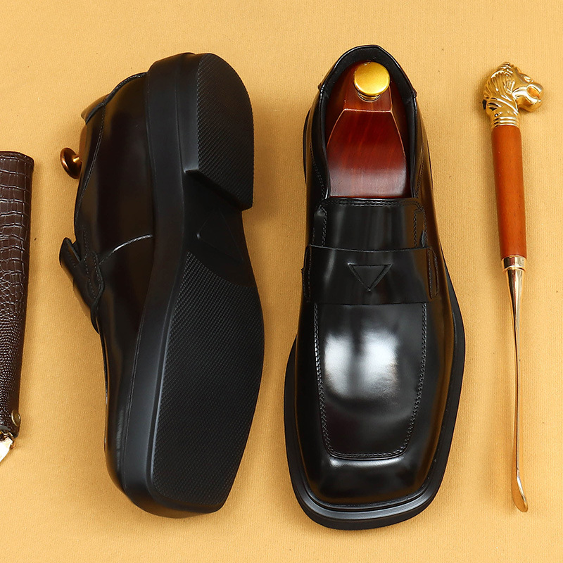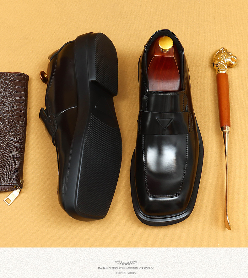 Giày da đen dành cho nam, kiểu dáng mũi vuông rộng rãi và đế dày, tạo nên phong cách vừa lịch sự nhẹ nhàng vừa khỏe khoắn. Bề mặt giày bóng mịn, dễ dàng vệ sinh và lau chùi. Thiết kế không cần buộc dây, mang vào tháo ra thuận tiện và nhanh chóng. Sản phẩm phù hợp cho nhiều dịp như đi làm, gặp gỡ hay dạo phố. Chỉ cần chọn đúng cỡ và kết hợp cùng trang phục đơn giản là đã có diện mạo chỉn chu. | Tên sản phẩm: Giày Da Nam Đế Cao - Giày Dép Nam | Mã sản phẩm: L0457 - Giá: 2.390.000đ | Mã nhà sản xuất: SHERAW-G05Hình ảnh sản phẩm