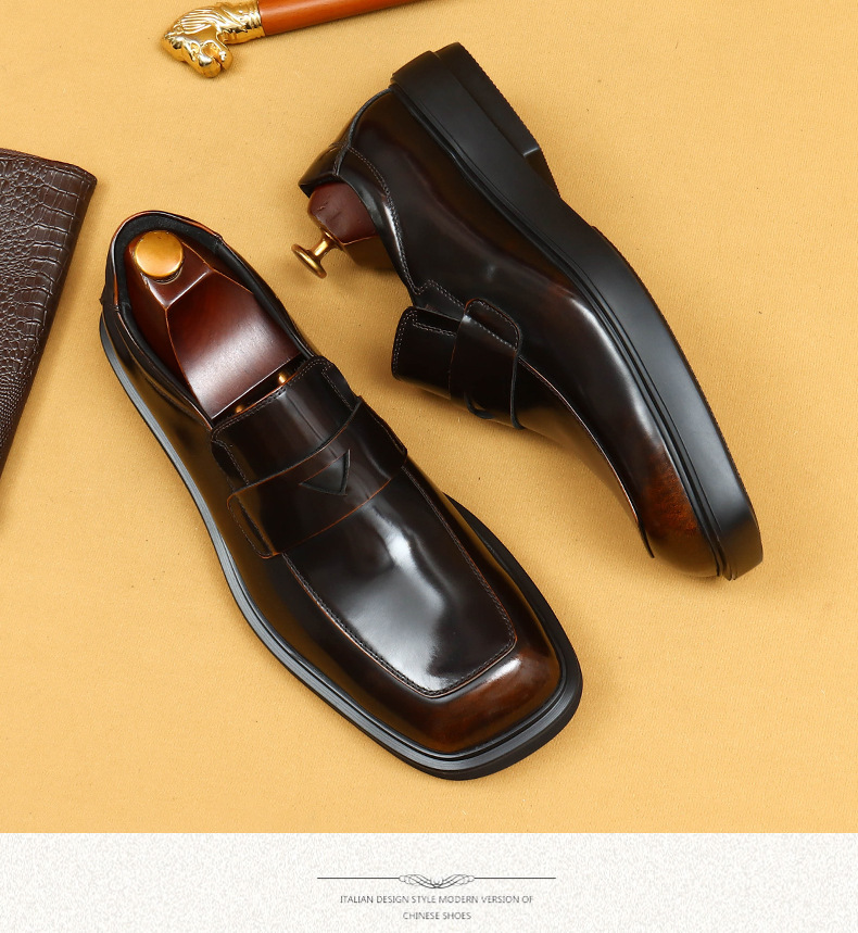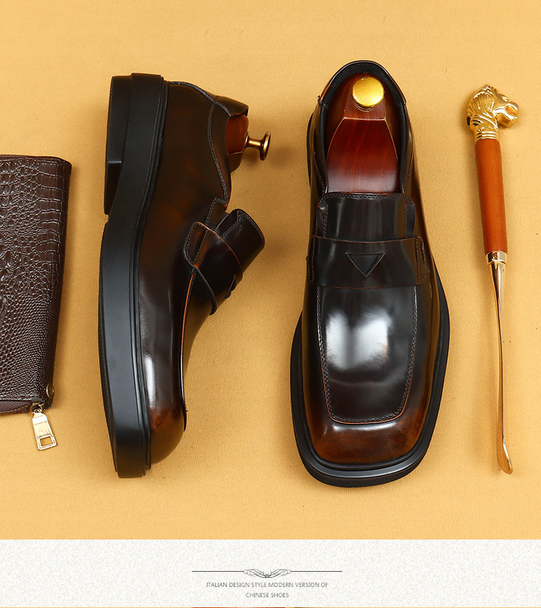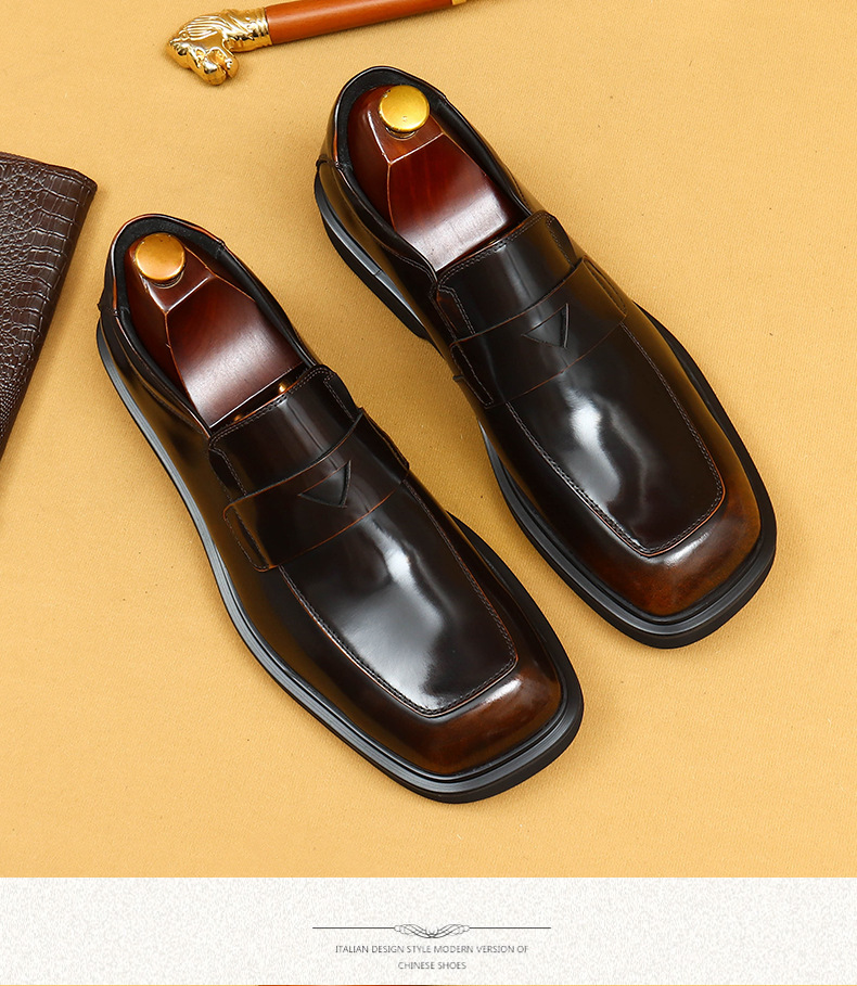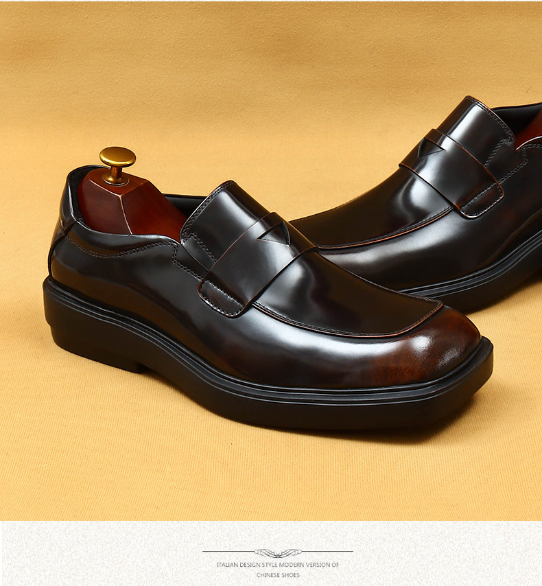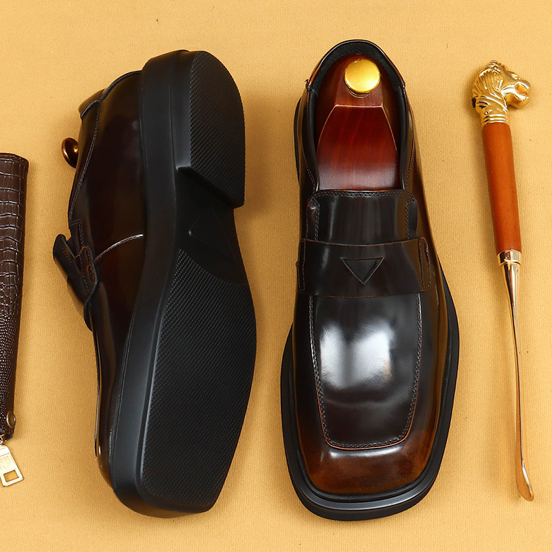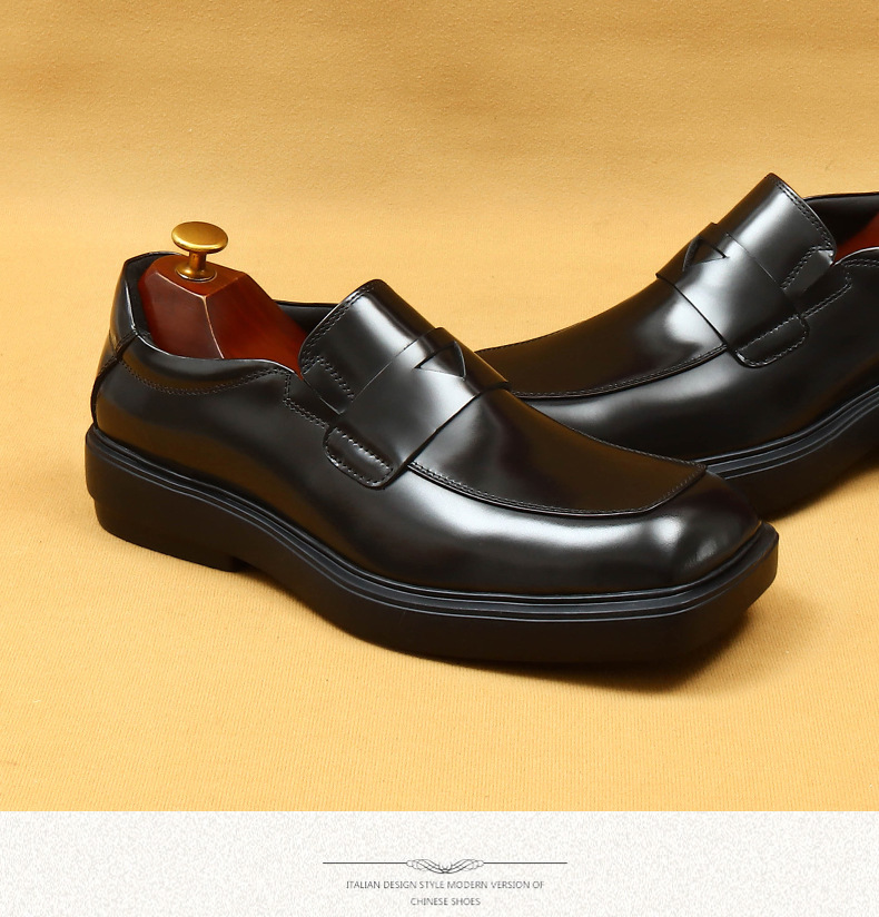 Giày da đen dành cho nam, kiểu dáng mũi vuông rộng rãi và đế dày, tạo nên phong cách vừa lịch sự nhẹ nhàng vừa khỏe khoắn. Bề mặt giày bóng mịn, dễ dàng vệ sinh và lau chùi. Thiết kế không cần buộc dây, mang vào tháo ra thuận tiện và nhanh chóng. Sản phẩm phù hợp cho nhiều dịp như đi làm, gặp gỡ hay dạo phố. Chỉ cần chọn đúng cỡ và kết hợp cùng trang phục đơn giản là đã có diện mạo chỉn chu. | Tên sản phẩm: Giày Da Nam Đế Cao - Giày Dép Nam | Mã sản phẩm: L0457 - Giá: 2.390.000đ | Mã nhà sản xuất: SHERAW-G05Hình ảnh sản phẩm