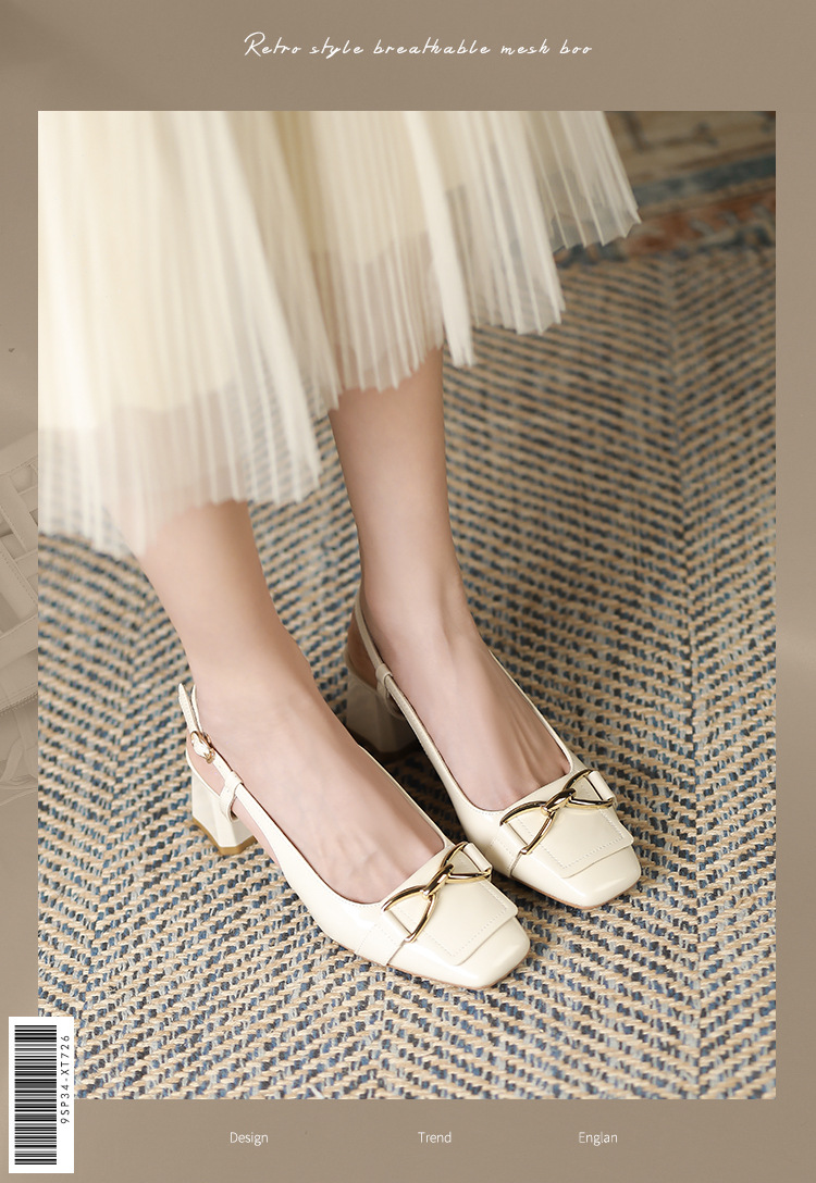 Giày cao gót nữ thiết kế kiểu dáng thời trang, mang phong cách châu Âu hiện đại. Sản phẩm có phần mũi vuông và gót thấp chắc chắn, tạo dáng đứng đắn. Điểm nhấn là chi tiết khóa vòng kim loại trang trí ở phía trước. Phần sau được thiết kế hở gót, mang lại sự thông thoáng và thoải mái khi di chuyển. Sản phẩm phù hợp để phối cùng nhiều loại trang phục trong mùa hè. Bạn chỉ cần xỏ chân vào và cài khóa là đã có ngay một set đồ hoàn chỉnh. | Tên sản phẩm: Giày Cao Gót Nữ Gót Vuông Hàng Mùa Hè - Giày Dép Nữ | Mã sản phẩm: L0519 - Giá: 870.000đ | Mã nhà sản xuất: HURYAN-G03Hình ảnh sản phẩm