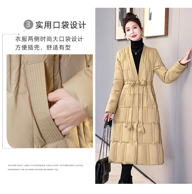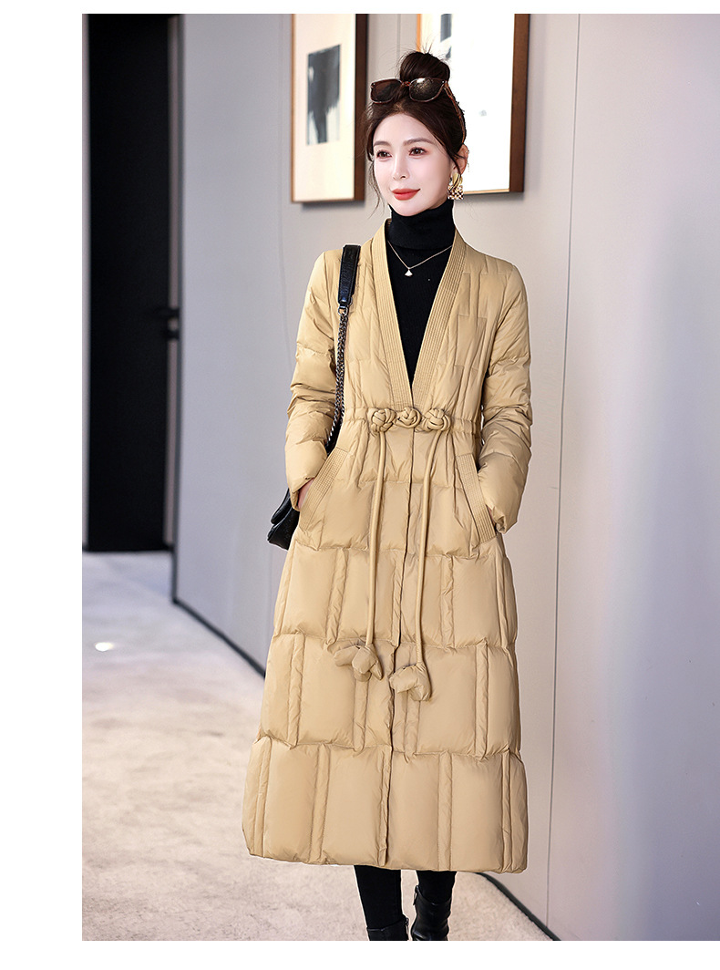 Áo khoác dáng dài phong cách cổ điển, thiết kế vừa vặn tôn dáng. Sản phẩm có cổ chữ V thanh lịch, chiều dài qua gối giữ ấm tốt. Áo được lót bằng lớp lông vũ tự nhiên nhẹ và ấm. Kiểu dáng phù hợp cho những ngày đông giá lạnh. Có thể mặc cùng áo len và quần dài để tạo vẻ ngoài chỉn chu. Dễ dàng phối hợp với nhiều trang phục khác nhau. | Tên sản phẩm: Áo Khoác Nữ Dài Quá Gối Cổ Chữ V Trông Trẻ Hơn Tuổi Hàng Mùa Xuân Thu Đông Phục Cổ Cổ Điển - Thời Trang Nữ | Mã sản phẩm: L0526 - Giá: 4.610.000đ | Mã nhà sản xuất: HADA-G06Hình ảnh sản phẩm