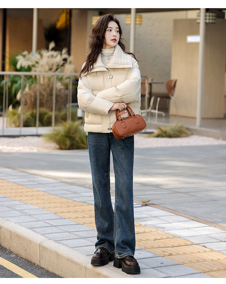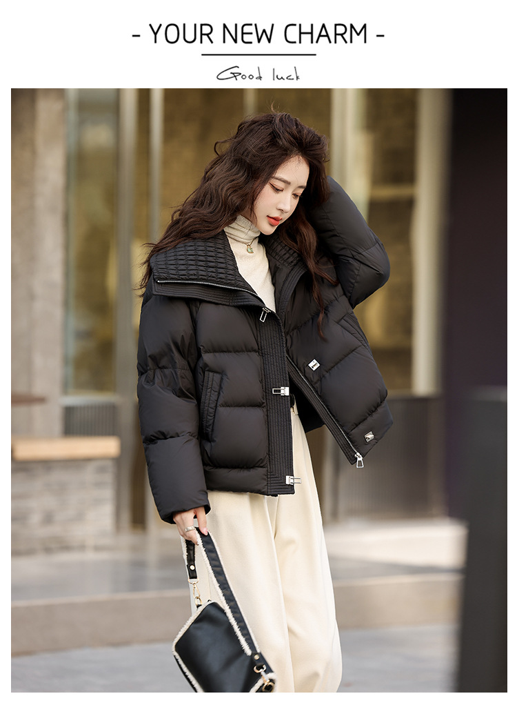 Áo khoác dáng ngắn dành cho các bạn nữ có chiều cao nhỏ nhắn. Thiết kế cổ bẻ rộng tạo điểm nhấn nổi bật và thanh lịch. Chất liệu lông vũ bên trong giữ ấm tốt cho mùa đông. Kiểu dáng ôm vừa vặn giúp tôn dáng người mặc. Có thể phối hợp với nhiều loại trang phục khác nhau để tạo nên những vẻ ngoài ưa nhìn. Mặc giữ ấm trong những ngày thời tiết lạnh giá. | Tên sản phẩm: Áo Khoác Nữ Dáng Ôm Kín Cổ Hàng Mùa Xuân Thu Đông - Thời Trang Nữ | Mã sản phẩm: L0529 - Giá: 3.690.000đ | Mã nhà sản xuất: HADA-G06Hình ảnh sản phẩm