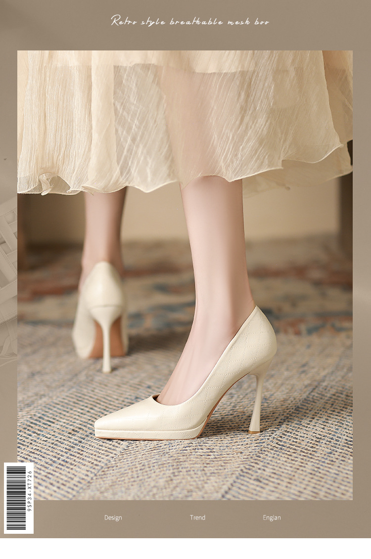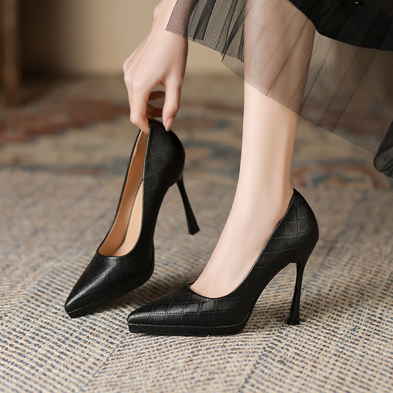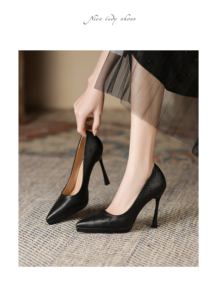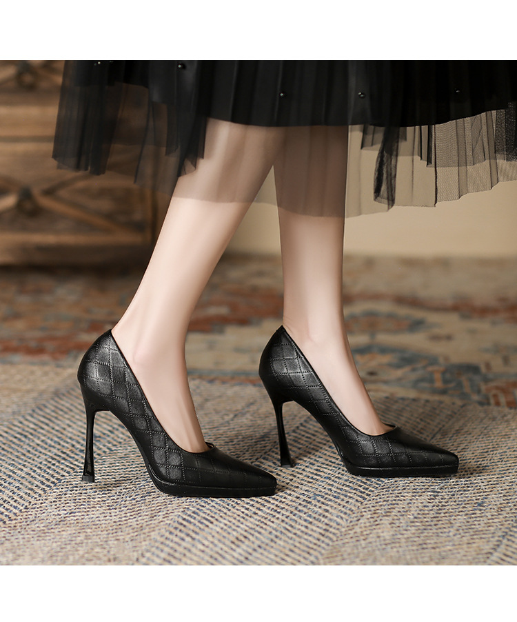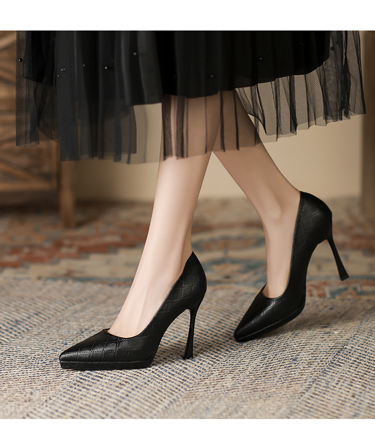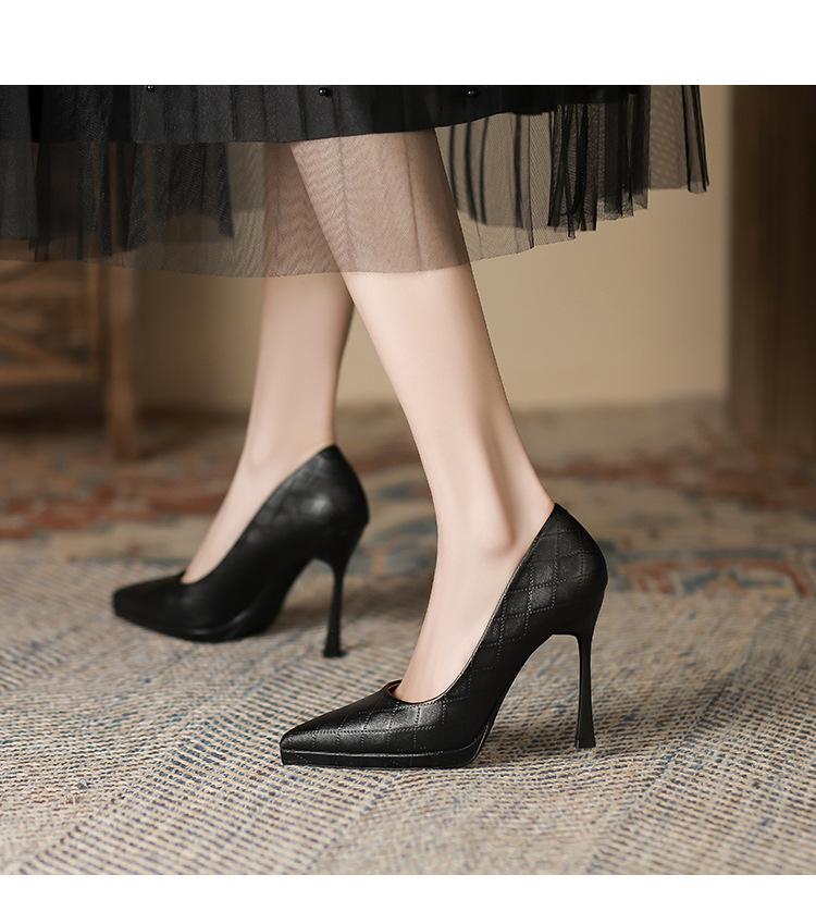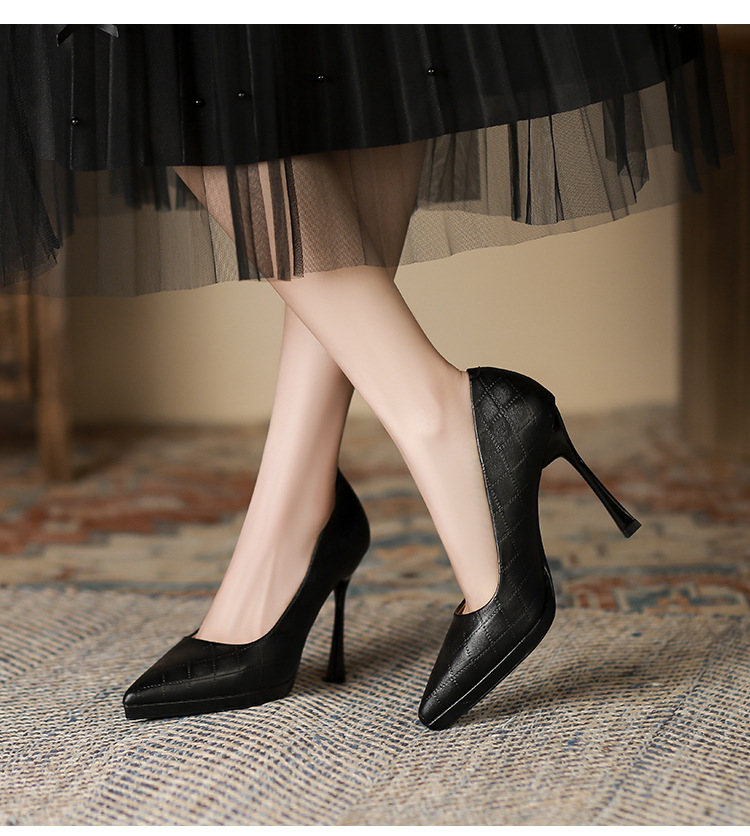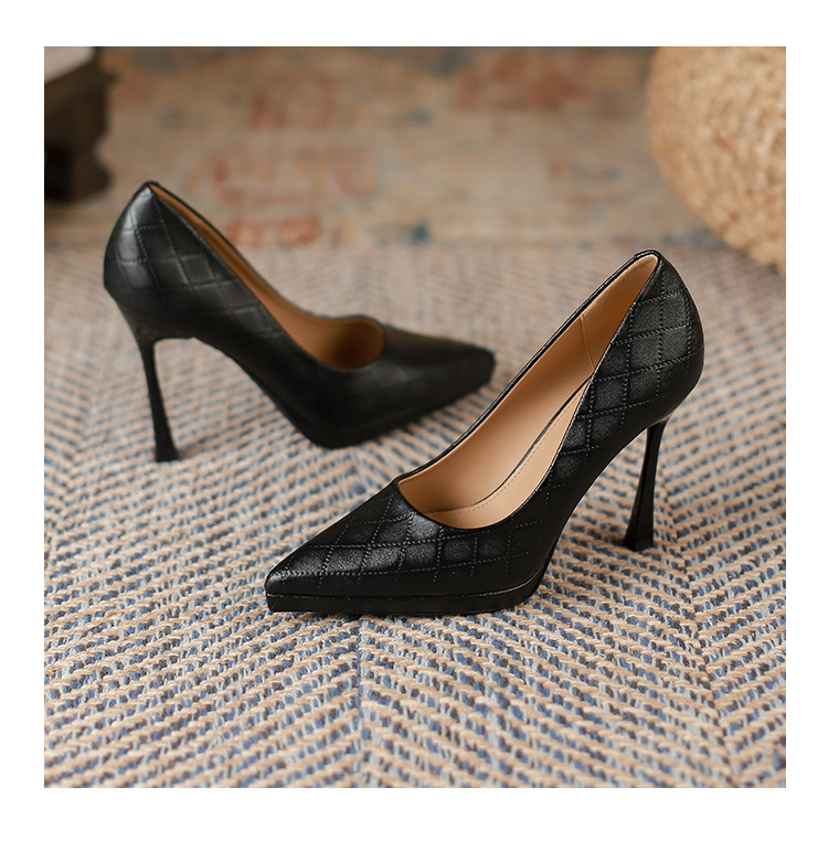 Đôi giày này có phần mũi nhọn và gót rất cao, tạo dáng thanh thoát cho người mang. Kiểu dáng kẻ ô thời thượng, phù hợp để đi làm hoặc dự tiệc. Sản phẩm được thiết kế thêm phần đế phụ trước, giúp nâng đỡ bàn chân và tạo cảm giác thoải mái hơn khi di chuyển. Bạn có thể phối cùng quần tây, chân váy hoặc quần jeans để tạo điểm nhấn nổi bật cho trang phục hằng ngày. | Tên sản phẩm: Giày Cao Gót Nữ Mũi Nhọn Gót Nhọn Kẻ Caro - Giày Dép Nữ | Mã sản phẩm: L0536 - Giá: 870.000đ | Mã nhà sản xuất: HURYAN-G03Hình ảnh sản phẩm