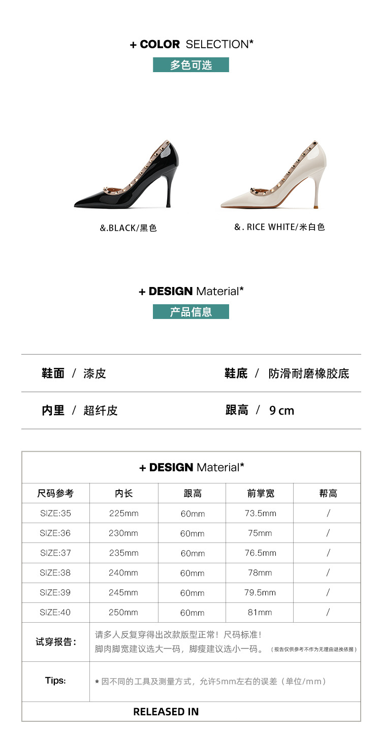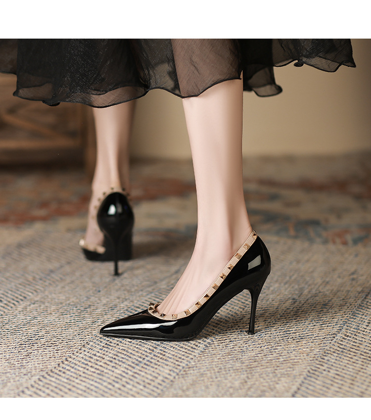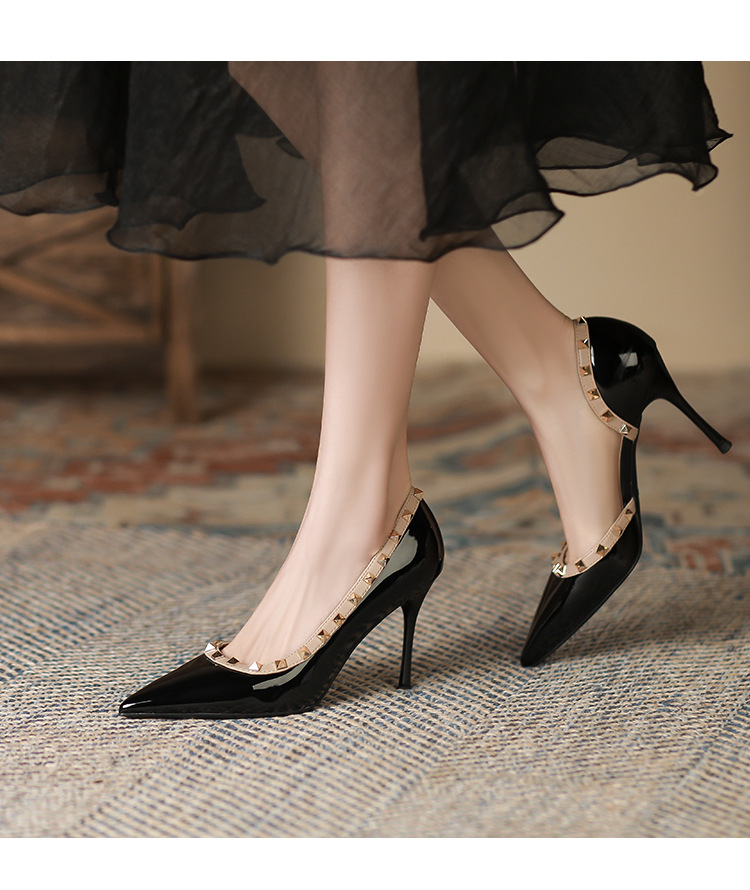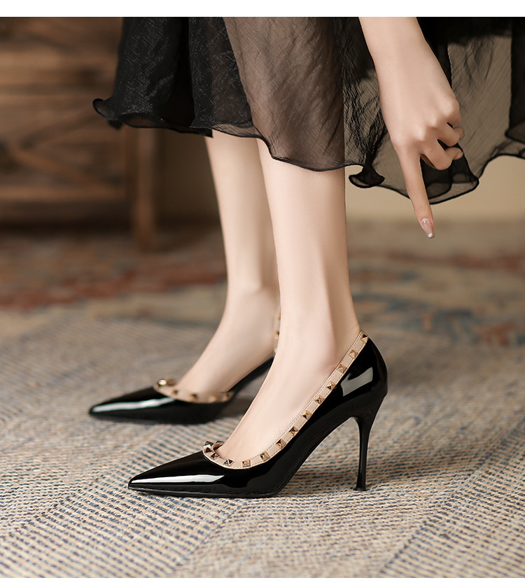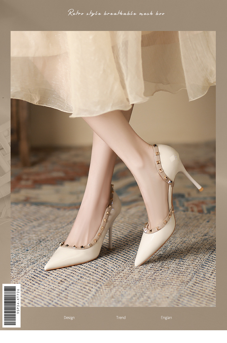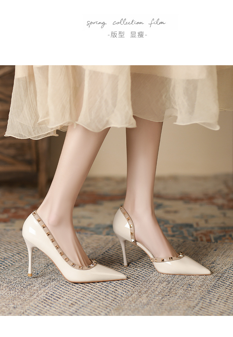 Đôi giày này có phần mũi nhọn và gót thon, tạo dáng thanh thoát. Kiểu dáng cổ thấp, hở hai bên hông mang đến cảm giác nhẹ nhàng. Trên giày được điểm xuyến những chi tiết đinh tán nhỏ, tăng thêm nét cá tính. Sản phẩm thích hợp để đi làm, dự tiệc hoặc tạo điểm nhấn cho các bộ trang phục hàng ngày. Bạn chỉ cần chọn đúng cỡ và kết hợp cùng trang phục yêu thích. | Tên sản phẩm: Giày Cao Gót Nữ Mũi Nhọn Gót Nhọn - Giày Dép Nữ | Mã sản phẩm: L0537 - Giá: 890.000đ | Mã nhà sản xuất: HURYAN-G03Hình ảnh sản phẩm