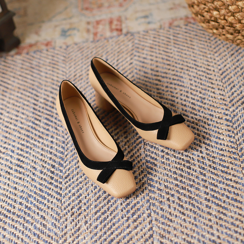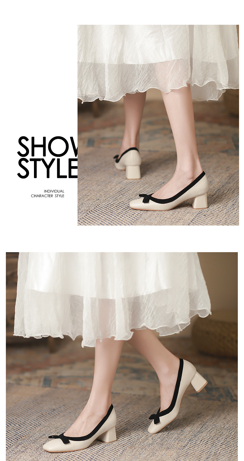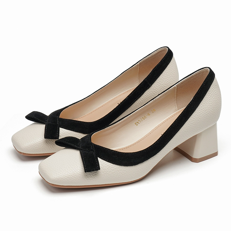 Đôi giày này mang phong cách cổ điển Pháp, điểm nhấn là chiếc nơ xinh xắn ở phía trước. Form giày ôm chân vừa vặn, phần mũi hở nhẹ nhàng tôn lên vẻ thanh lịch. Đế giàu được thiết kế chắc chắn, giúp nâng đỡ bàn chân và tạo dáng đứng thoải mái. Sản phẩm thích hợp để phối cùng nhiều loại trang phục như váy, quần tây hay quần jean. Bạn có thể sử dụng khi đi làm, dự tiệc hoặc những dịp gặp mặt thường ngày. | Tên sản phẩm: Giày Cao Gót Nữ Thắt Nơ Bướm Gót Vuông Hàng Mùa Xuân Thu Đông Phục Cổ Cổ Điển - Giày Dép Nữ | Mã sản phẩm: L0551 - Giá: 890.000đ | Mã nhà sản xuất: HURYAN-G03Hình ảnh sản phẩm