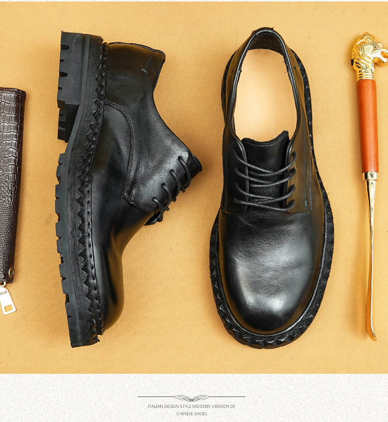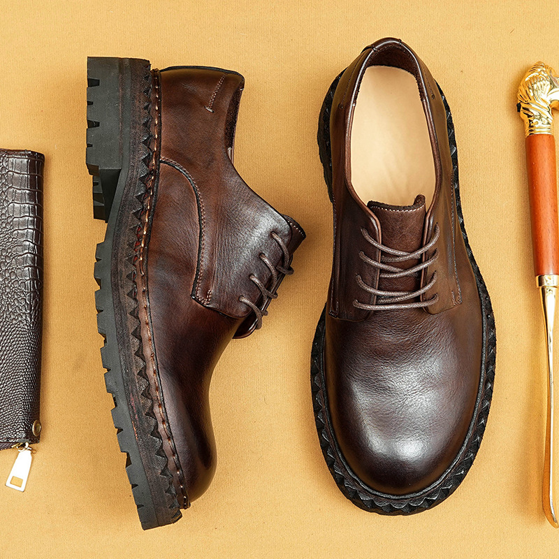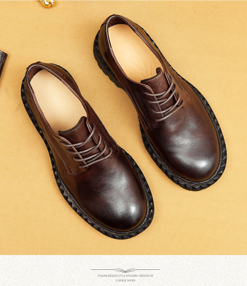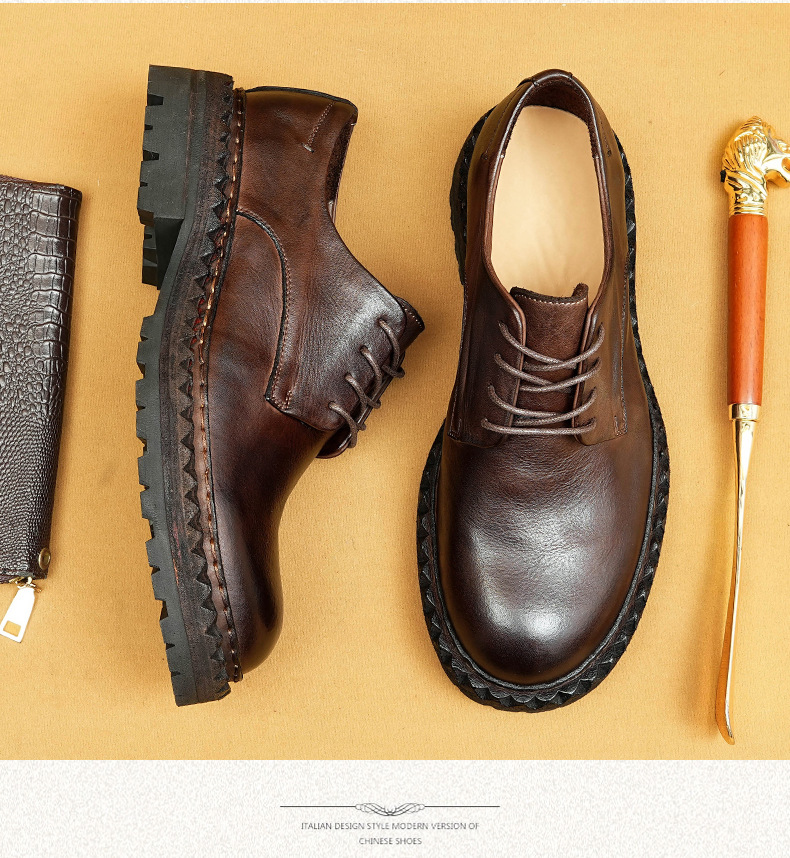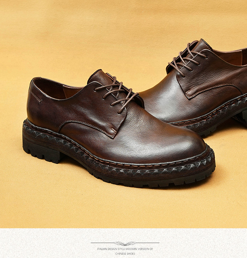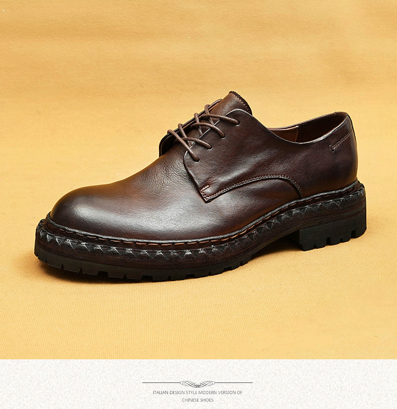 Giày sử dụng loại da mềm từ giống ngựa, được xử lý rửa nước tạo vẻ đẹp cổ điển. Kiểu dáng phối hợp nét mạnh mẽ kiểu Mỹ với phong cách châu Âu. Đế giày được làm dày dặn, tạo cảm giác vững chãi khi di chuyển. Mẫu giày này phù hợp cho những dịp thư giãn hằng ngày. Có thể kết hợp với nhiều loại trang phục khác nhau để tạo nên phong cách riêng. | Tên sản phẩm: Giày Da Nam Đế Cao Phục Cổ Cổ Điển - Giày Dép Nam | Mã sản phẩm: L0552 - Giá: 3.980.000đ | Mã nhà sản xuất: SHERAW-G06Hình ảnh sản phẩm