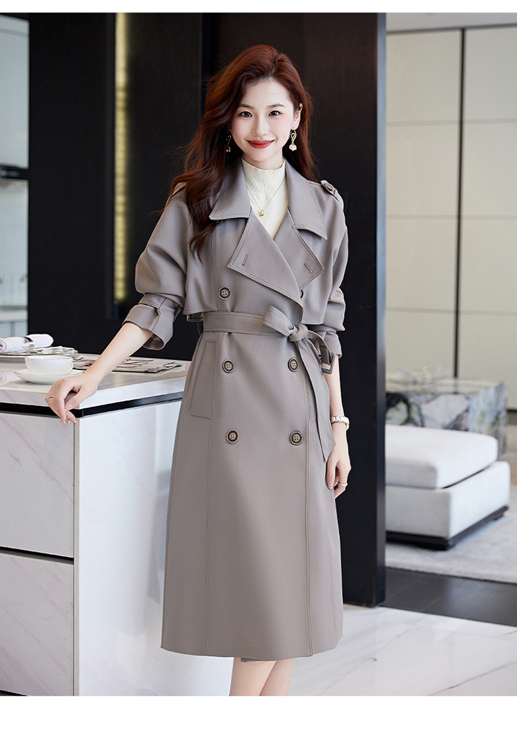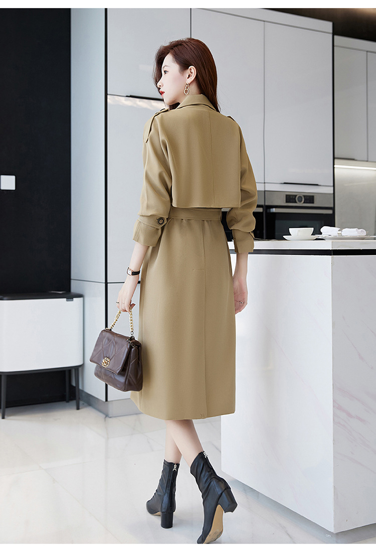 Áo khoác dáng dài cho nữ, thiết kế hợp thời trang với điểm nhấn ở phần cổ áo và thắt lưng tạo dáng. Sản phẩm có kiểu dáng pha trộn nét phóng khoáng và thanh lịch, phù hợp cho tiết trời mát mẻ. Chất vải nhẹ, không dày, giúp mặc thoải mái khi di chuyển. Dễ dàng kết hợp với quần jeans và giày thể thao hoặc váy liền để tạo nhiều phong cách khác nhau. | Tên sản phẩm: Áo Khoác Nữ Hàng Mùa Xuân Thu Đông - Thời Trang Nữ | Mã sản phẩm: L0561 - Giá: 2.160.000đ | Mã nhà sản xuất: HADA-G05Hình ảnh sản phẩm