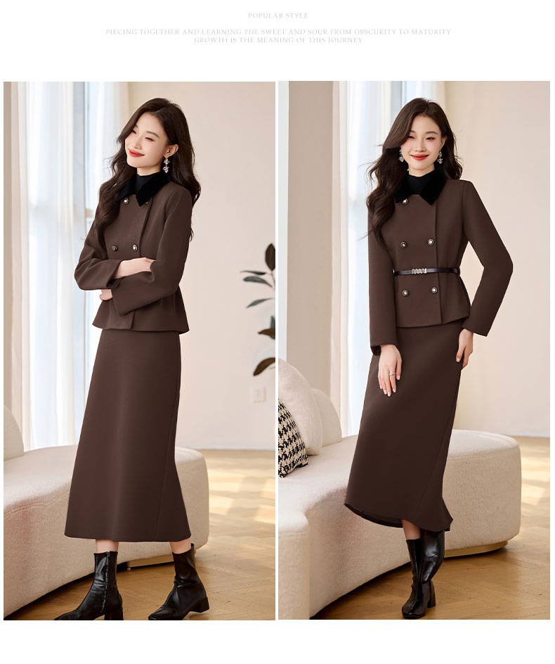 Bộ trang phục hai mảnh dành cho nữ, gồm áo khoác và chân váy, được làm từ chất liệu dạ dày dày ấm áp, thích hợp mặc trong thời tiết se lạnh của mùa thu đông. Kiểu dáng thanh lịch, tôn vinh nét duyên dáng và dịu dàng của người mặc. Phối áo khoác với chân váy đồng bộ tạo nên vẻ ngoài chỉn chu, dễ dàng phối đồ. Có thể mặc nguyên bộ hoặc phối cùng các trang phục khác để tạo nhiều phong cách đa dạng. | Tên sản phẩm: Áo Khoác Nữ Cả Bộ 2 Món Dày Ấm Hàng Mùa Xuân Thu Đông - Thời Trang Nữ | Mã sản phẩm: L0565 - Giá: 2.290.000đ | Mã nhà sản xuất: HADA-G05Hình ảnh sản phẩm