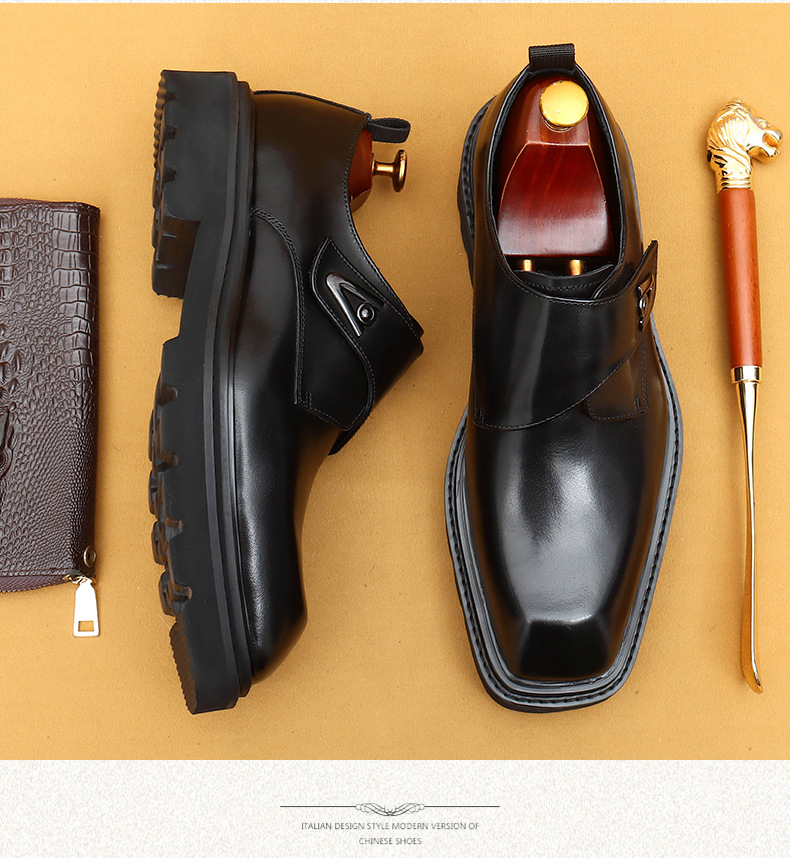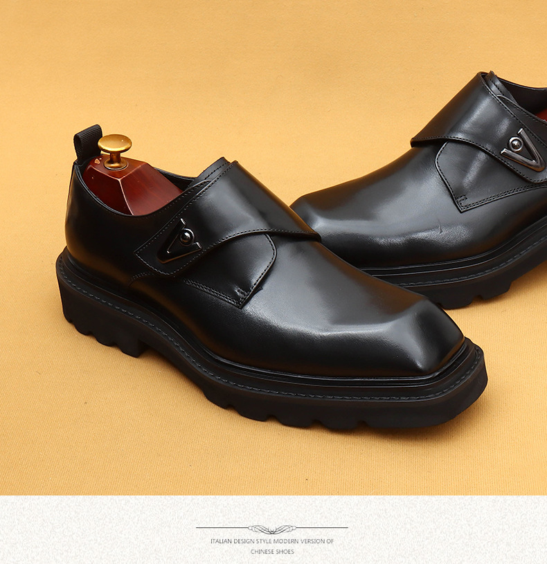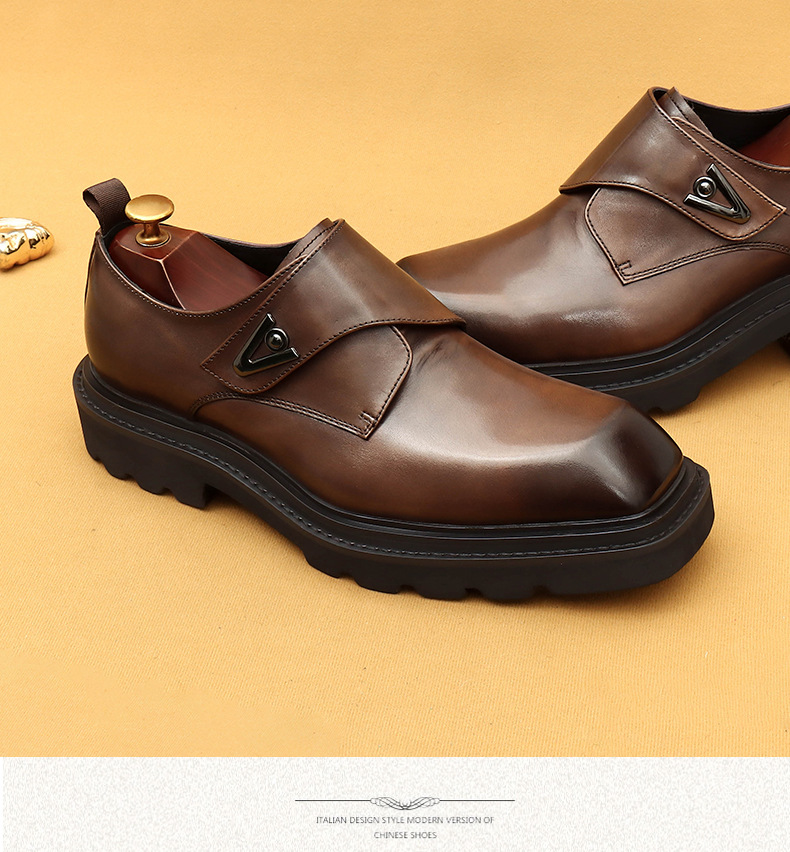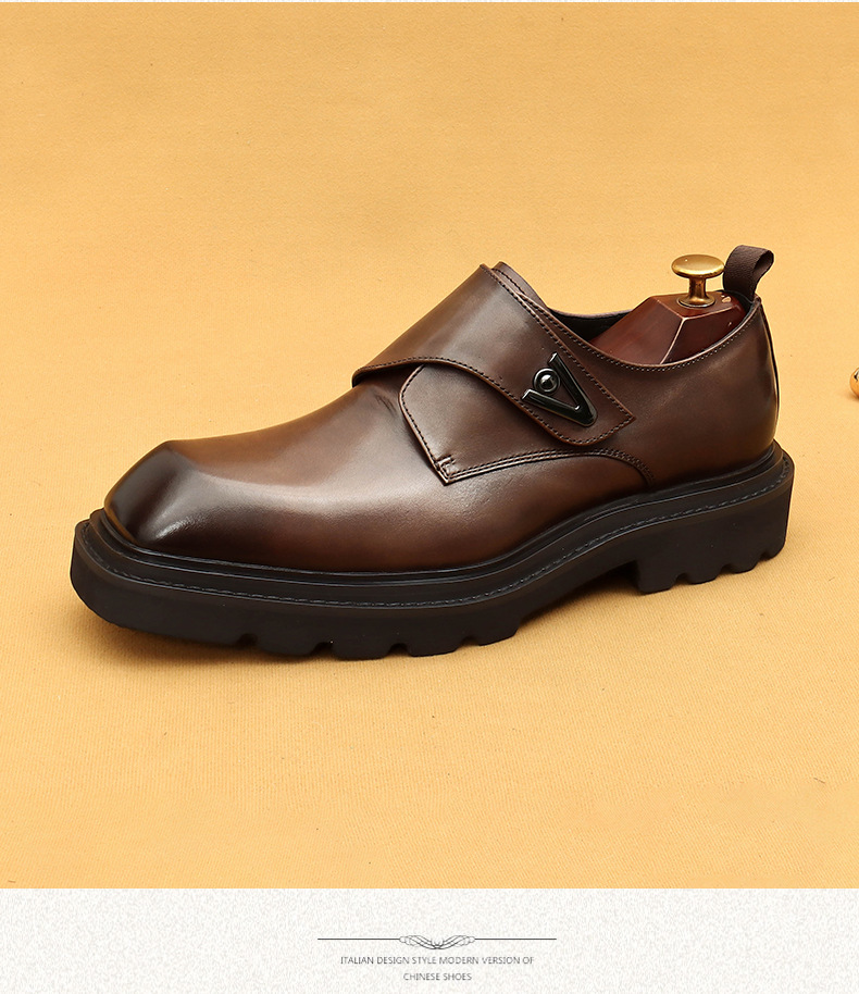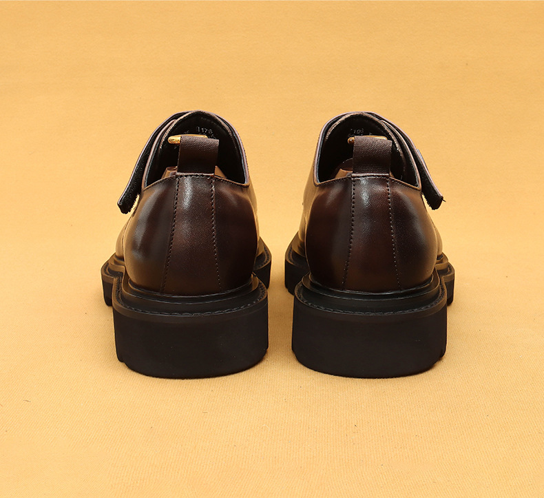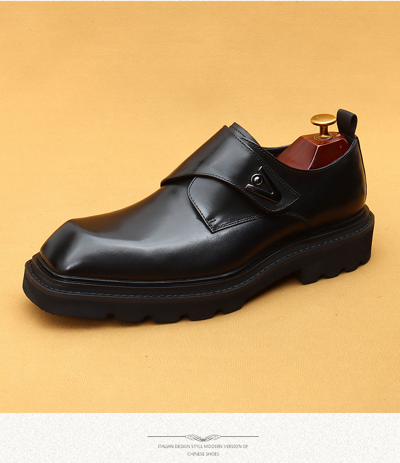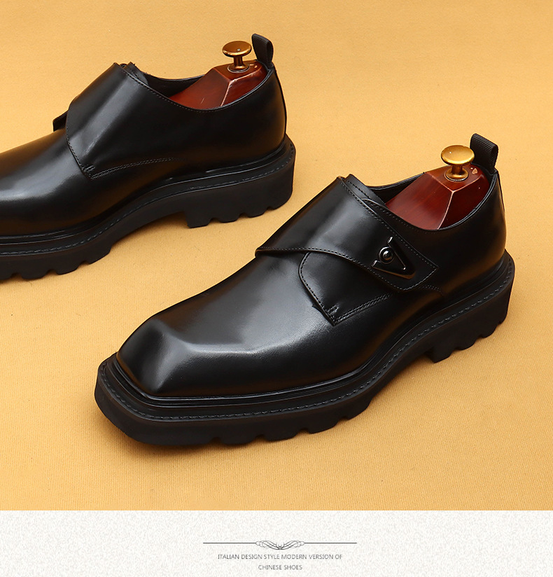 Giày da thật dành cho nam, kiểu dáng Hàn Quốc năng động. Đế giày được làm dày vừa phải, giúp tăng chiều cao một cách tự nhiên. Phần mũi giày vuông rộng rãi, ôm vừa vặn cho bàn chân. Sử dụng khóa dán tiện lợi thay cho dây buộc thông thường, dễ dàng điều chỉnh và mang vào nhanh chóng. Thiết kế linh hoạt, phù hợp cho cả công sở và những lúc thư giãn. Chỉ cần gạt nhẹ khóa dán là đã sẵn sàng để bước đi. | Tên sản phẩm: Giày Da Nam Chất Liệu Da Bò Tăng Chiều Cao Đế Cao Phong Cách Hàn Quốc - Giày Dép Nam | Mã sản phẩm: L0570 - Giá: 2.360.000đ | Mã nhà sản xuất: SHERAW-G05Hình ảnh sản phẩm