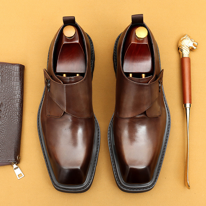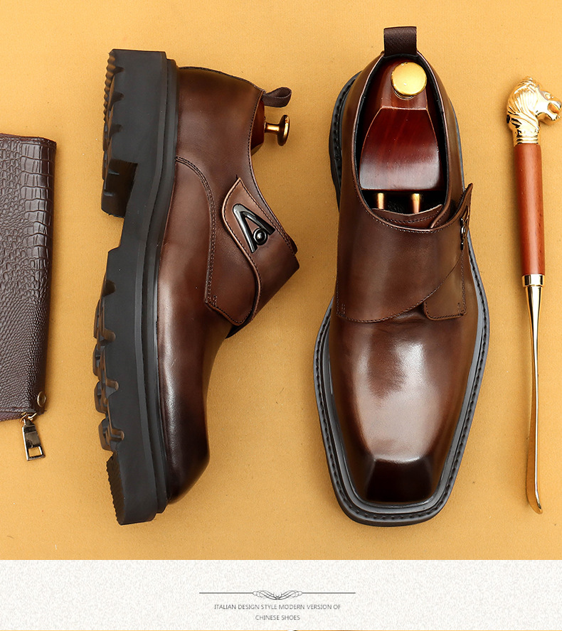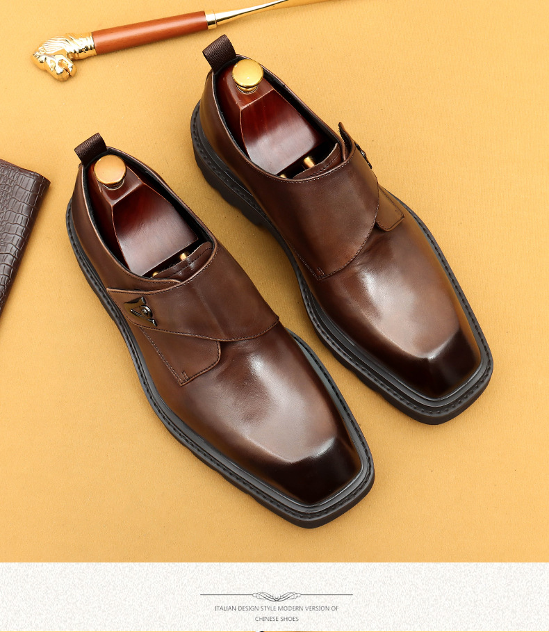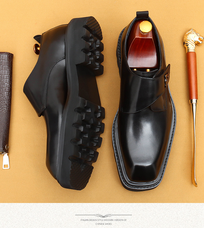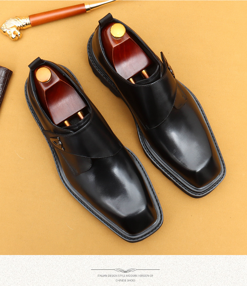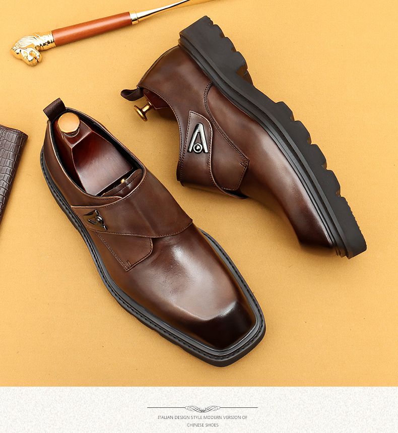Giày da thật dành cho nam, kiểu dáng Hàn Quốc năng động. Đế giày được làm dày vừa phải, giúp tăng chiều cao một cách tự nhiên. Phần mũi giày vuông rộng rãi, ôm vừa vặn cho bàn chân. Sử dụng khóa dán tiện lợi thay cho dây buộc thông thường, dễ dàng điều chỉnh và mang vào nhanh chóng. Thiết kế linh hoạt, phù hợp cho cả công sở và những lúc thư giãn. Chỉ cần gạt nhẹ khóa dán là đã sẵn sàng để bước đi. | Tên sản phẩm: Giày Da Nam Chất Liệu Da Bò Tăng Chiều Cao Đế Cao Phong Cách Hàn Quốc - Giày Dép Nam | Mã sản phẩm: L0570 - Giá: 2.360.000đ | Mã nhà sản xuất: SHERAW-G05Hình ảnh sản phẩm