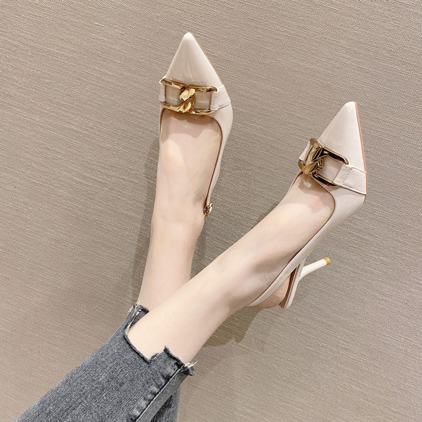 Giày cao gót kiểu dáng mũi nhọn, phần gót được thiết kế thanhai mảnh tôn dáng. Phần mu bàn chân có dây qu hở tạo cảm giác thông thoáng, phù hợp cho những ngày hè. Sản phẩm mang phong cách nhẹ nhàng, nữ tính. Khi sử dụng, bạn chỉ cần xỏ chân vào và điều chỉnh dây qu cho vừa vặn. Đôi giày giúp nâng đỡ bàn chân một cách thoải mái để bạn có thể tự tin bước đi. | Tên sản phẩm: Giày Cao Gót Nữ Mũi Nhọn Gót Nhọn Phong Cách Hàn Quốc - Giày Dép Nữ | Mã sản phẩm: L0591 - Giá: 830.000đ | Mã nhà sản xuất: HURYAN-G03Hình ảnh sản phẩm
