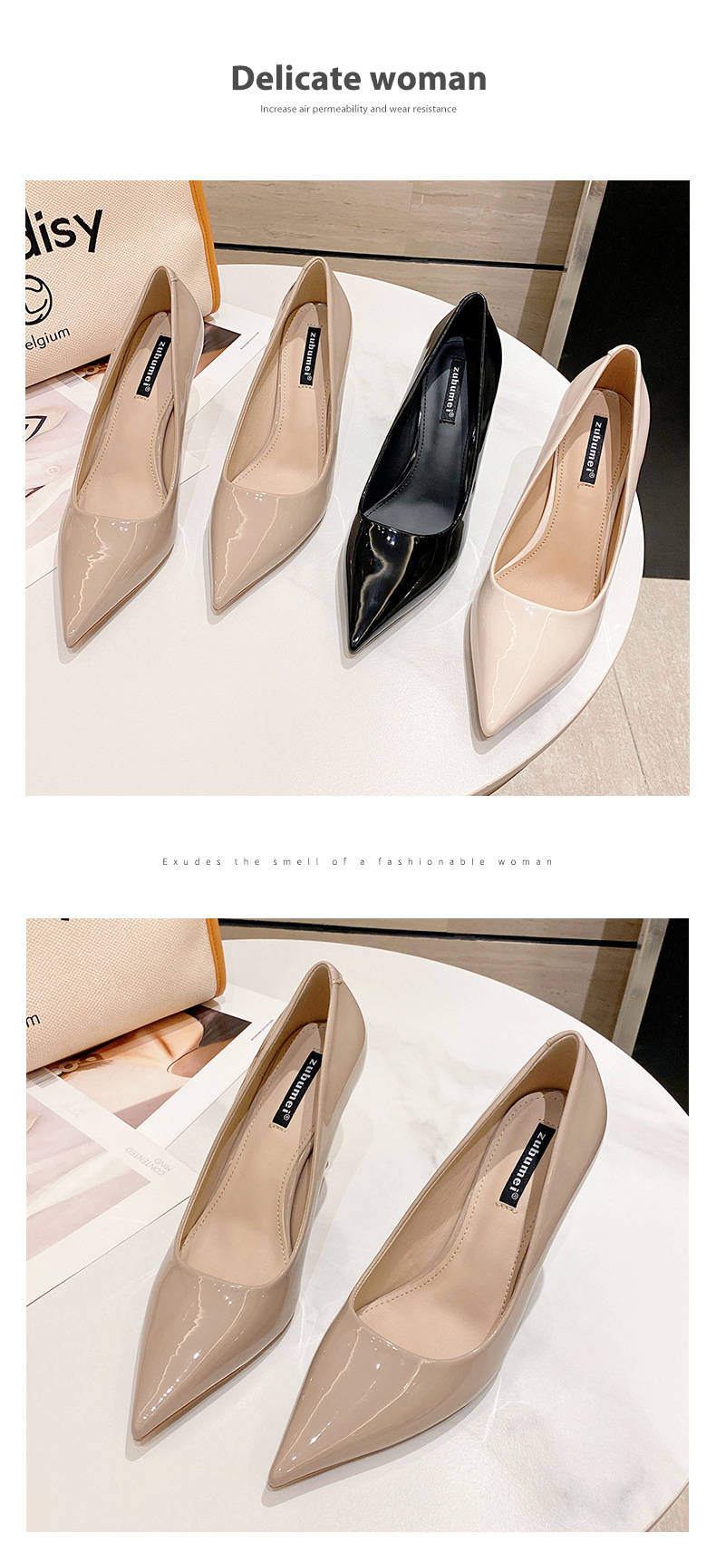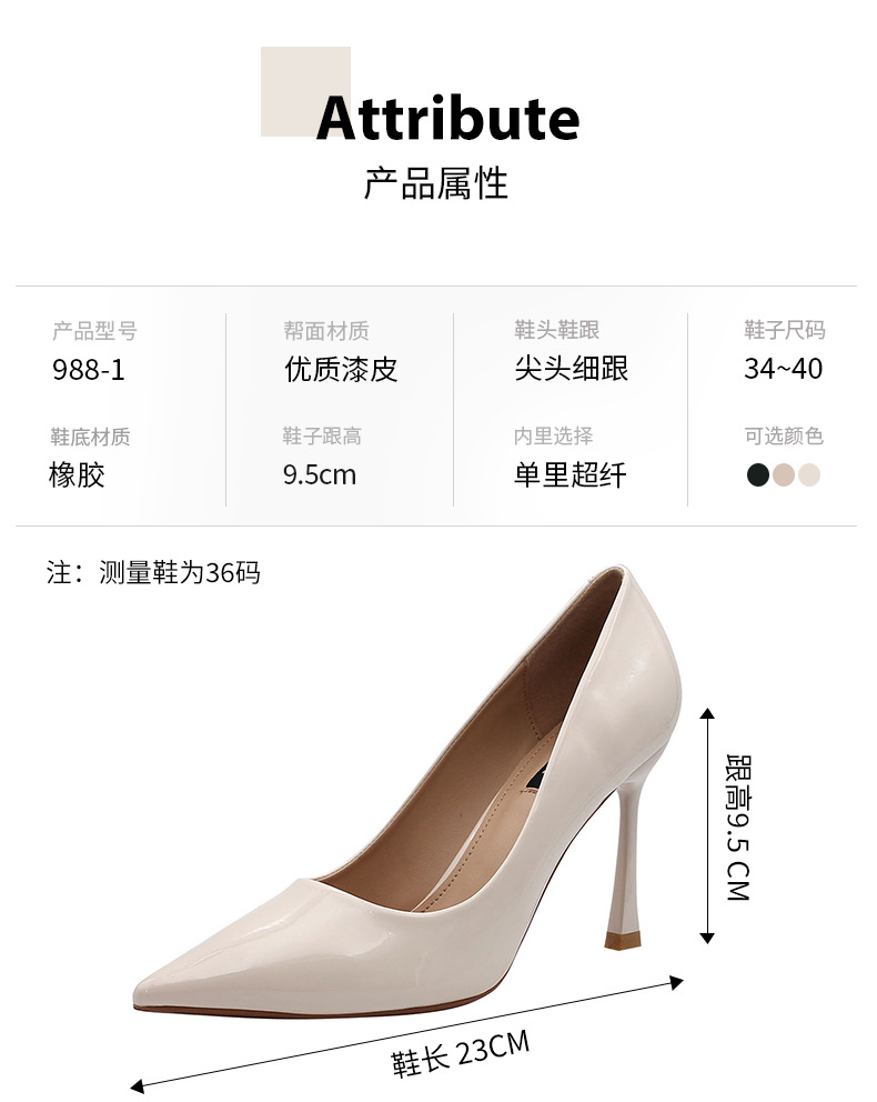 Đôi giày này có phần mũi nhọn và gót rất cao, tạo dáng thanh thoát cho người mang. Chất da bóng bện từ lớp phủ bên ngoài giúp giày dễ lau chùi và có độ bền tốt. Kiểu dáng phù hợp để đi làm, dự tiệc hoặc phối cùng nhiều trang phục khác nhau. Khi sử dụng, bạn nên chọn cỡ vừa vặn với chân và đi lại nhẹ nhàng để giữ thăng bằng tốt hơn. | Tên sản phẩm: Giày Cao Gót Nữ Mũi Nhọn Gót Nhọn - Giày Dép Nữ | Mã sản phẩm: L0595 - Giá: 790.000đ | Mã nhà sản xuất: HURYAN-G02Hình ảnh sản phẩm