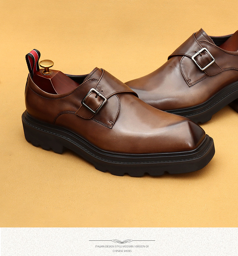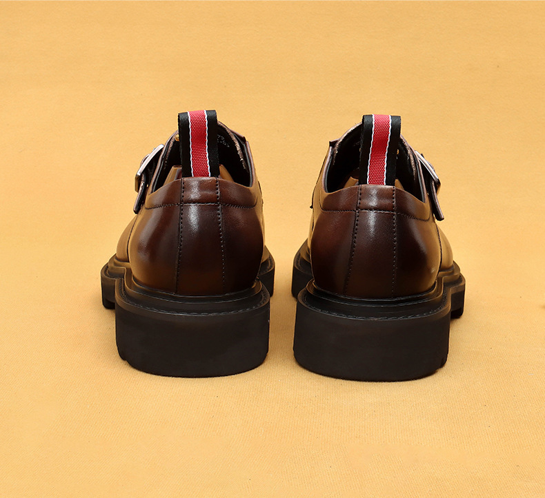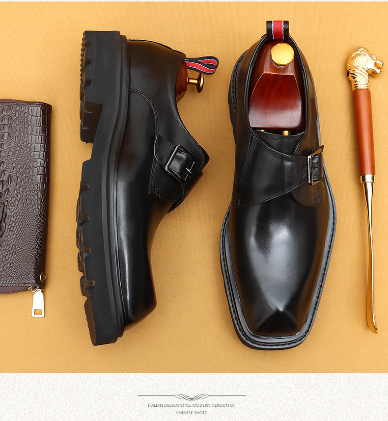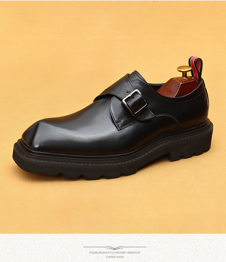 Đôi giày da nam này có phần mũi làm từ lớp da thật bền đẹp. Kiểu dáng phù hợp cho công việc và sinh hoạt thường ngày, mang phong cách Anh Quốc hiện đại. Điểm nhấn là khóa móc kim loại ở mặt bên, vừa tiện lợi vừa tạo nét cá tính. Đế giày được thiết kế có độ dày vừa phải, giúp nâng đỡ tốt và thoải mái khi di chuyển cả ngày. Dễ dàng phối cùng nhiều loại trang phục như quần âu hay quần kaki. | Tên sản phẩm: Giày Da Nam Chất Liệu Da Bò Đế Cao - Giày Dép Nam | Mã sản phẩm: L0596 - Giá: 2.360.000đ | Mã nhà sản xuất: SHERAW-G05Hình ảnh sản phẩm