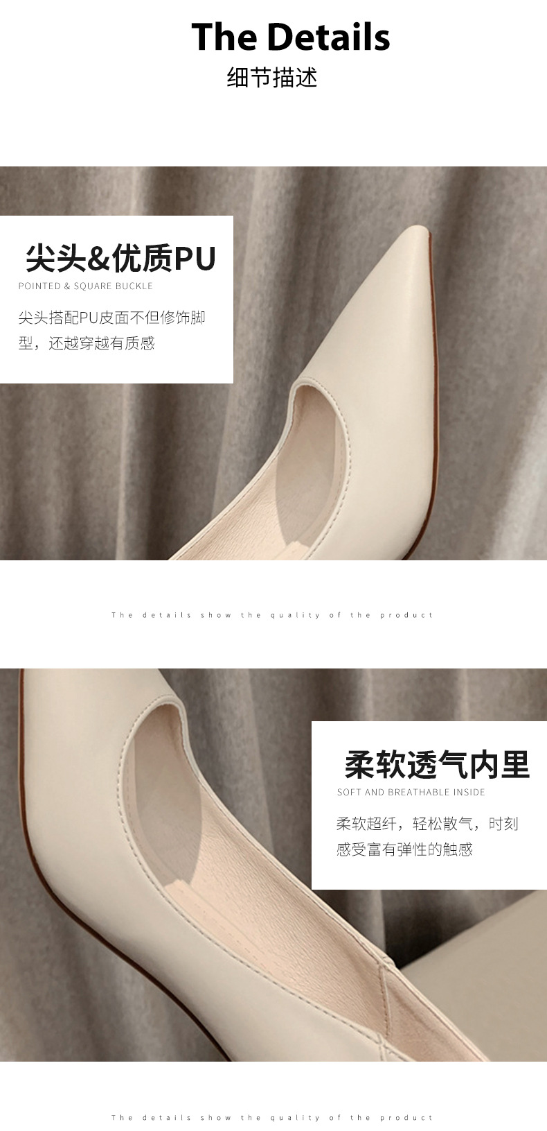 Giày cao gót nữ tính với mũi nhọn thanh lịch, được làm từ chất liệu da mềm mại mang đến sự dễ chịu khi mang. Màu sắc trung tính nhẹ nhàng dễ dàng phối cùng nhiều trang phục khác nhau. Kiểu dáng theo xu hướng mới, phù hợp để đi làm, dự tiệc hoặc tạo điểm nhấn cho các buổi gặp mặt. Bạn có thể sử dụng đôi giày này để kết hợp cùng quần âu, váy liền hoặc quần jeans. | Tên sản phẩm: Giày Cao Gót Nữ Mũi Nhọn Hàng Mùa Xuân Thu Đông Phong Cách Hàn Quốc - Giày Dép Nữ | Mã sản phẩm: L0598 - Giá: 800.000đ | Mã nhà sản xuất: HURYAN-G02Hình ảnh sản phẩm