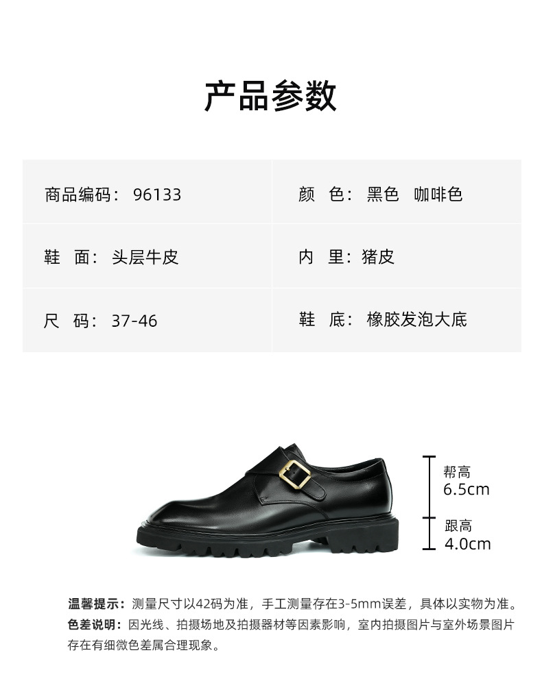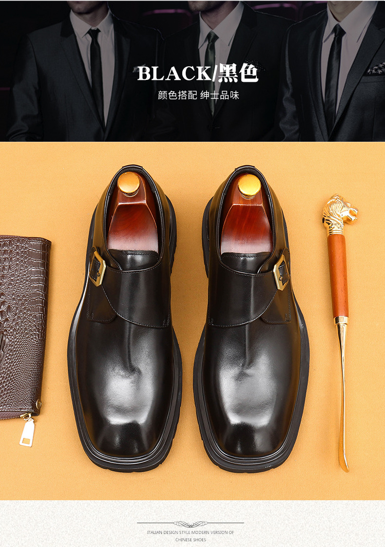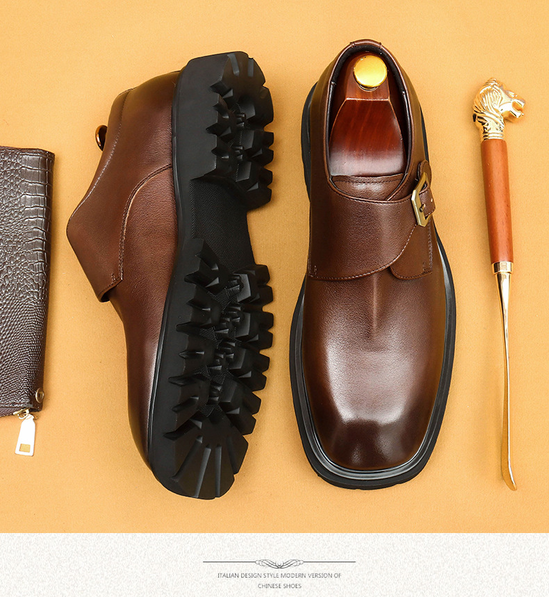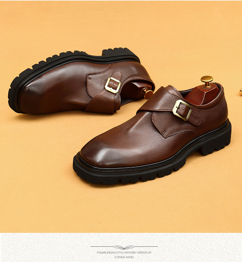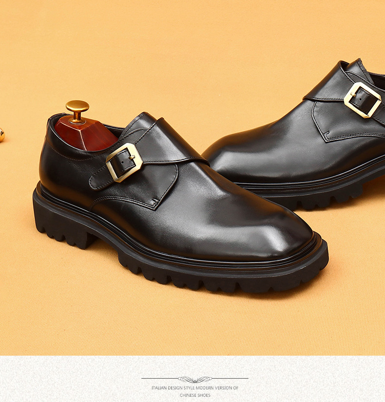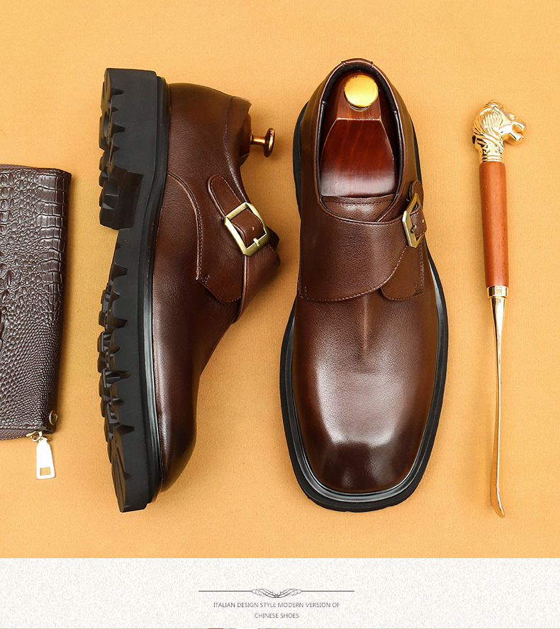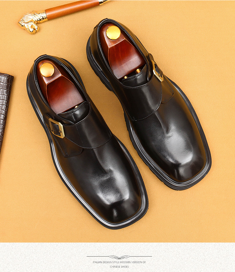 Giày da thật dành cho nam, thiết kế phần mũi vuông rộng rãi giúp ôm trọn bàn chân một cách thoải mái. Kiểu dáng kết hợp giữa nét cổ điển và hiện đại, phù hợp cho cả những dịp cần sự chỉn chu và lúc thư giãn thường ngày. Sản phẩm có quai ngang với khóa móc kim loại, tạo điểm nhấn tinh tế. Dễ dàng phối cùng nhiều loại trang phục như quần âu, quần kaki để có vẻ ngoài lịch sự. | Tên sản phẩm: Giày Da Nam Chất Liệu Da Bò - Giày Dép Nam | Mã sản phẩm: L0618 - Giá: 2.360.000đ | Mã nhà sản xuất: SHERAW-G05Hình ảnh sản phẩm