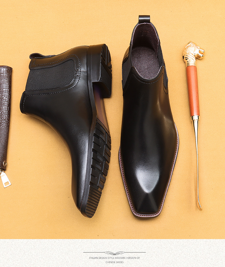 Đôi bốt da thật dành cho nam, kiểu dáng cổ điển châu Âu với mũi nhọn thanh lịch. Sản phẩm có cổ cao vừa phải, phù hợp để kết hợp cùng trang phục công sở hoặc những dịp cần sự chỉn chu. Làm từ chất liệu da thật nên mang lại cảm giác êm ái và bền bỉ theo thời gian sử dụng. Cách dùng đơn giản, chỉ cần xỏ vào và cột dây là đã có ngay vẻ ngoài lịch lãm. | Tên sản phẩm: Giày Da Nam Chất Liệu Da Bò Mũi Nhọn - Giày Dép Nam | Mã sản phẩm: L0675 - Giá: 2.730.000đ | Mã nhà sản xuất: SHERAW-G06Hình ảnh sản phẩm