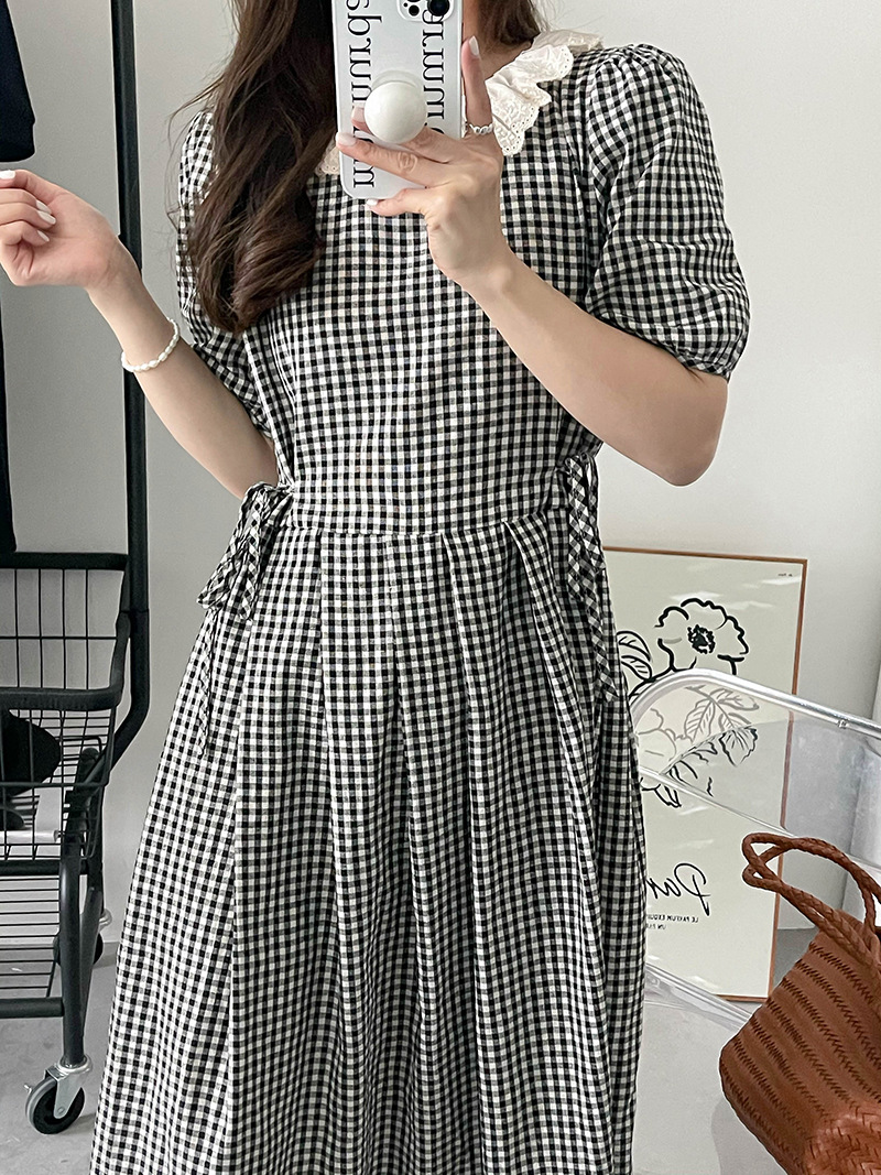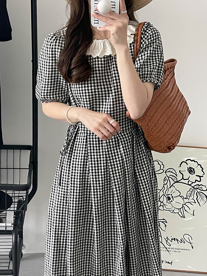 Chiếc đầm dáng dài cho mùa xuân năm nay, lấy cảm hứng từ phong cách đồng quê và nét hoài cổ. Đầm được điểm xuyết họa tiết kẻ ô cùng chi tiết ren tinh tế. Thiết kế dáng chữ A kết hợp eo thắt giúp tôn lên đường nét cơ thể một cách nhẹ nhàng. Bạn có thể mặc đầm đi dạo, dự tiệc nhẹ hoặc phối cùng giày bệt cho những ngày rong chơi. | Tên sản phẩm: Váy Đầm Liền Thân Nữ Chất Liệu Ren Dáng Chữ A Kẻ Caro Kẻ Caro Hàng Mùa Xuân Thu Đông Phục Cổ Cổ Điển - Thời Trang Nữ | Mã sản phẩm: L0681 - Giá: 880.000đ | Mã nhà sản xuất: HADUN-G03Hình ảnh sản phẩm