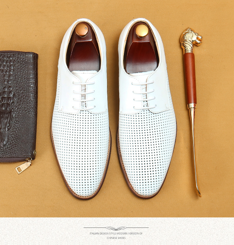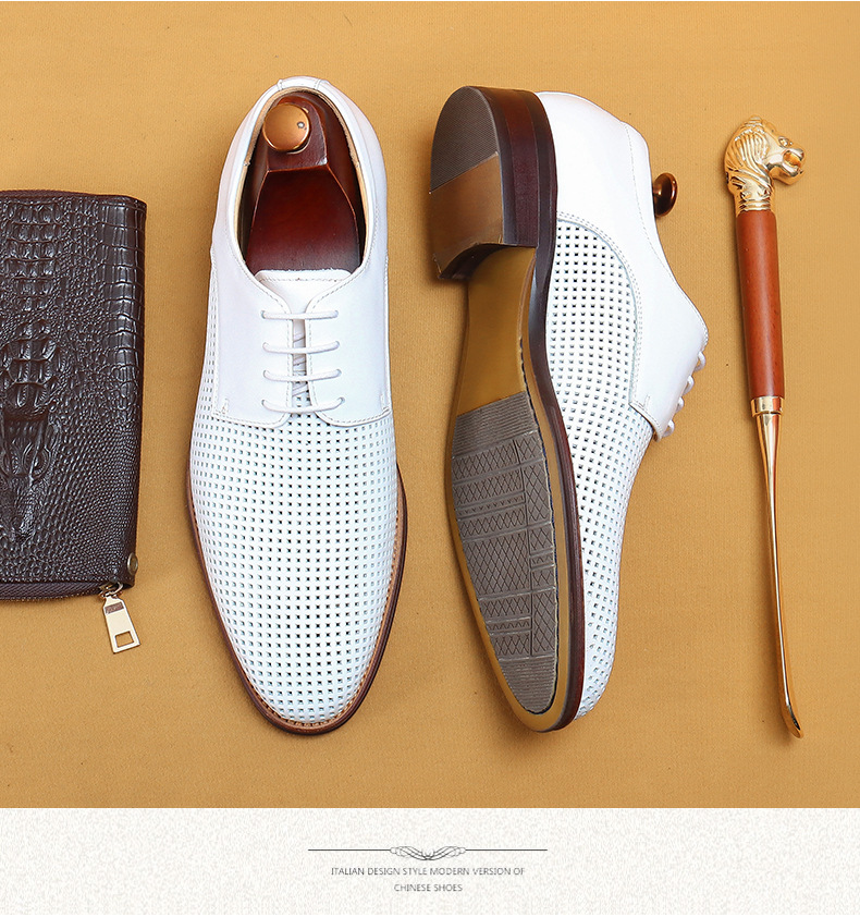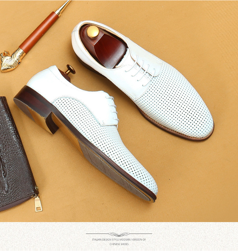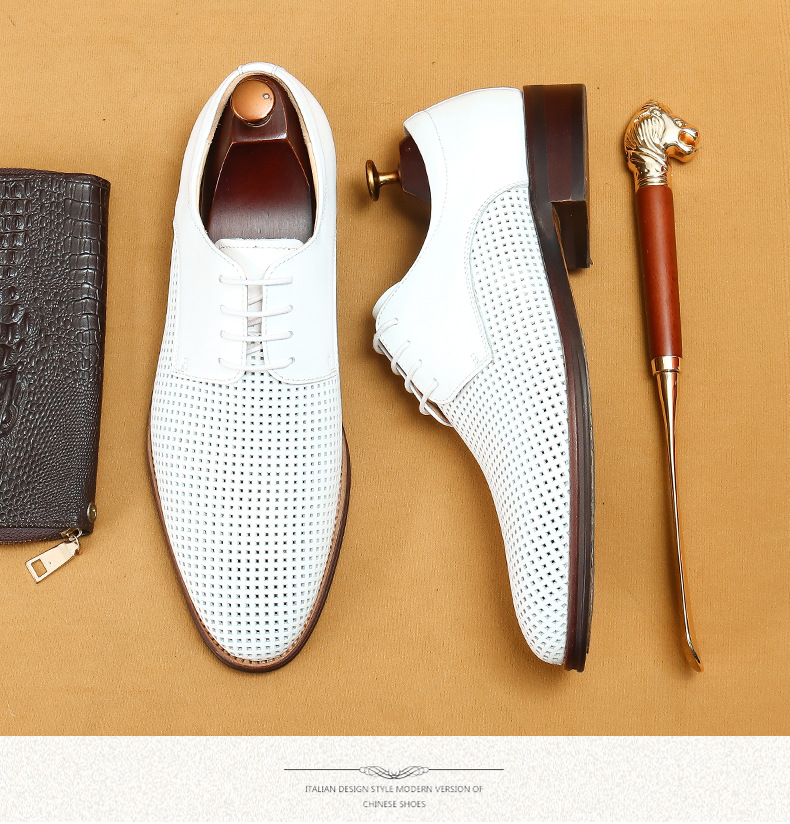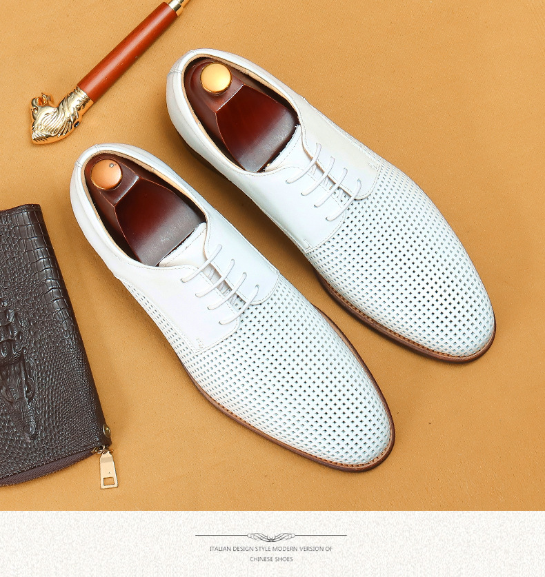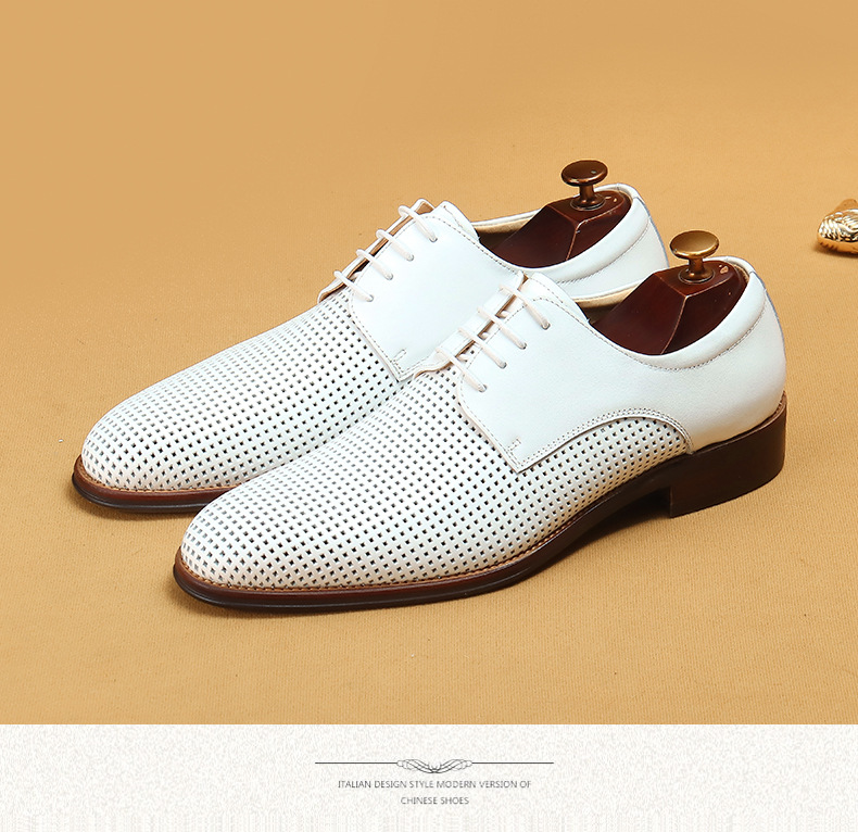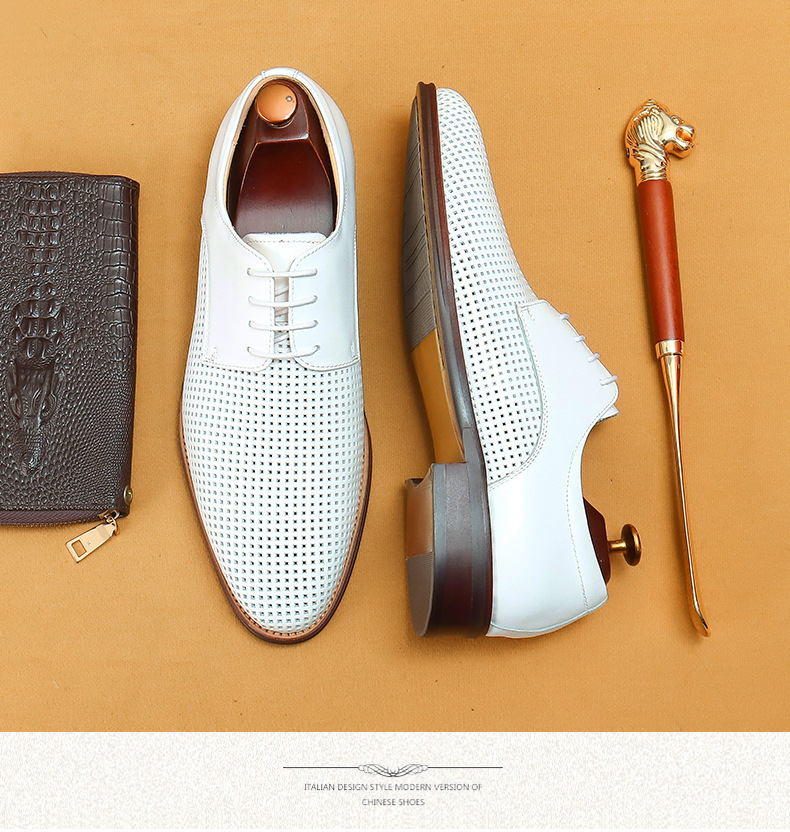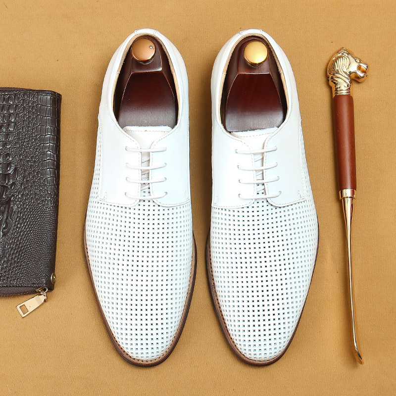 Giày tây nam thiết kế thông thoáng, phù hợp mang trong môi trường công sở hoặc dạo phố. Sản phẩm được làm từ chất liệu mềm mại, tạo cảm giác dễ chịu cho đôi chân. Các lỗ thông hơi tinh tế giúp không khí lưu thông tốt, mang lại sự mát mẻ, đặc biệt vào mùa hè. Bạn có thể kết hợp giày cùng quần âu và áo sơ mi để có vẻ ngoài chỉn chu. | Tên sản phẩm: Giày Da Nam Chất Liệu Da Bò Thoáng Khí Hàng Mùa Hè - Giày Dép Nam | Mã sản phẩm: L0706 - Giá: 2.260.000đ | Mã nhà sản xuất: SHERAW-G05Hình ảnh sản phẩm