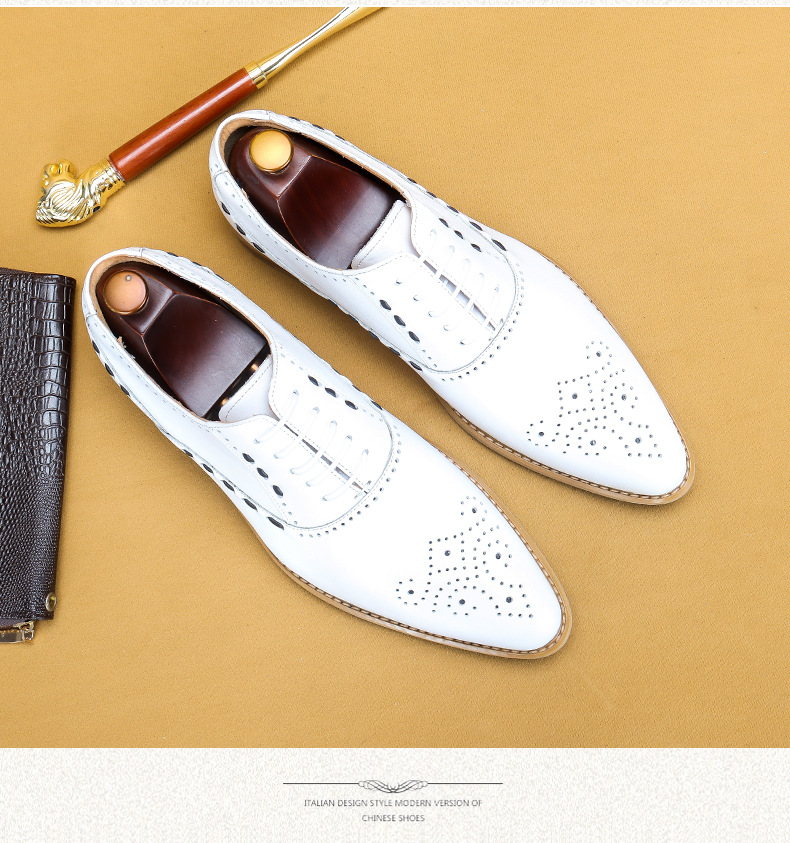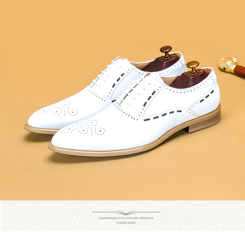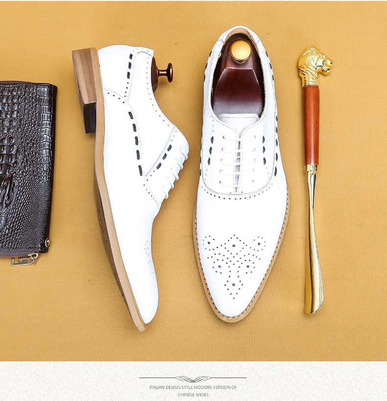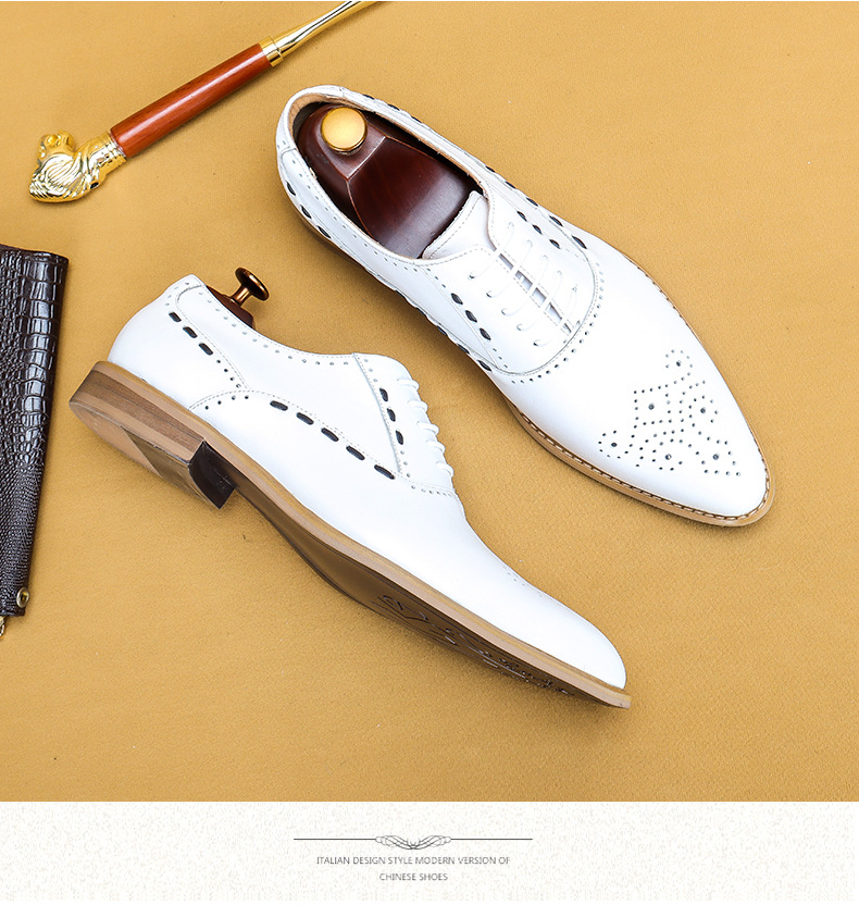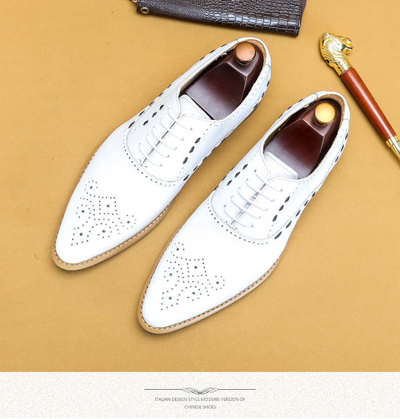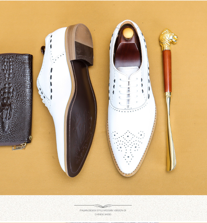 Giày da nam thiết kế dáng mũi nhọn, phù hợp cho môi trường công sở hoặc các sự kiện quan trọng. Sản phẩm được làm từ chất liệu da bò tự nhiên, mang lại độ bền và cảm giác êm ái khi mang. Kiểu dáng Oxford cổ điển kết hợp đường may tinh tế, tạo vẻ lịch sự. Sử dụng cùng bộ trang phục công sở hoặc vest trong những dịp cần sự chỉn chu. Vệ sinh bề mặt bằng khăn mềm ẩm để giữ giày luôn sạch đẹp. | Tên sản phẩm: Giày Da Nam Chất Liệu Da Bò Mũi Nhọn Dùng Trong Lễ Cưới - Giày Dép Nam | Mã sản phẩm: L0715 - Giá: 2.120.000đ | Mã nhà sản xuất: SHERAW-G05Hình ảnh sản phẩm