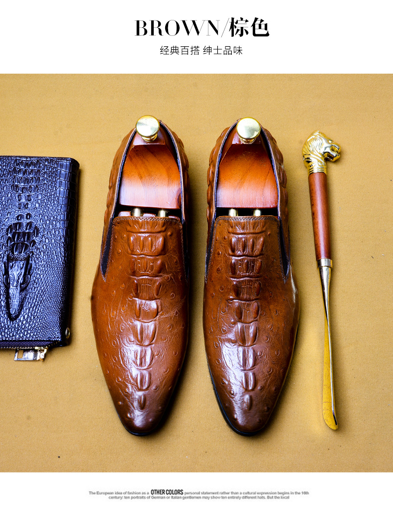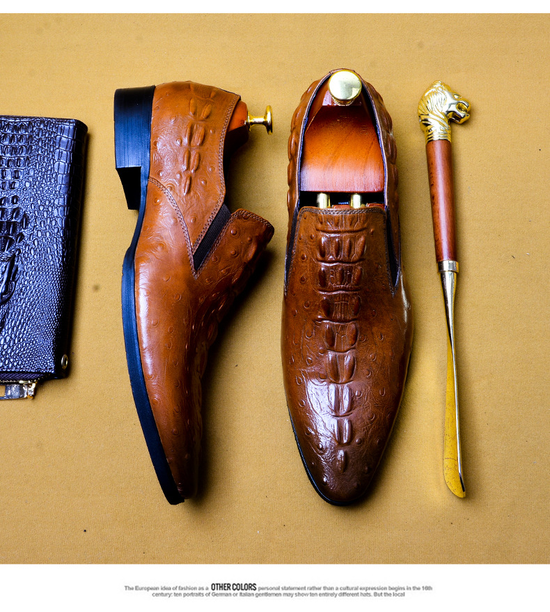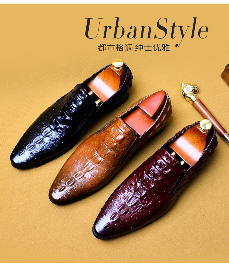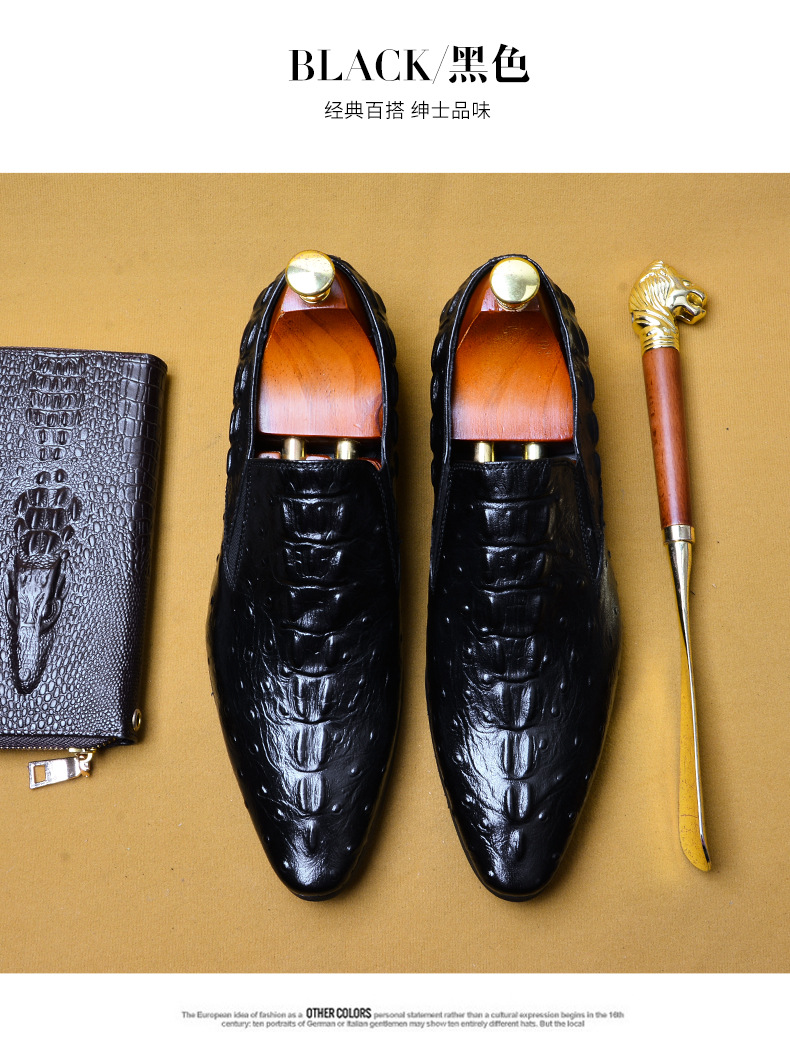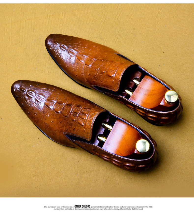 Giày tây nam thiết kế thời thượng với phần mũi nhọn thanh lịch, phù hợp cho cả công sở và những dịp thoải mái. Sản phẩm được làm từ chất liệu da thật, bề mặt có họa tiết vân cá sấu tạo điểm nhấn ấn tượng. Đặc biệt, giày có cấu trúc thoáng khí, giúp đôi chân luôn dễ chịu khi mang trong thời gian dài. Bạn có thể kết hợp cùng quần âu hoặc quần kaki để có một diện mạo chỉn chu. | Tên sản phẩm: Giày Da Nam Chất Liệu Da Bò Vân Da Cá Sấu Mũi Nhọn Thoáng Khí - Giày Dép Nam | Mã sản phẩm: L0733 - Giá: 2.070.000đ | Mã nhà sản xuất: SHERAW-G05Hình ảnh sản phẩm