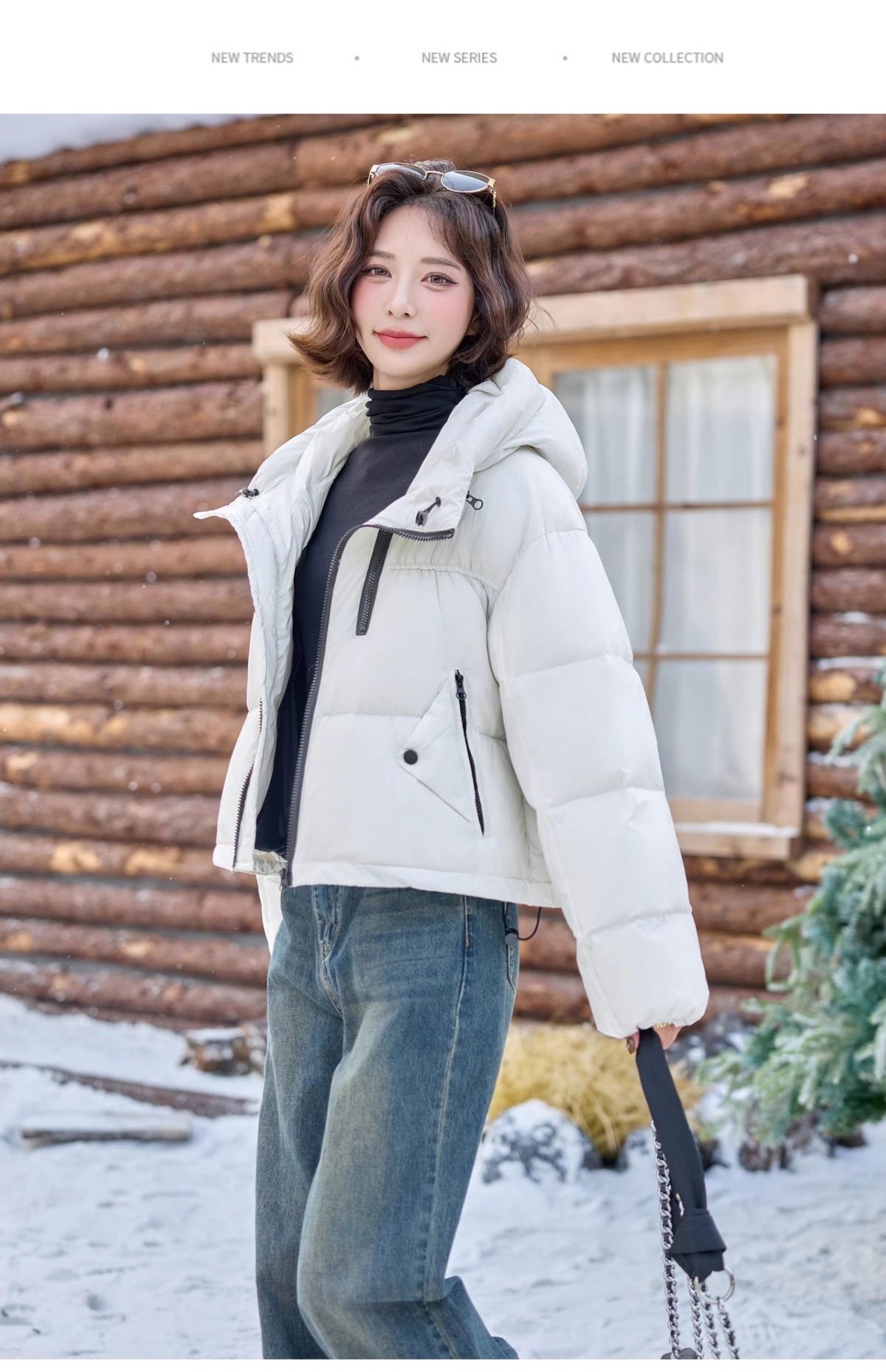 Áo khoác dáng ngắn dành cho mùa đông, có mũ trùm tiện lợi. Sản phẩm được lót bằng lớp lông vũ mềm mại, giữ ấm tốt cho những ngày trời lạnh. Kiểu dáng hơi phồng nhẹ trẻ trung, dễ dàng kết hợp với nhiều loại trang phục khác nhau. Chỉ cần mặc bên ngoài áo thun hoặc áo len là bạn đã có một bộ đồ ấm áp và thoải mái để đi học hay dạo phố. | Tên sản phẩm: Áo Khoác Nữ Mũ Liền Dày Ấm Hàng Mùa Xuân Thu Đông - Thời Trang Nữ | Mã sản phẩm: L0745 - Giá: 3.690.000đ | Mã nhà sản xuất: HADA-G06Hình ảnh sản phẩm