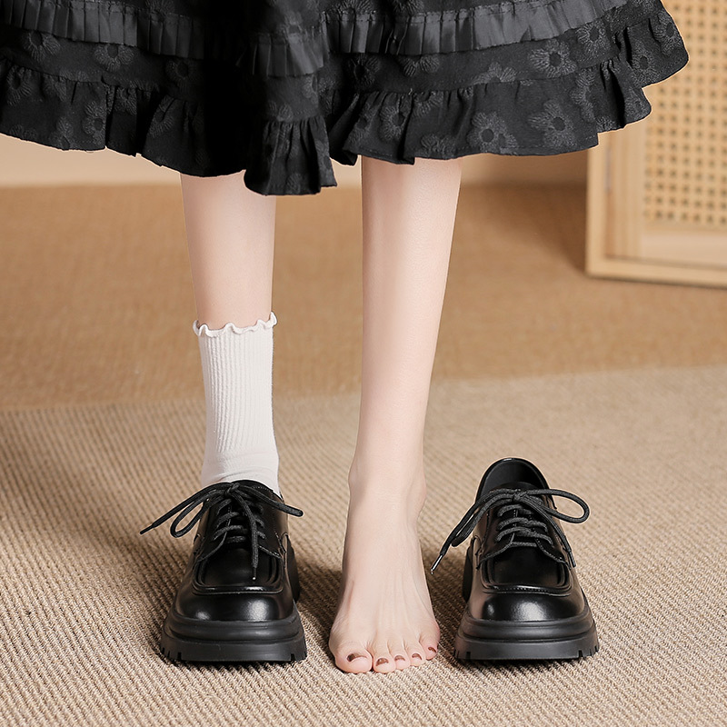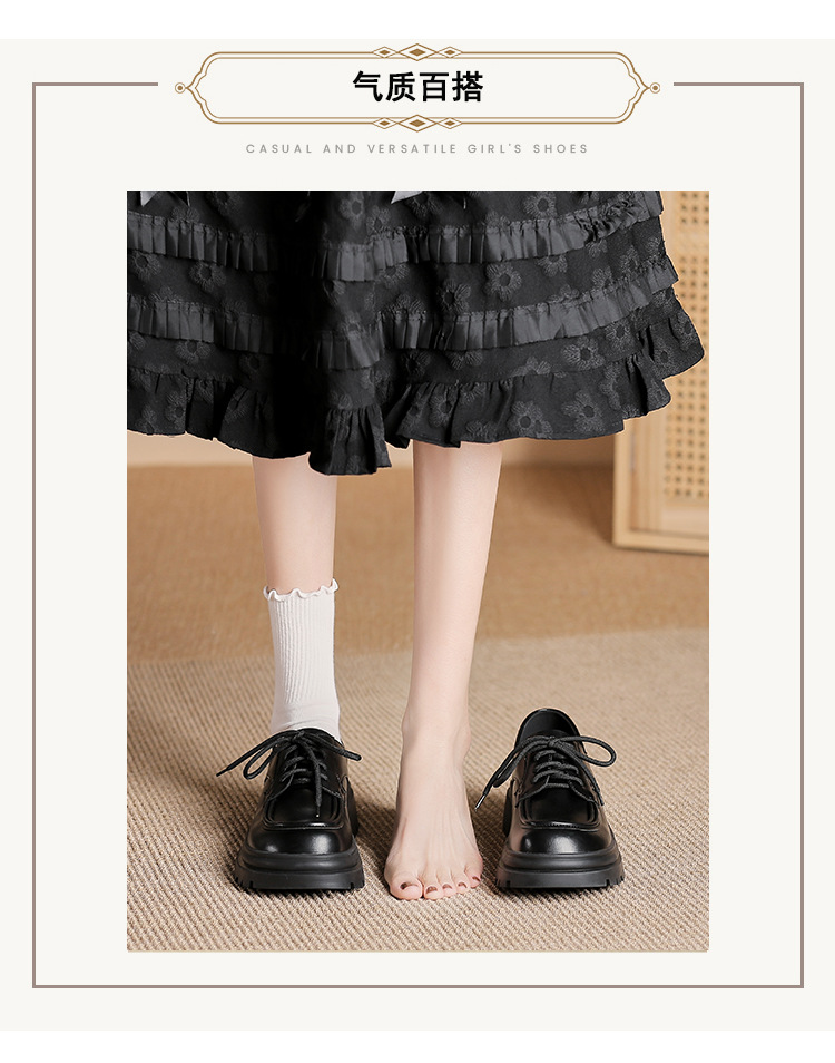Đôi giày da này có phần đế dày tạo dáng cân đối và dễ phối đồ. Phong cách thiết kế mang hơi hướng cổ điển, thanh lịch, phù hợp cho các bạn gái đến trường hoặc đi chơi. Sản phẩm có dây buộc giúp ôm chân vừa vặn và thoải mái. Bạn có thể kết hợp cùng tất ngắn hoặc váy để tạo nên vẻ ngoại hình trẻ trung, năng động. Đây là mẫu giày tiện dụng cho những ngày xuân ấm áp. | Tên sản phẩm: Giày Da Nữ Đế Cao Hàng Mùa Xuân Thu Đông Phục Cổ Cổ Điển - Giày Dép Nữ | Mã sản phẩm: L0768 - Giá: 840.000đ | Mã nhà sản xuất: XITYDA-G03Hình ảnh sản phẩm