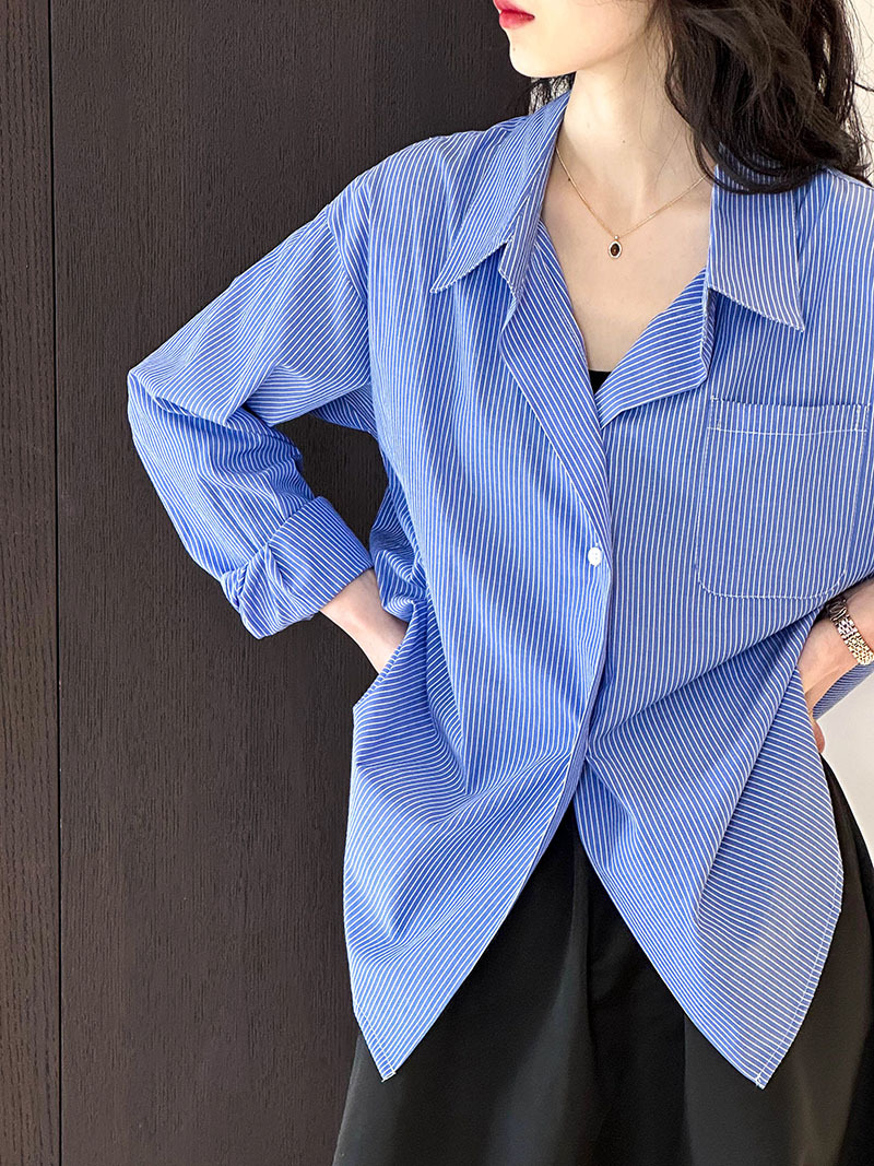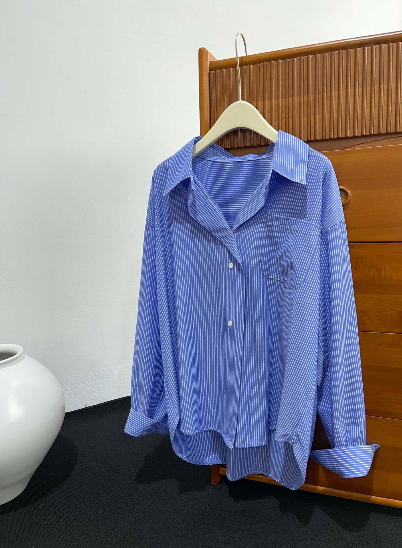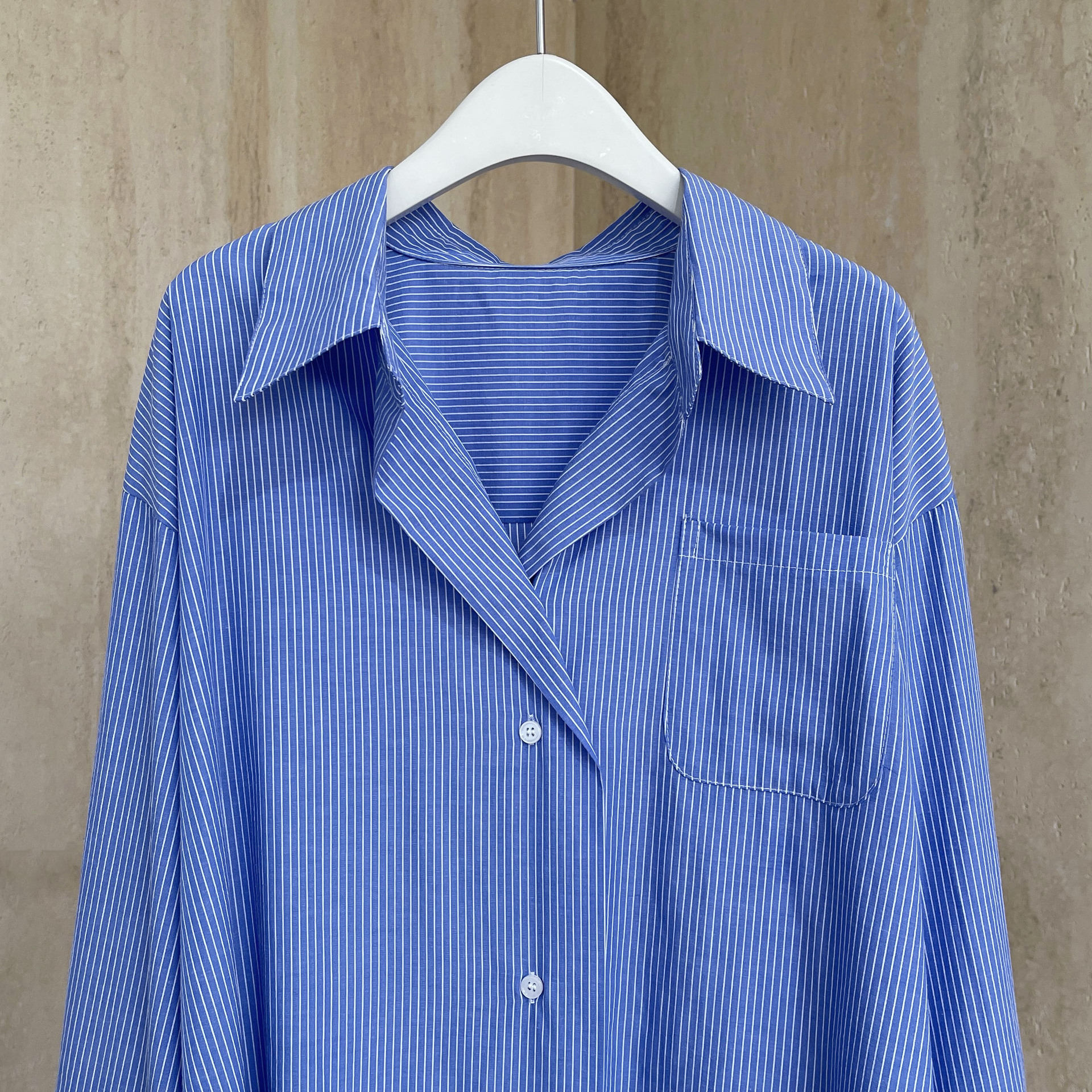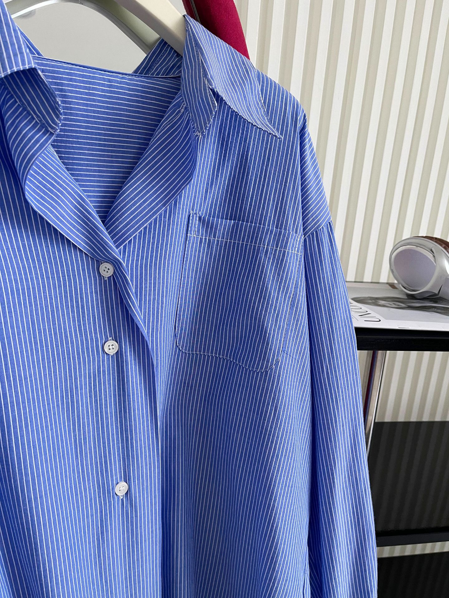 Áo sơ mi dáng rộng với họa tiết sọc xanh, lấy cảm hứng từ phong cách trẻ trung. Chất vải mềm mại, thoáng mát, thích hợp mặc trong tiết trời ấm áp. Thiết kế cổ điển, form áo thoải mái tôn vinh vẻ đẹp dịu dàng. Có thể phối cùng quần jeans hoặc chân váy để tạo nên những bộ trang phục hàng ngày. Một món đồ dễ dàng phối hợp, mang đến sự tự tin và năng động cho người mặc. | Tên sản phẩm: Áo Sơ Mi Nữ Hàng Mùa Xuân Thu Đông - Thời Trang Nữ | Mã sản phẩm: L0789 - Giá: 720.000đ | Mã nhà sản xuất: HADUN-G02Hình ảnh sản phẩm