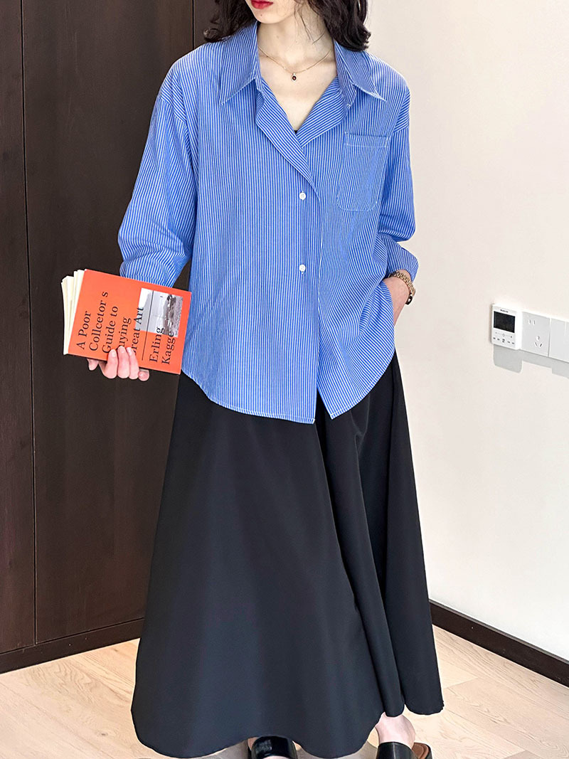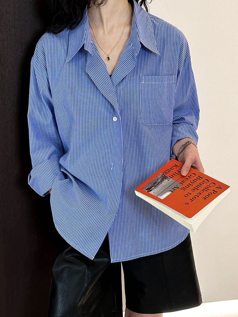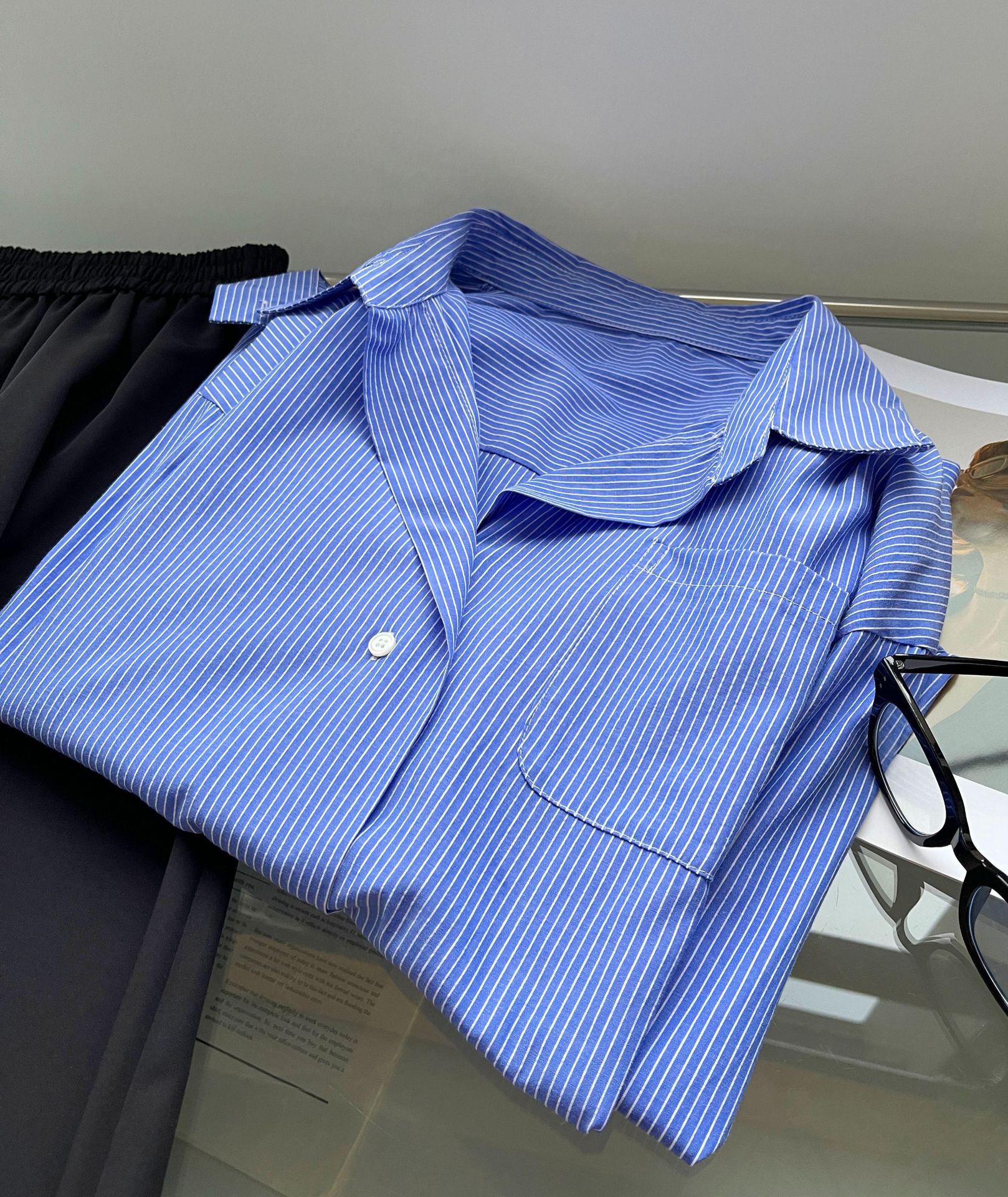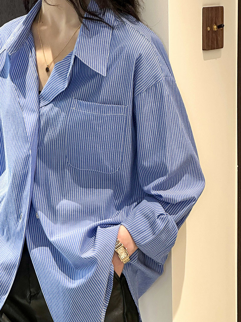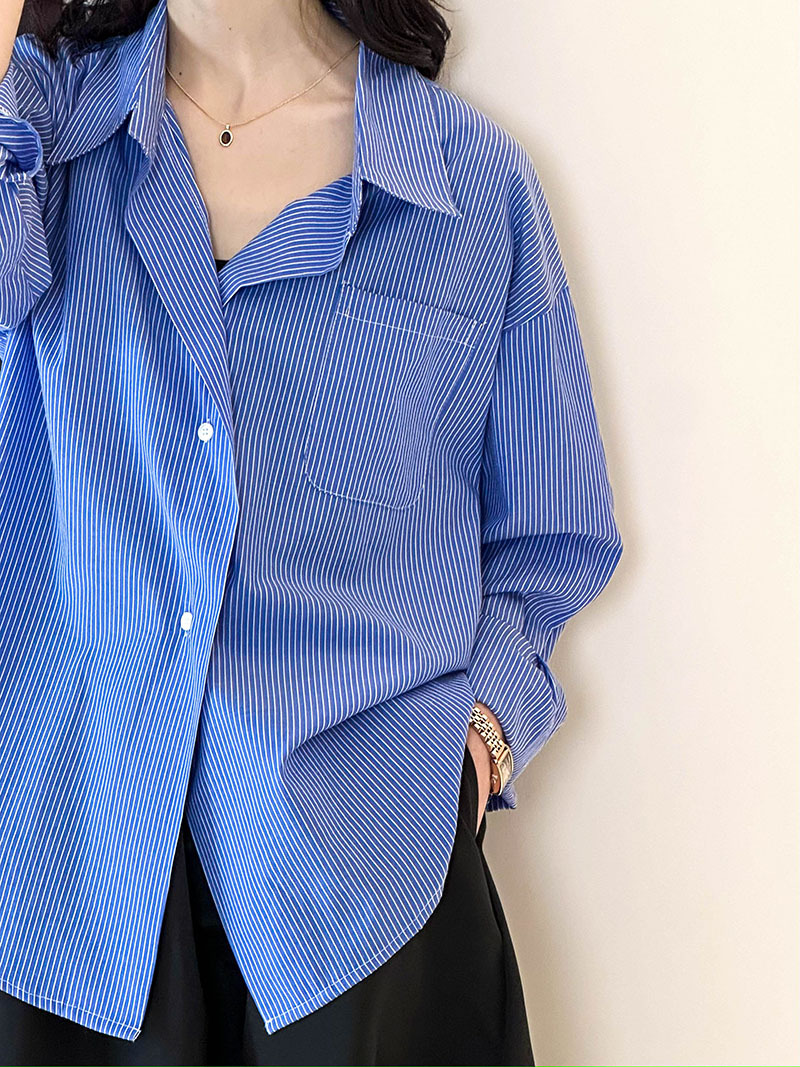 Áo sơ mi dáng rộng với họa tiết sọc xanh, lấy cảm hứng từ phong cách trẻ trung. Chất vải mềm mại, thoáng mát, thích hợp mặc trong tiết trời ấm áp. Thiết kế cổ điển, form áo thoải mái tôn vinh vẻ đẹp dịu dàng. Có thể phối cùng quần jeans hoặc chân váy để tạo nên những bộ trang phục hàng ngày. Một món đồ dễ dàng phối hợp, mang đến sự tự tin và năng động cho người mặc. | Tên sản phẩm: Áo Sơ Mi Nữ Hàng Mùa Xuân Thu Đông - Thời Trang Nữ | Mã sản phẩm: L0789 - Giá: 720.000đ | Mã nhà sản xuất: HADUN-G02Hình ảnh sản phẩm