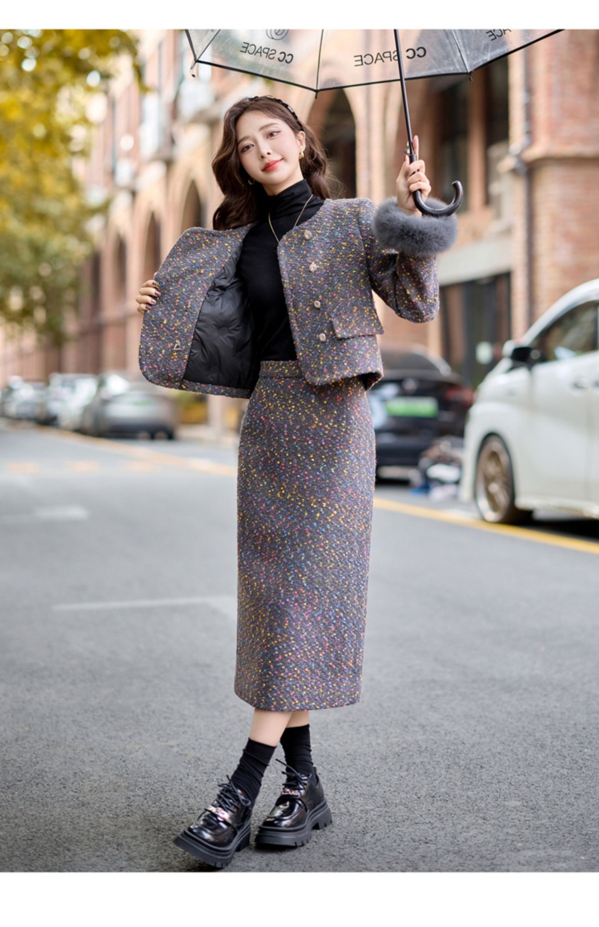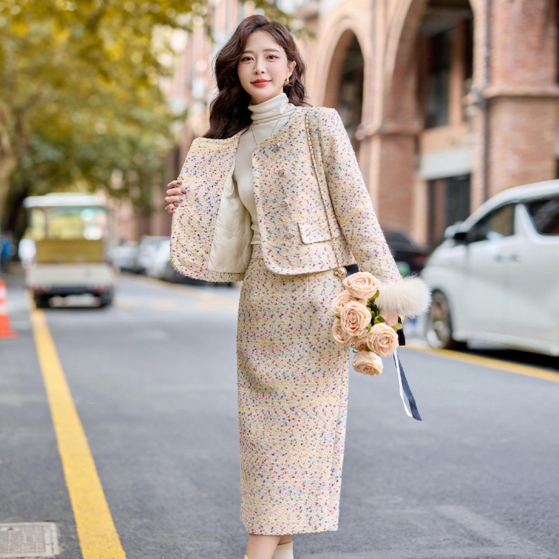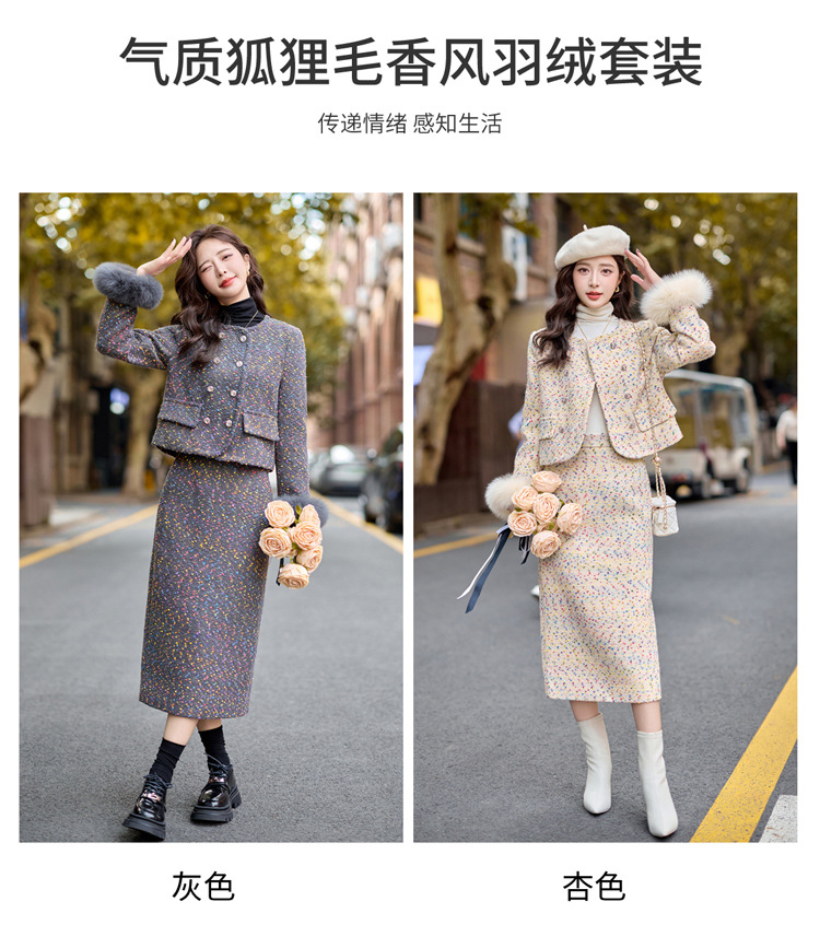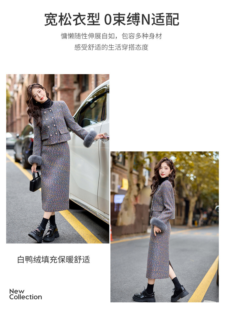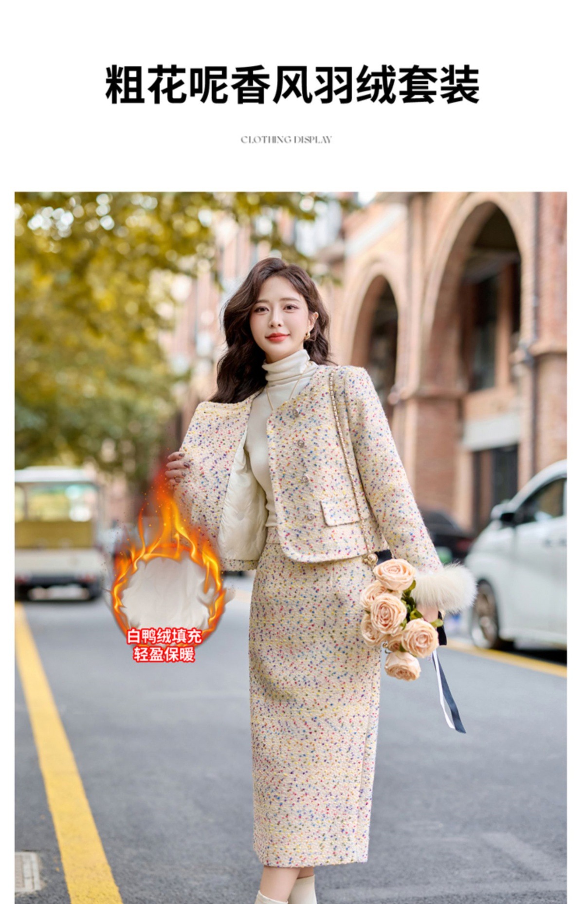 Bộ trang phục đầm và áo khoác mỏng nhẹ này là lựa chọn lý tưởng cho mùa đông. Thiết kế dạng bộ mang đến vẻ chỉn chu, gọn gàng. Bên trong là lớp lông vũ trắng của vịt giúp giữ ấm cơ thể một cách hiệu quả mà không gây cảm giác nặng nề. Bạn có thể mặc nguyên bộ để tạo phong cách đồng bộ, hoặc phối áo khoác với quần jeans cho những dịp thường ngày. Chất liệu mềm mại mang lại sự thoải mái cho cả ngày dài. | Tên sản phẩm: Đồ Bộ Nữ Hàng Mùa Xuân Thu Đông - Thời Trang Nữ | Mã sản phẩm: L0790 - Giá: 4.210.000đ | Mã nhà sản xuất: HADA-G06Hình ảnh sản phẩm