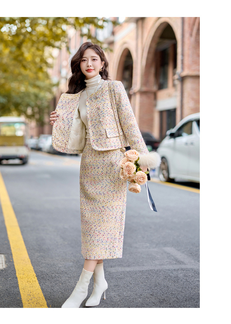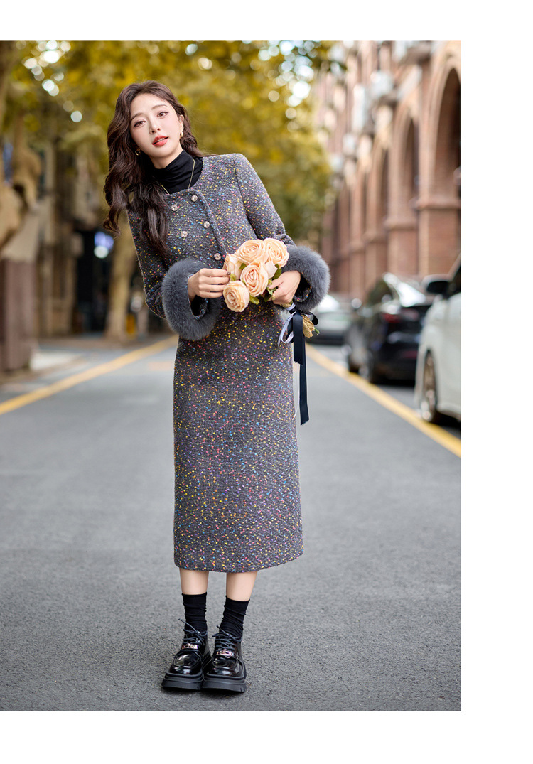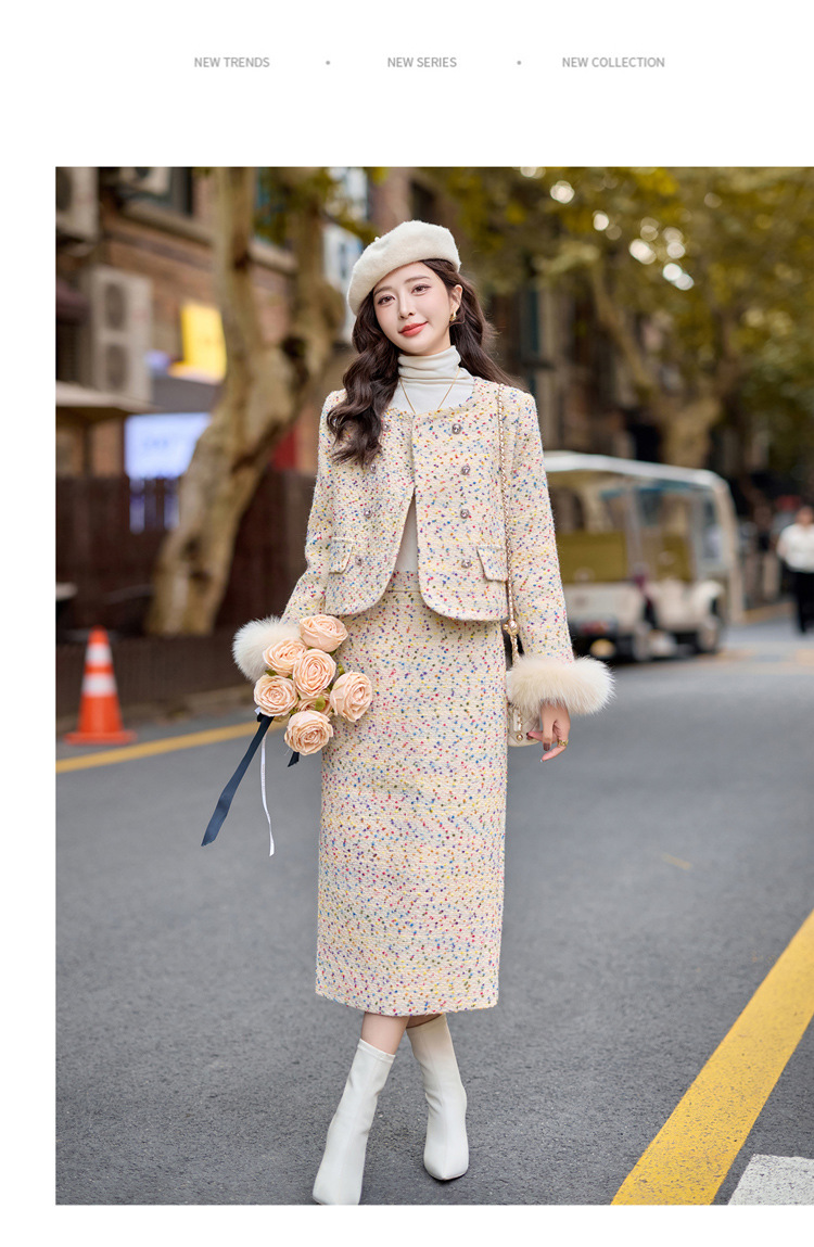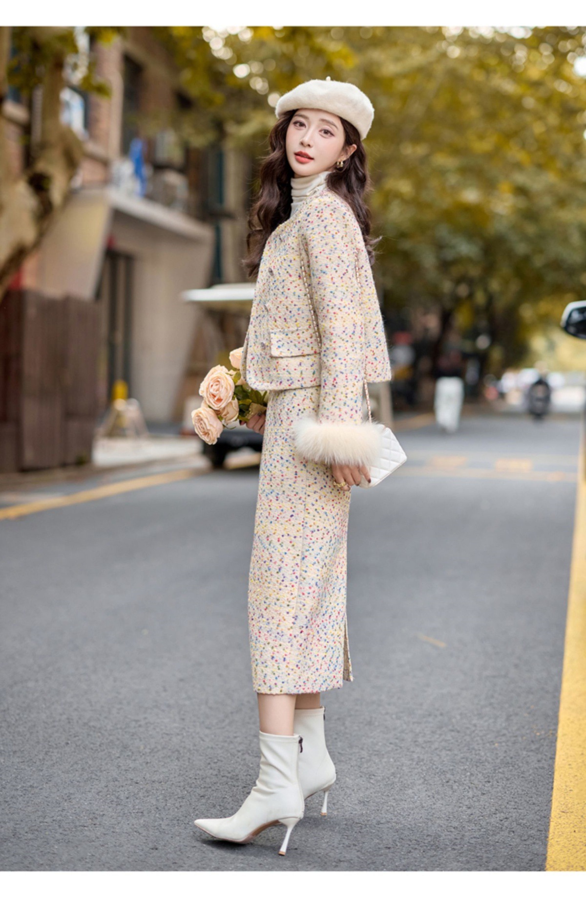 Bộ trang phục đầm và áo khoác mỏng nhẹ này là lựa chọn lý tưởng cho mùa đông. Thiết kế dạng bộ mang đến vẻ chỉn chu, gọn gàng. Bên trong là lớp lông vũ trắng của vịt giúp giữ ấm cơ thể một cách hiệu quả mà không gây cảm giác nặng nề. Bạn có thể mặc nguyên bộ để tạo phong cách đồng bộ, hoặc phối áo khoác với quần jeans cho những dịp thường ngày. Chất liệu mềm mại mang lại sự thoải mái cho cả ngày dài. | Tên sản phẩm: Đồ Bộ Nữ Hàng Mùa Xuân Thu Đông - Thời Trang Nữ | Mã sản phẩm: L0790 - Giá: 4.210.000đ | Mã nhà sản xuất: HADA-G06Hình ảnh sản phẩm