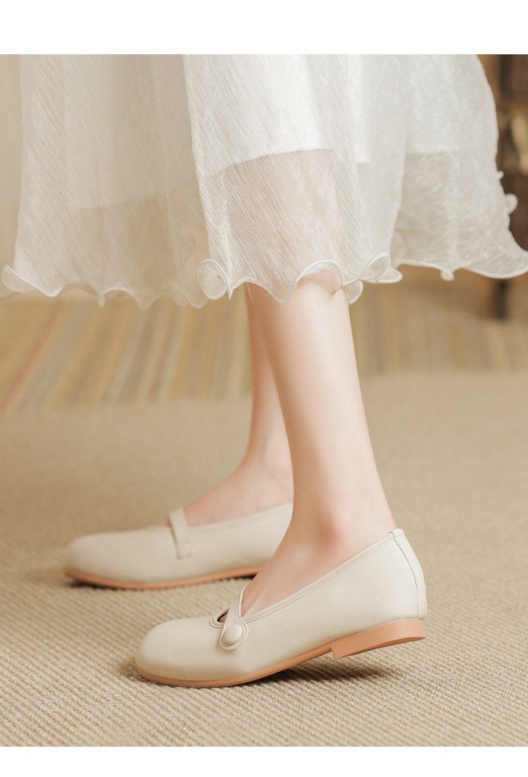 Đôi giày này mang phong cách cổ điển nhẹ nhàng. Chất liệu da mềm mại cùng đế bằng phẳng ôm sát chân, mang lại cảm giác dễ chịu khi mang cả ngày. Kiểu dáng thanh lịch với dây cài phía trước, phù hợp để kết hợp cùng nhiều loại trang phục khác nhau. Bạn chỉ cần xỏ chân vào và cài qu là đã có ngay vẻ ngoài chỉn chu. Màu sắc trung tính dễ phối đồ, dùng được trong nhiều dịp khác nhau. | Tên sản phẩm: Giày Da Nữ Chất Liệu Da Bò Đế Mềm Hàng Mùa Hè Phục Cổ Cổ Điển - Giày Dép Nữ | Mã sản phẩm: L0808 - Giá: 610.000đ | Mã nhà sản xuất: XITYDA-G02Hình ảnh sản phẩm