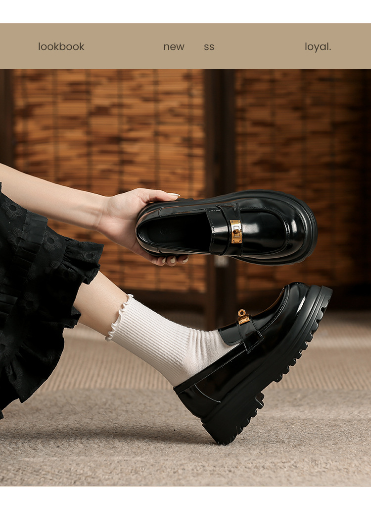 Giày da dành cho nữ, phong cách Anh cổ điển. Mẫu giày bệt thiết kế đế dày vừa phải, ôm chân thoải mái. Kiểu dáng lười thời trang, dễ dàng phối cùng nhiều trang phục như quần âu, váy liền. Sử dụng màu đen dễ tính, phù hợp đi làm, đi chơi hay dự tiệc. Chỉ cần xỏ vào là có thể bước đi, rất tiện lợi và nhanh gọn. Đôi giàn giúp bạn tự tin suốt ngày dài. | Tên sản phẩm: Giày Da Nữ Đế Cao Hàng Mùa Xuân Thu Đông - Giày Dép Nữ | Mã sản phẩm: L0812 - Giá: 720.000đ | Mã nhà sản xuất: XITYDA-G02Hình ảnh sản phẩm