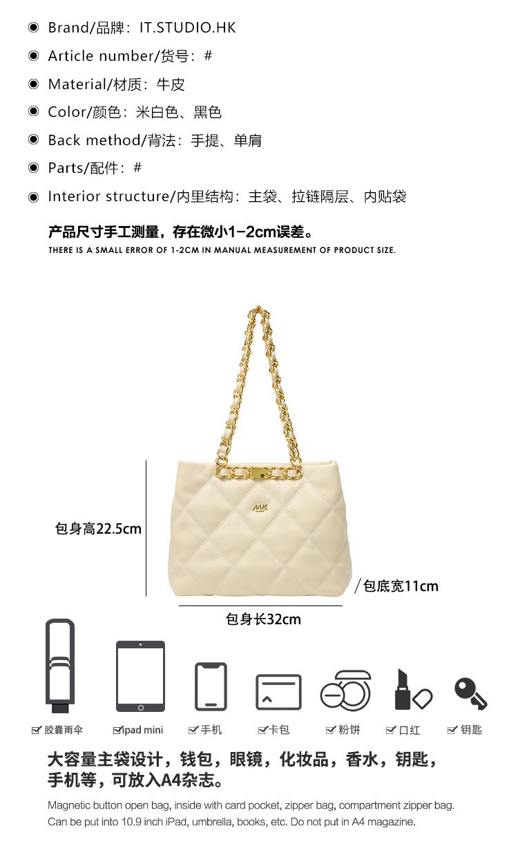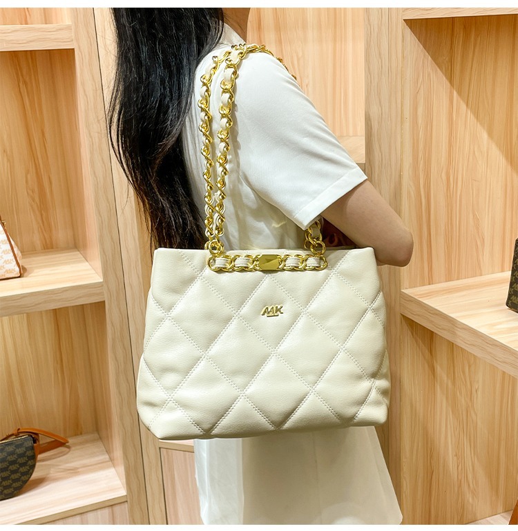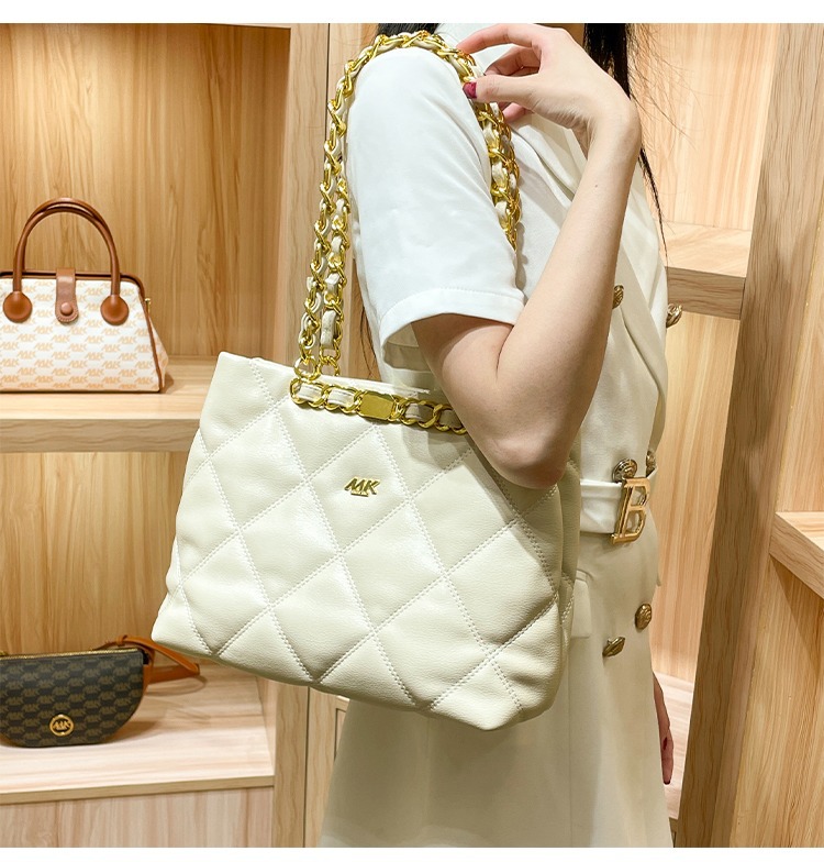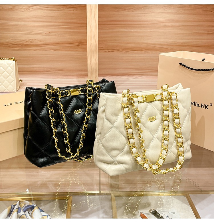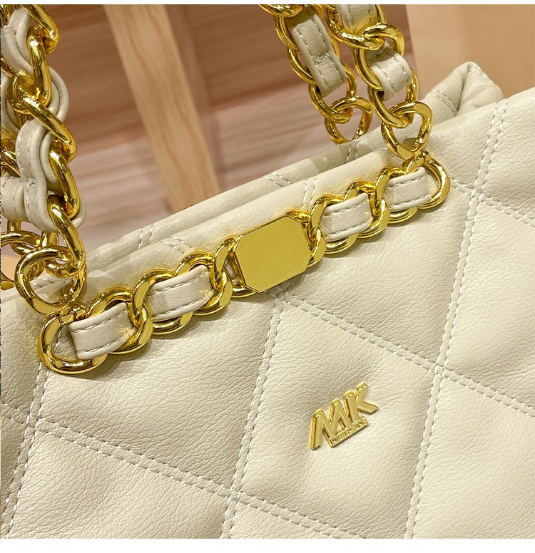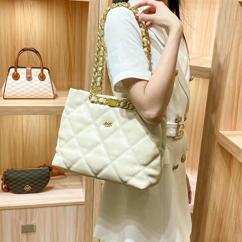 Túi xách tay dành cho nữ, kiểu dáng mới năm 2024. Sản phẩm được làm từ chất liệu da thật, phối các đường ghép hình thoi tinh tế. Dây đeo chuỗi vòng kim loại giúp bạn có thể đeo làm túi đeo chéo hoặc xách tay một cách linh hoạt. Thiết kế túi dạng đáy rộng giúp chứa được nhiều vật dụng cá nhân cần thiết mỗi khi ra ngoài. Phù hợp để sử dụng trong nhiều dịp khác nhau. | Tên sản phẩm: Túi Xách Nữ Chất Liệu Da Bò Kẻ Caro Kẻ Caro - Túi Ví Nữ | Mã sản phẩm: L0832 - Giá: 1.520.000đ | Mã nhà sản xuất: GUDHE-G04Hình ảnh sản phẩm