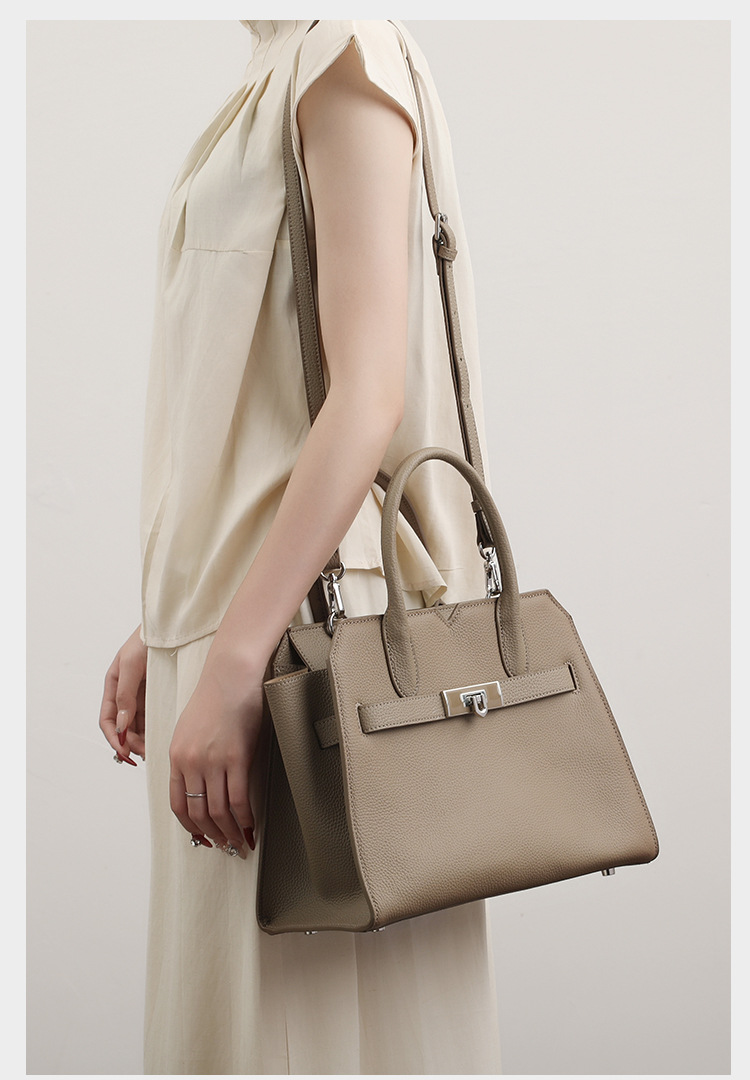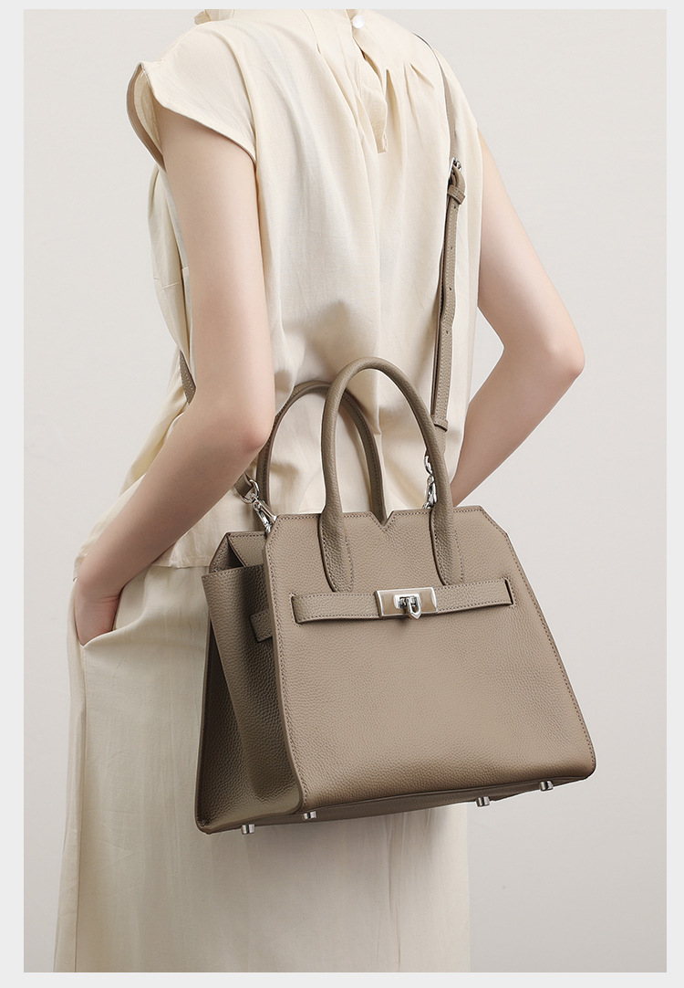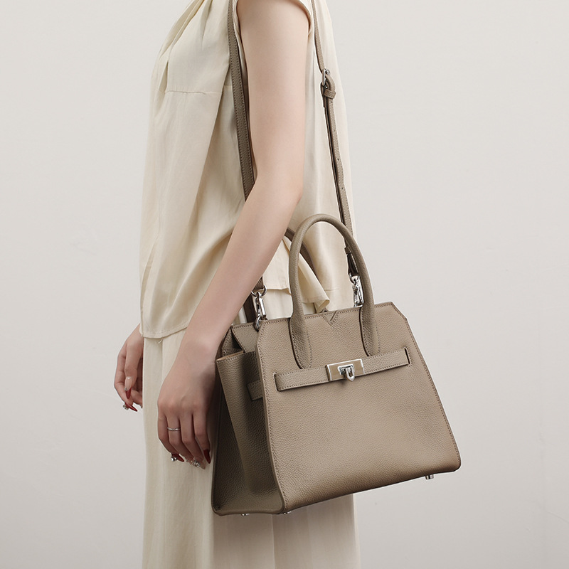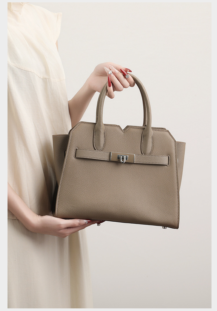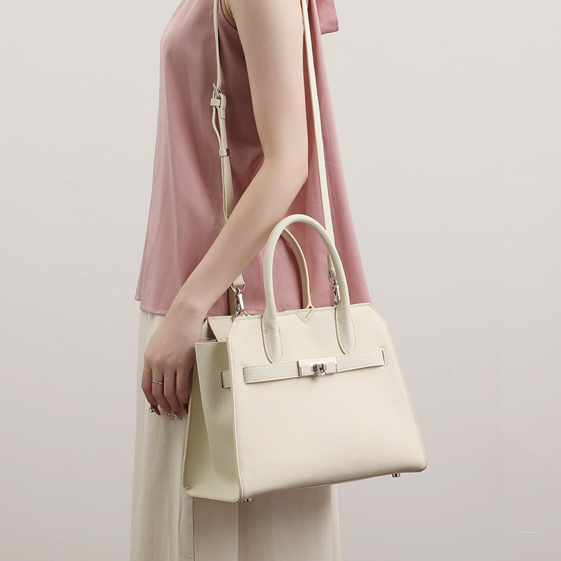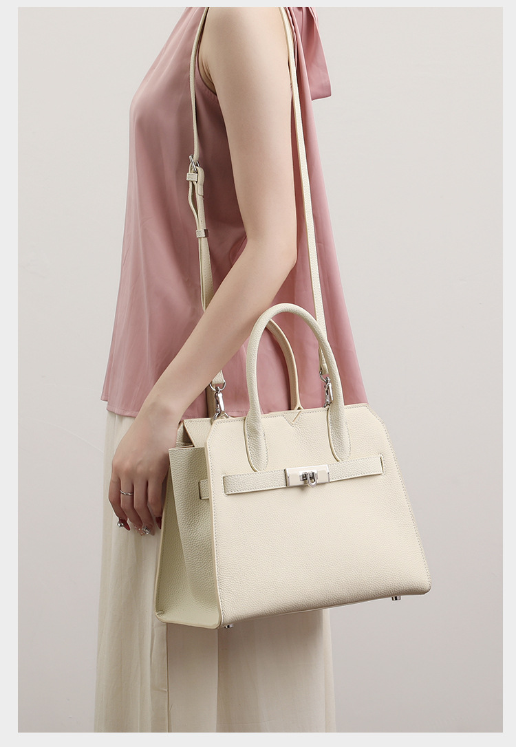 Túi xách dành cho nữ, được làm từ chất liệu da thật tự nhiên với bề mặt vân giống trái vải. Kiểu dáng thiết kế thanh lịch, phù hợp cho việc đi làm hoặc dùng hằng ngày. Bạn có thể xách tay, đeo trên v hoặc mang chéo người một cách thoải mái. Sản phẩm có nhiều ngăn giúp đựng ví, điện thoại và các vật dụng cá nhân gọn gàng. Sử dụng túi bình thường, tránh để nơi ẩm ướt. | Tên sản phẩm: Túi Xách Nữ Chất Liệu Da Bò - Túi Ví Nữ | Mã sản phẩm: L0846 - Giá: 1.710.000đ | Mã nhà sản xuất: GUDHE-G05Hình ảnh sản phẩm