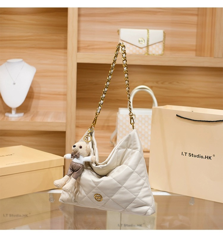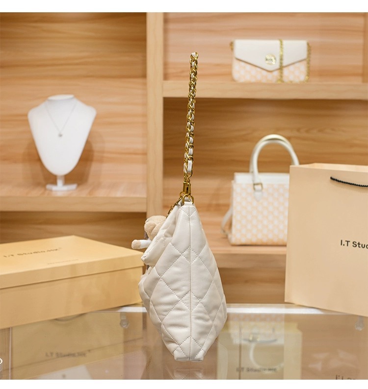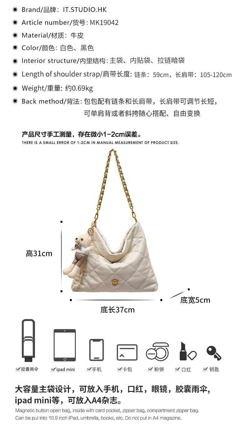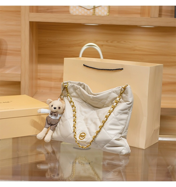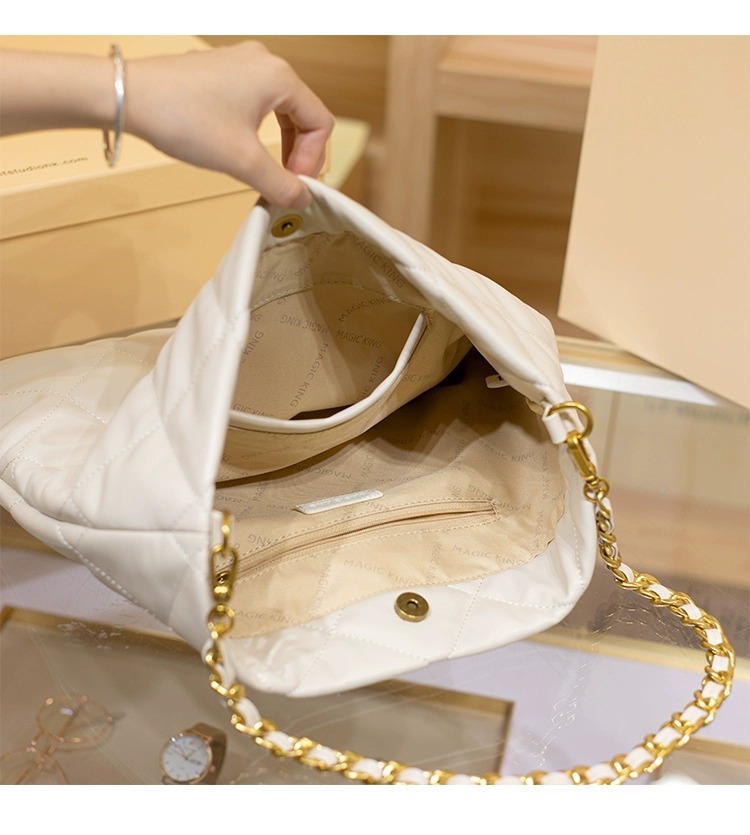 Túi xách tay dành cho nữ, kiểu dáng đơn giản và rộng rãi. Chất liệu da thật mang đến cảm giác mềm mại và bền bỉ. Điểm nhấn là họa tiết hình thoi cùng dây đeo chuỗi hạt có thể điều chỉnh, tạo vẻ ngoài thanh lịch. Thiết kế này phù hợp cho nhiều dịp sử dụng. Có thể mang trên v một cách thoải mái, đựng vừa nhiều vật dụng cá nhân cần thiết mỗi ngày. | Tên sản phẩm: Túi Xách Nữ Chất Liệu Da Bò Kẻ Caro Kẻ Caro Hàng Mùa Hè - Túi Ví Nữ | Mã sản phẩm: L0949 - Giá: 1.520.000đ | Mã nhà sản xuất: GUDHE-G04Hình ảnh sản phẩm