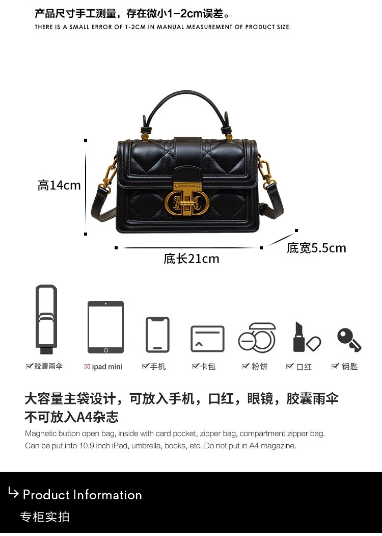 Chiếc túi xách tay hình vuông nhỏ này có kiểu dáng cổ điển với họa tiết hình thoi mềm mại trên bề mặt chất liệu da thật. Thiết kế nhỏ gọn, đi kèm qu xách và dây đeo dài để bạn có thể mang trên tay hoặc khoác v một cách linh hoạt. Dáng túi thanh lịch, dễ dàng phối hợp với nhiều trang phục khác nhau. Rất thích hợp để đựng các vật dụng cá nhân cần thiết khi bạn đi làm, đi chơi hoặc dạo phố. | Tên sản phẩm: Túi Xách Nữ Chất Liệu Da Bò Kẻ Caro Kẻ Caro - Túi Ví Nữ | Mã sản phẩm: L0958 - Giá: 1.250.000đ | Mã nhà sản xuất: GUDHE-G04Hình ảnh sản phẩm